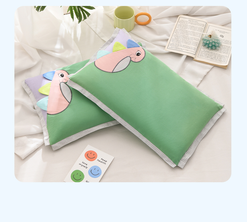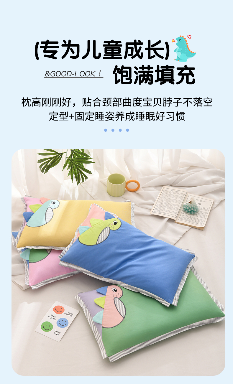 (总)仁宇枕业 2026新款新品条纹三角恐龙儿童羽丝绒荞麦枕头枕芯