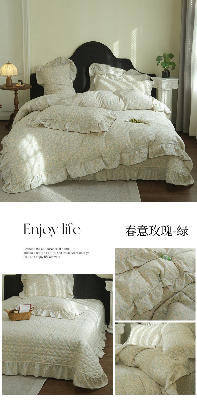 (总)庭笙 2026新款可爱少女心玫瑰花碎花拼接棉感四件套-花漫里,花漫里-粉,花漫里-蓝,花漫里-绿,花漫里-米,花漫里-紫