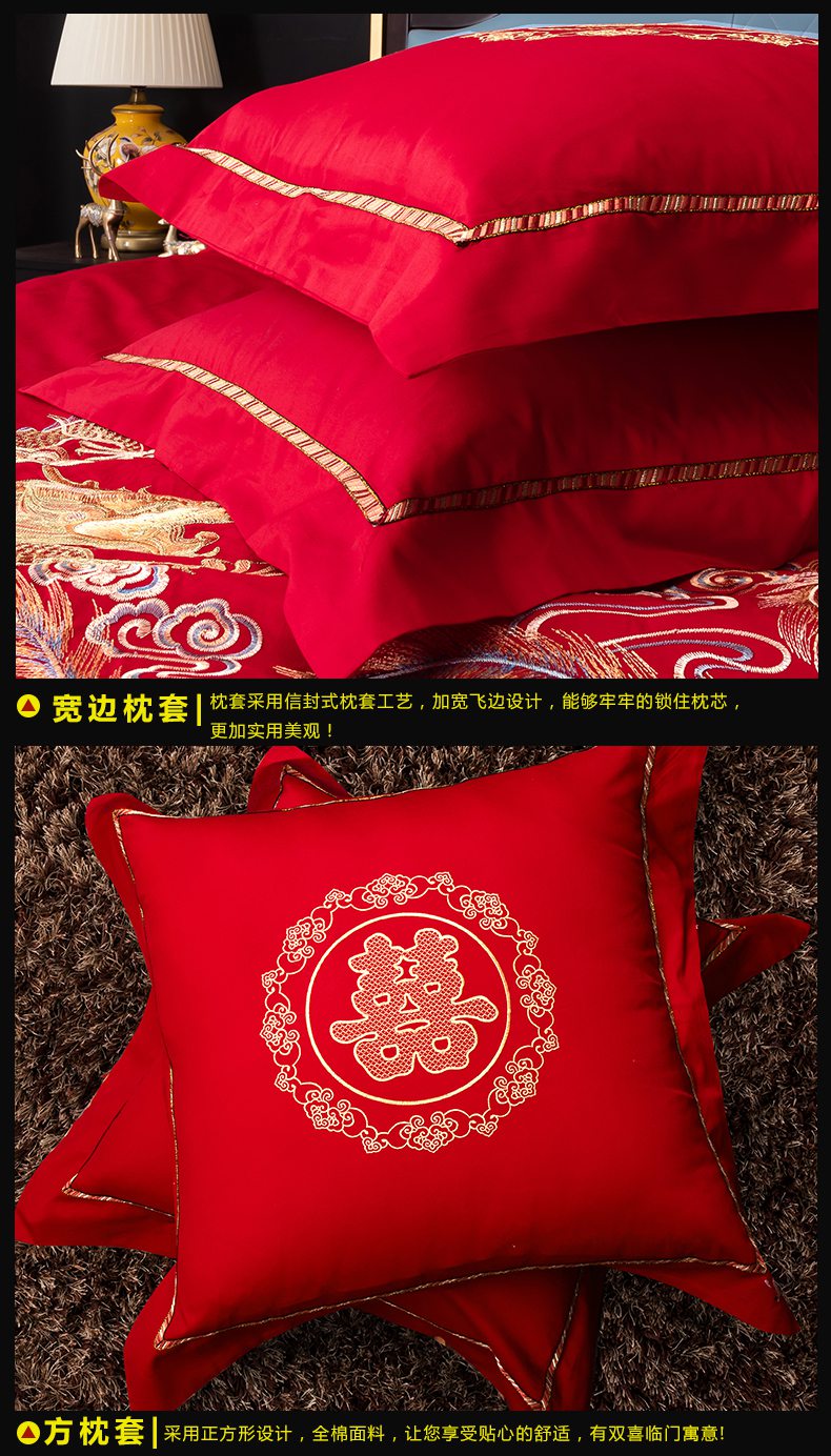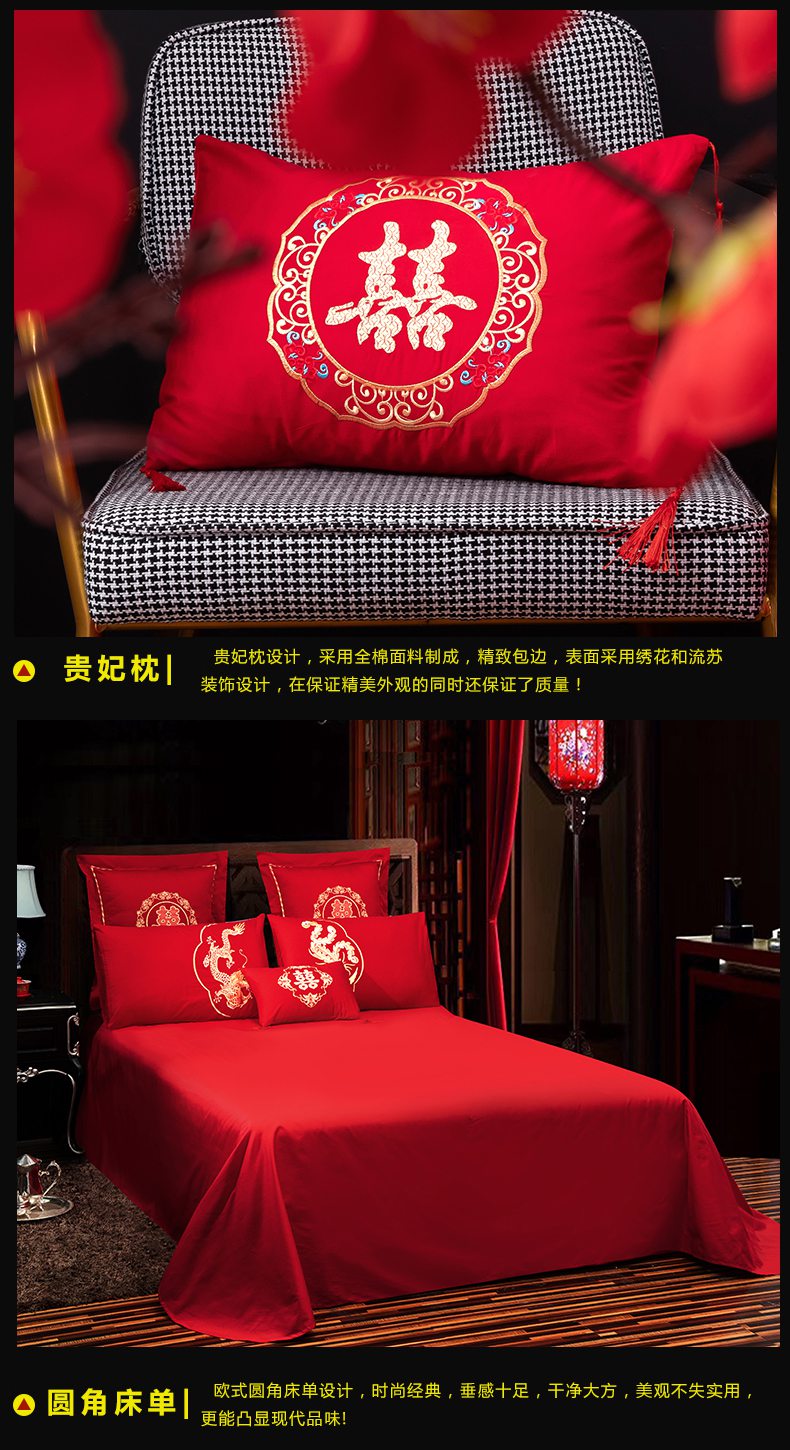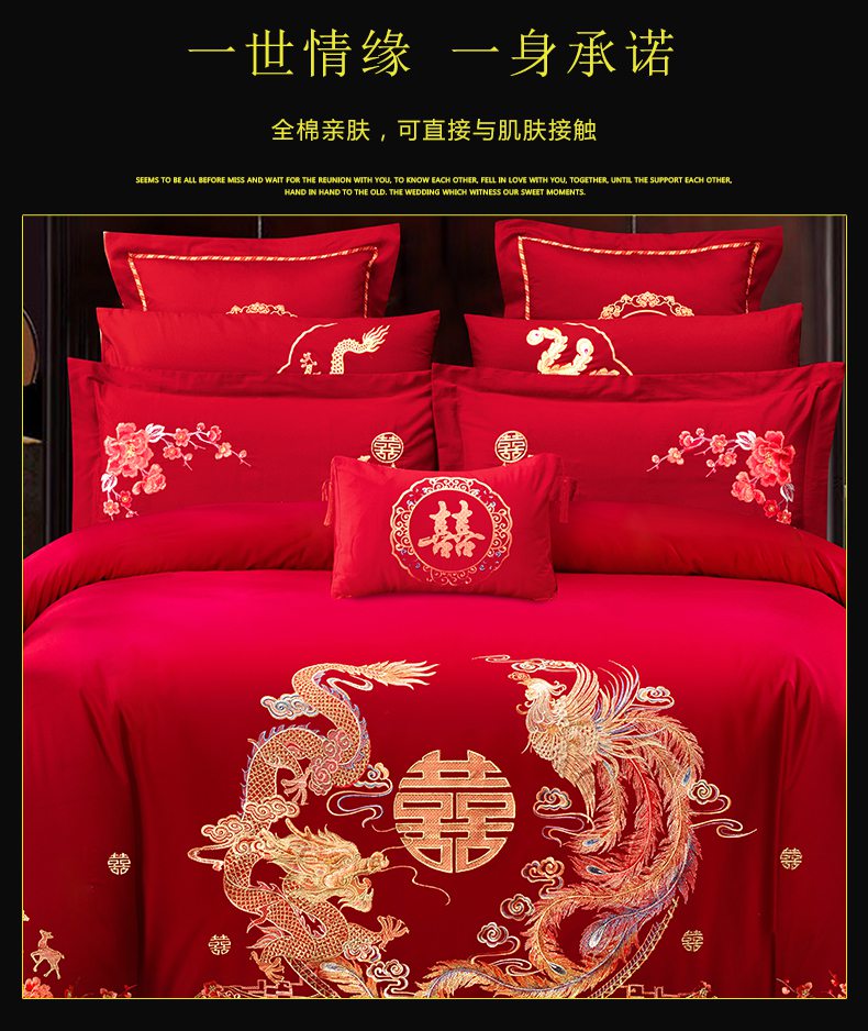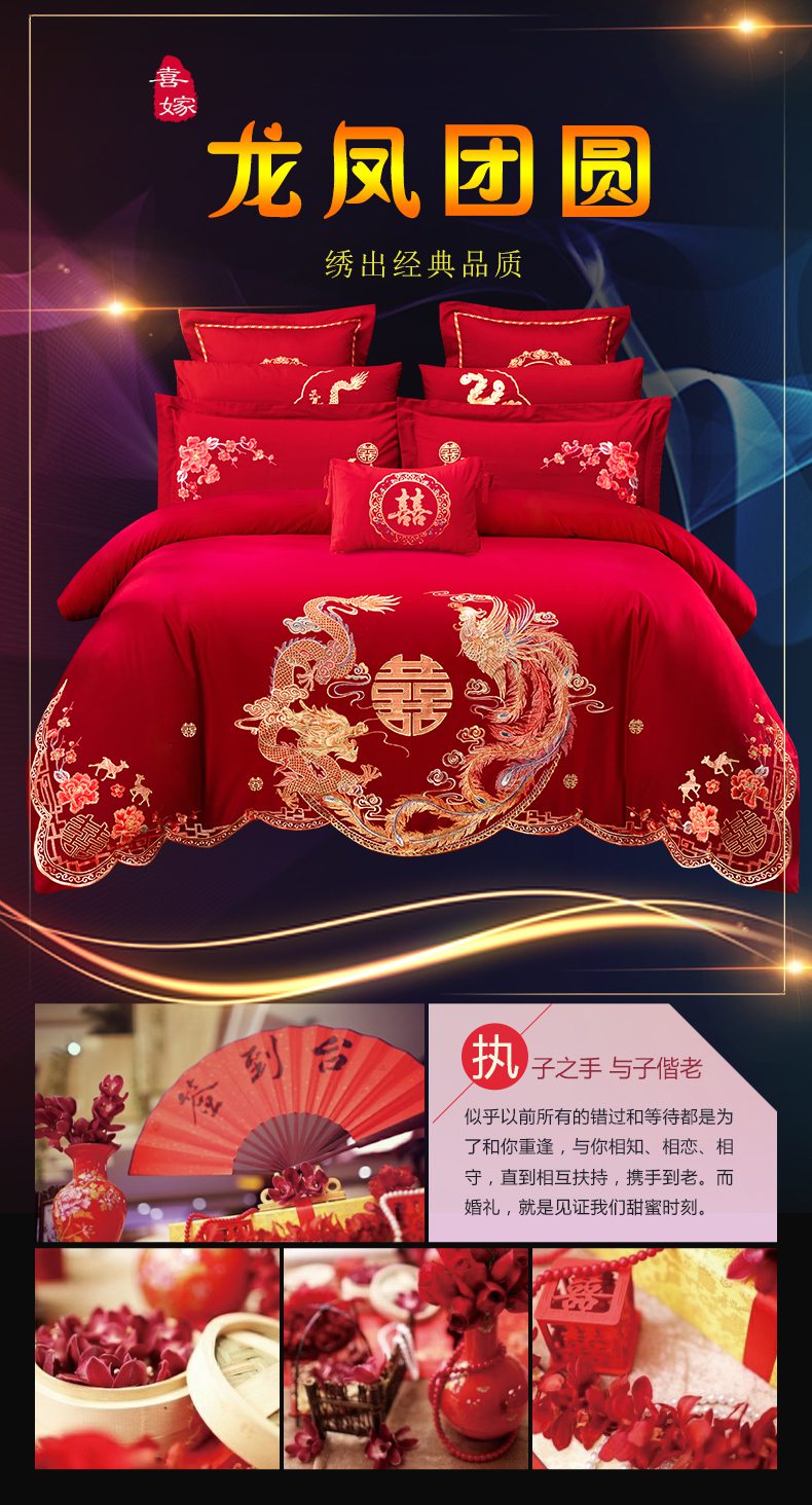 当前位置: 91家纺网 > 商品网购 > 床品套件 > 四件套 > 婚庆四件套 > 慕她家纺 2026慕她大花工艺款全棉纯棉婚庆四件套大红色刺绣结婚床上用品 龙凤团圆
