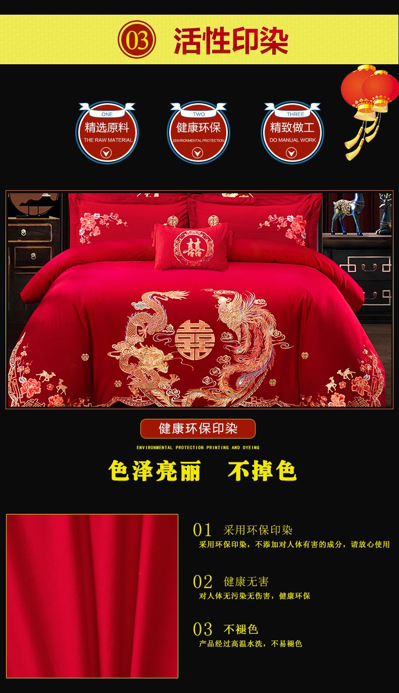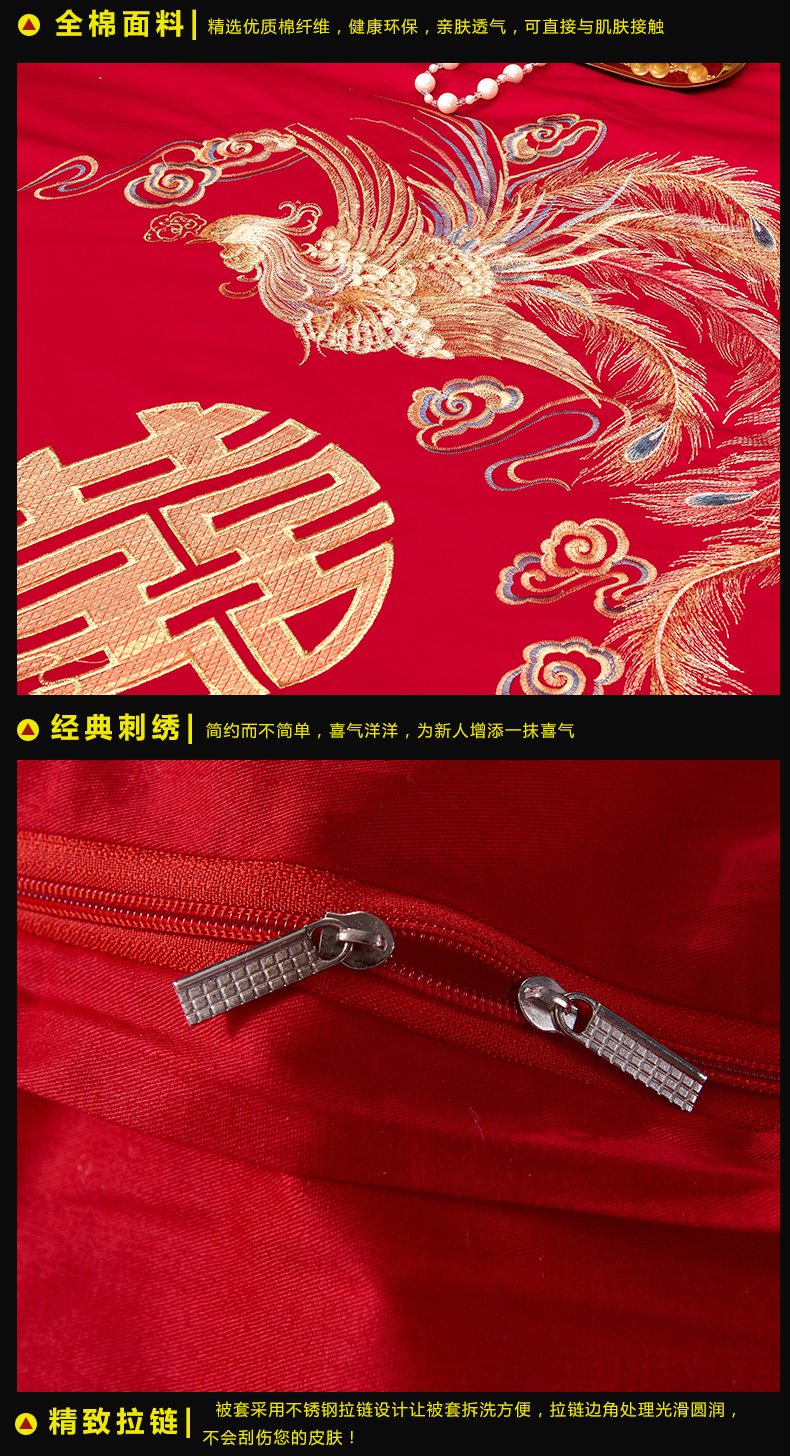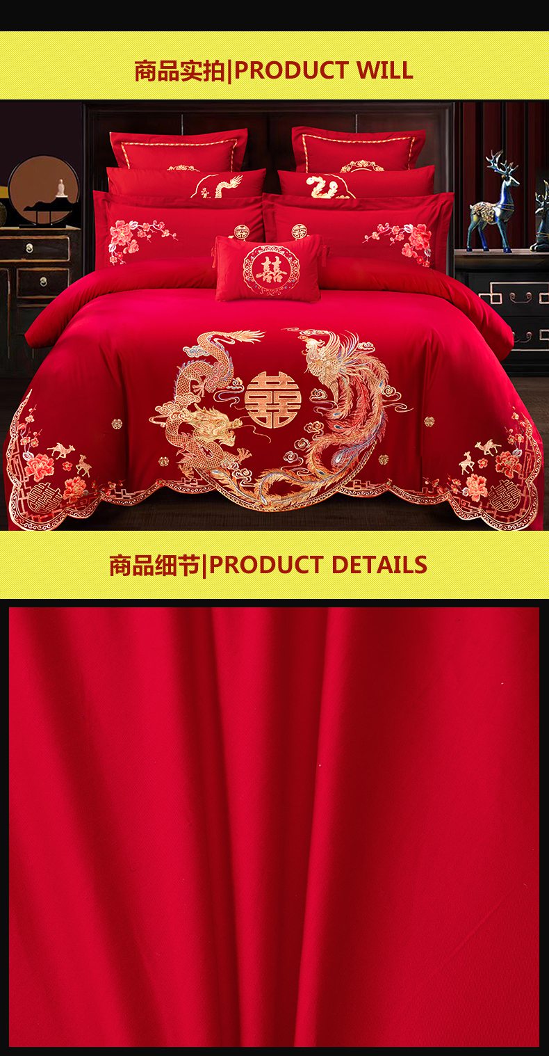 当前位置: 91家纺网 > 商品网购 > 床品套件 > 四件套 > 婚庆四件套 > 慕她家纺 2026慕她大花工艺款全棉纯棉婚庆四件套大红色刺绣结婚床上用品 龙凤团圆