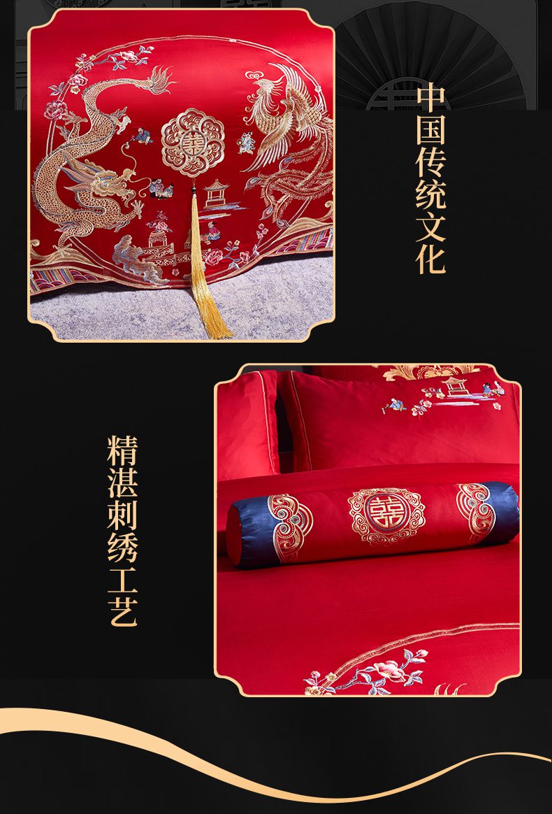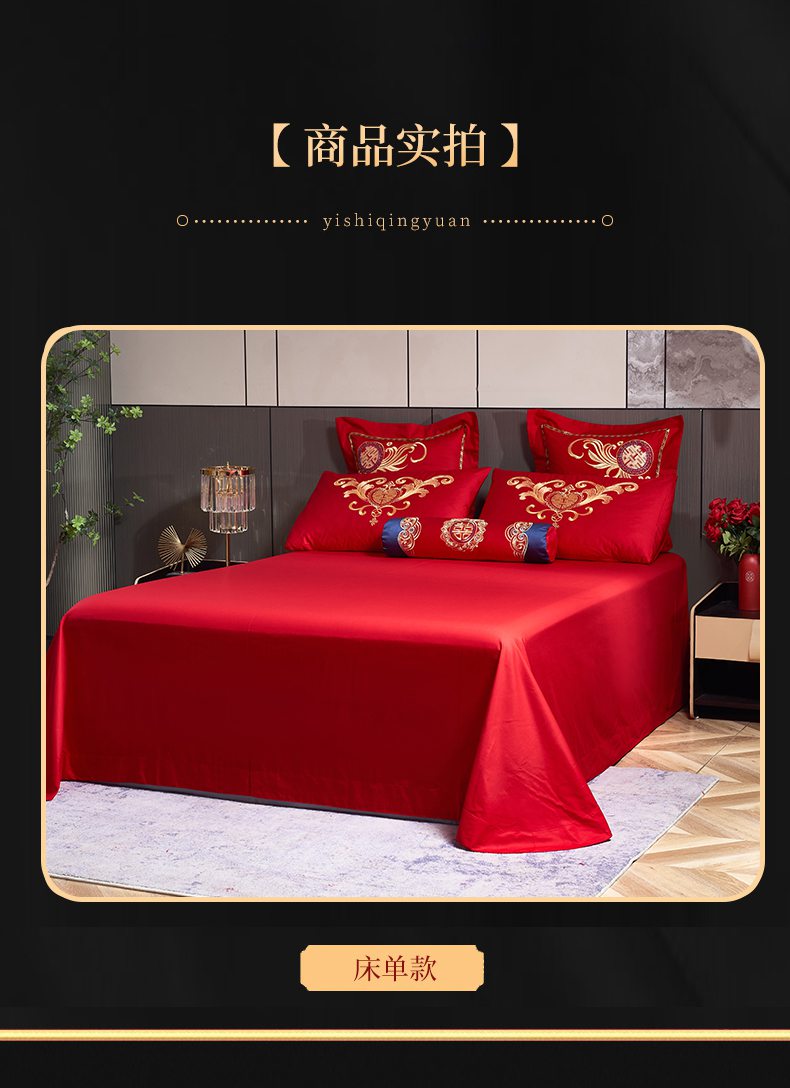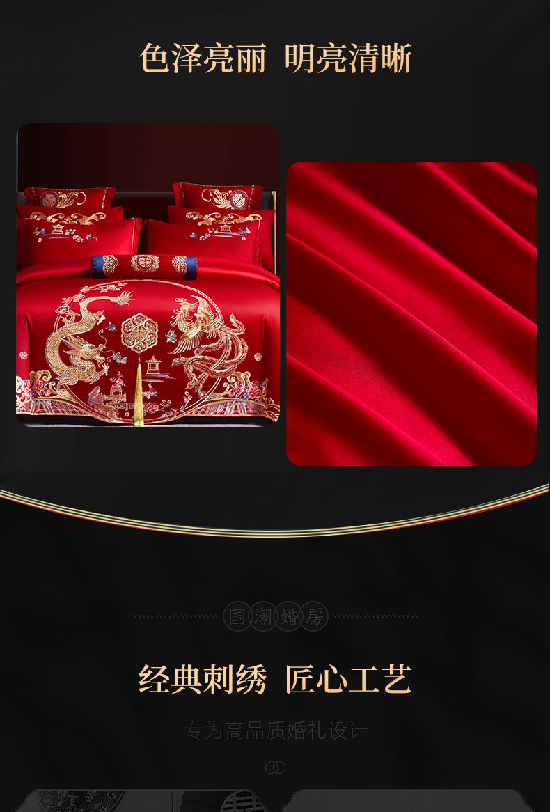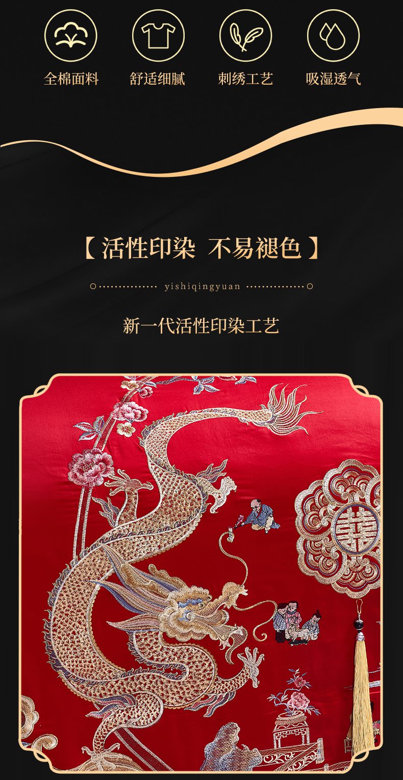 当前位置: 91家纺网 > 商品网购 > 床品套件 > 四件套 > 婚庆四件套 > 慕她家纺 2026慕她大花工艺款全棉纯棉婚庆四件套大红色刺绣结婚床上用品 龙凤送子