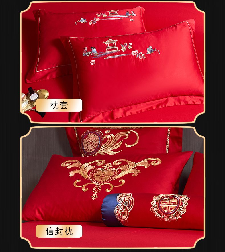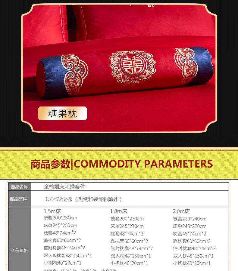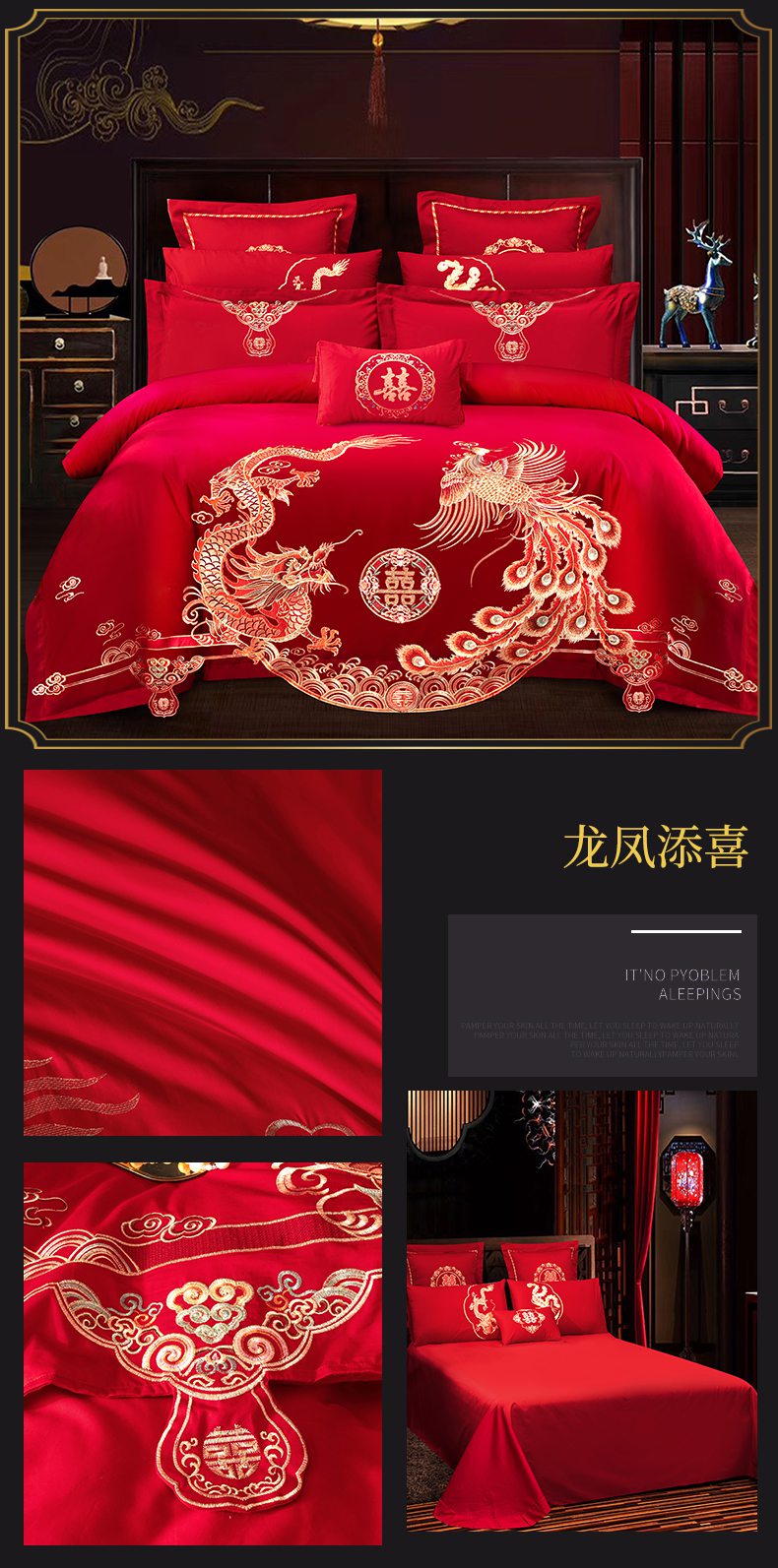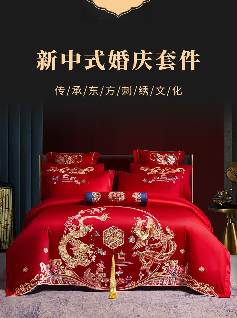 当前位置: 91家纺网 > 商品网购 > 床品套件 > 四件套 > 婚庆四件套 > 慕她家纺 2026慕她大花工艺款全棉纯棉婚庆四件套大红色刺绣结婚床上用品 龙凤送子