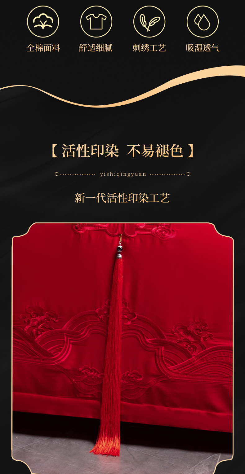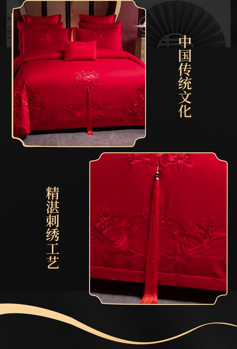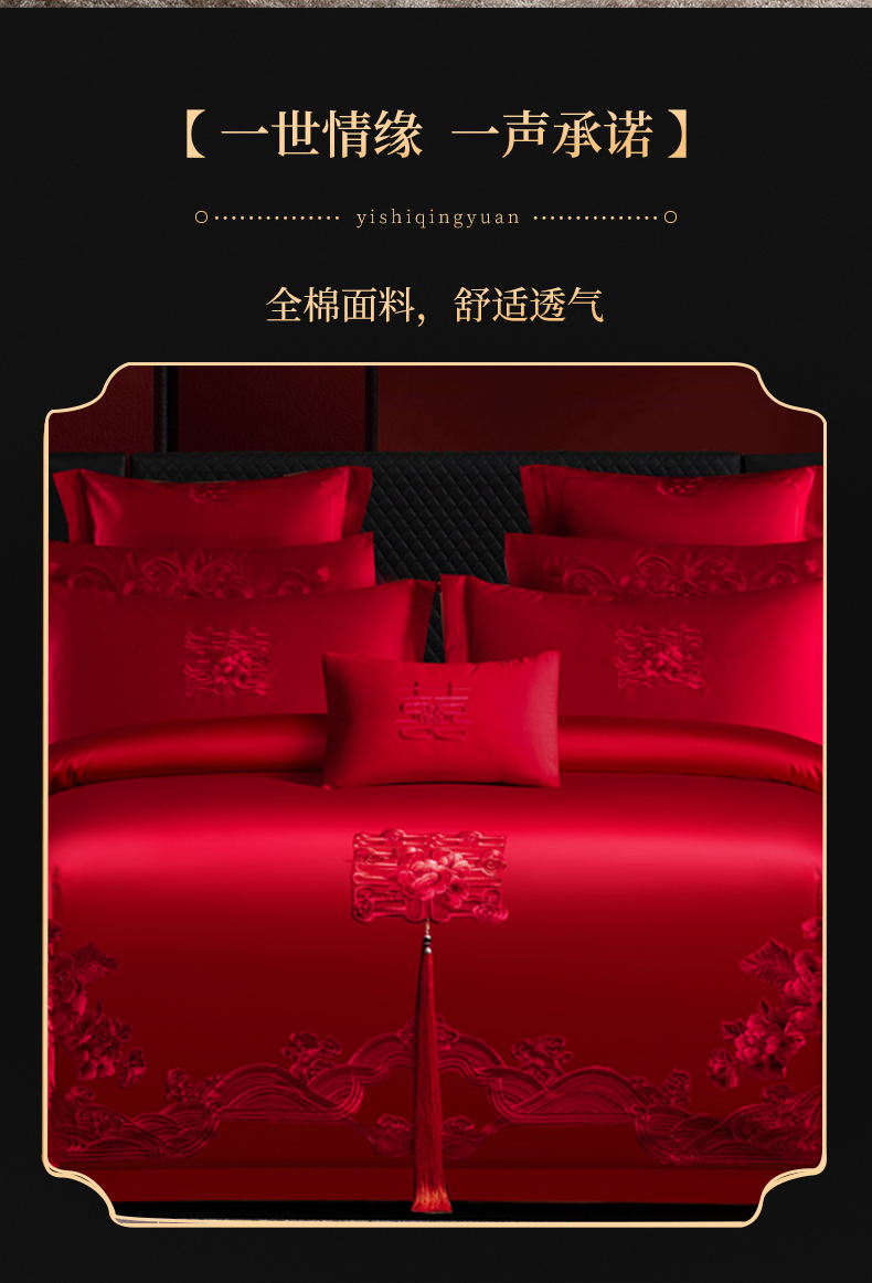 当前位置: 91家纺网 > 商品网购 > 床品套件 > 四件套 > 婚庆四件套 > 慕她家纺 2026慕她大花工艺款全棉纯棉婚庆四件套大红色刺绣结婚床上用品 恋曲牡丹