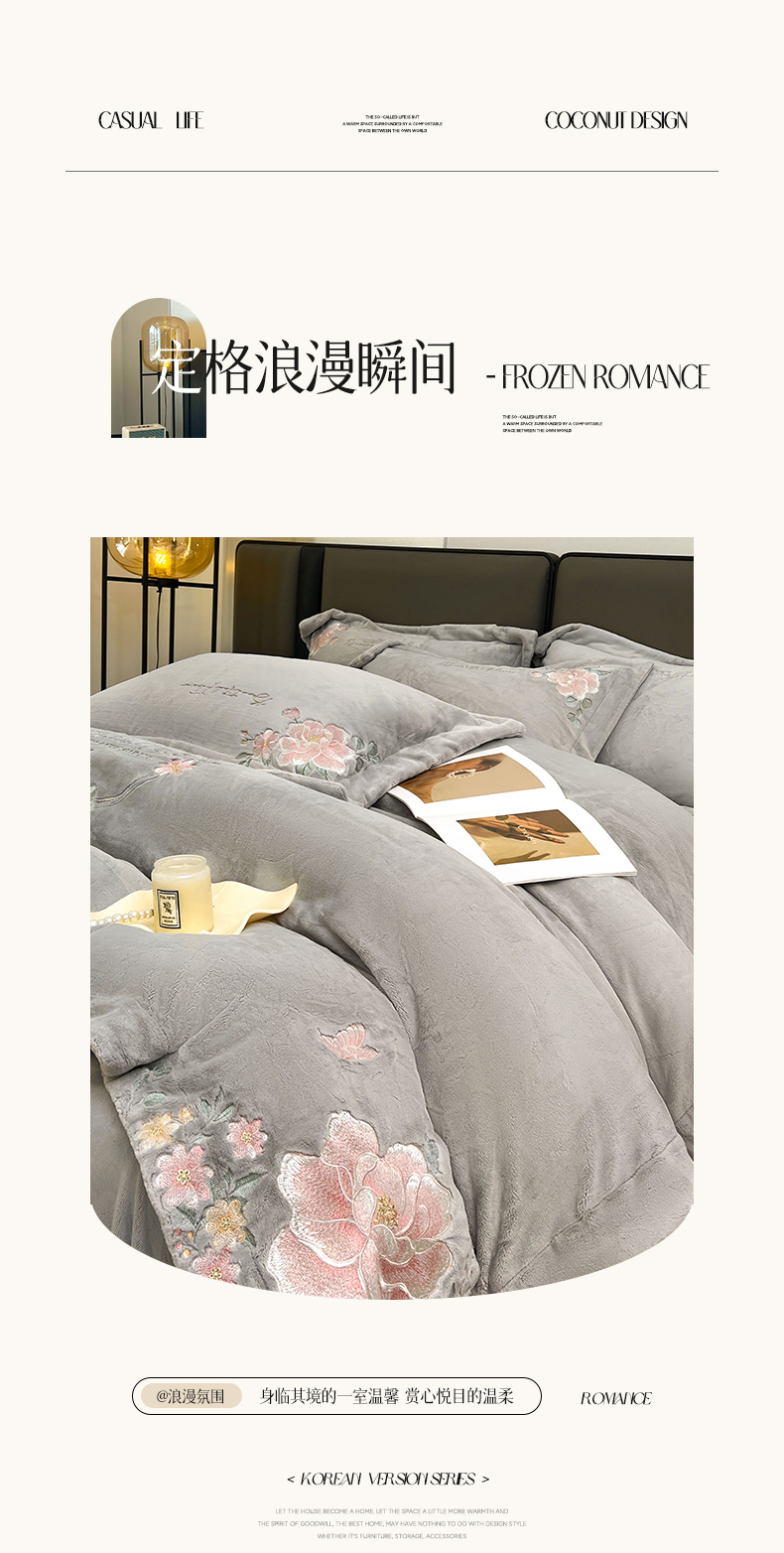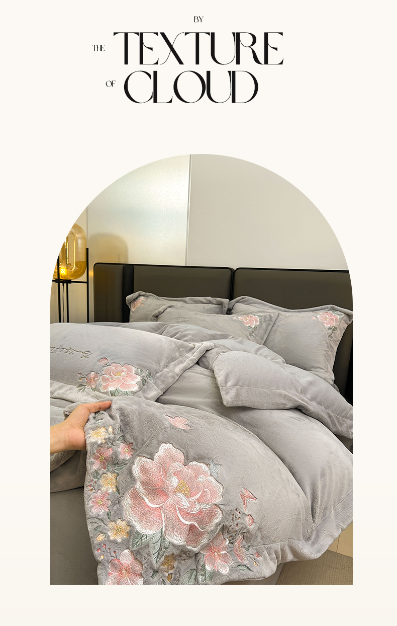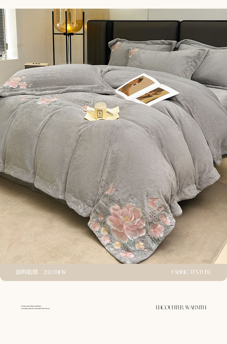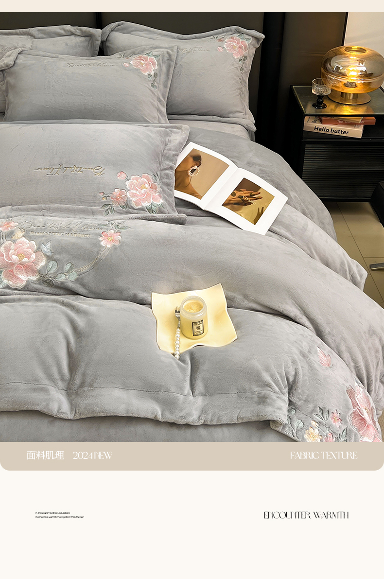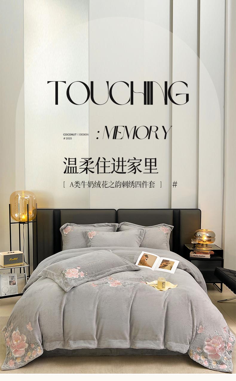 当前位置: 91家纺网 > 商品网购 > 床品套件 > 四件套 > 牛奶绒四件套 > 润锦云 2026新款牛奶绒刺绣四件套-花之韵 花之韵-香草灰