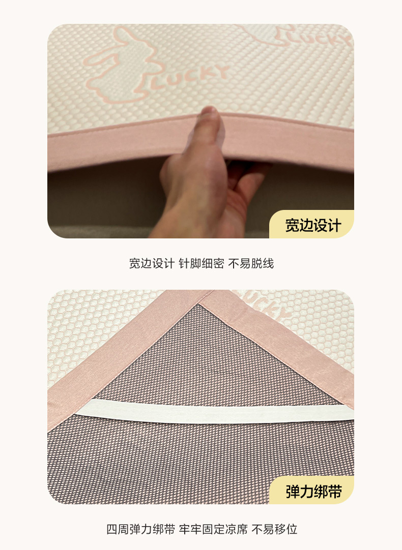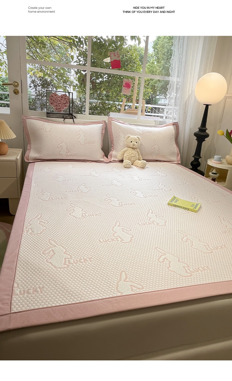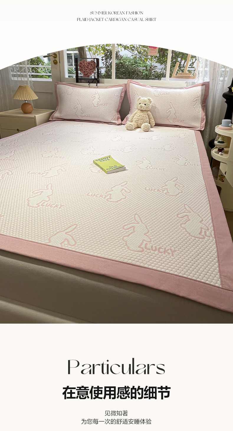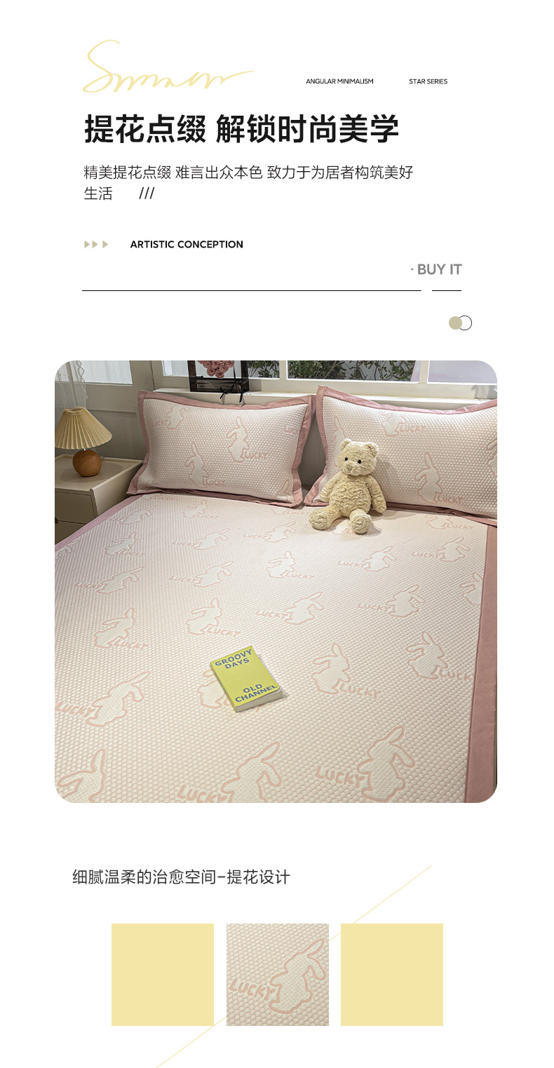 商品名称:雅居纺家纺 2026新款A类加厚三明治底提花小清新凉感席床单款凉席席子 小兔子-粉