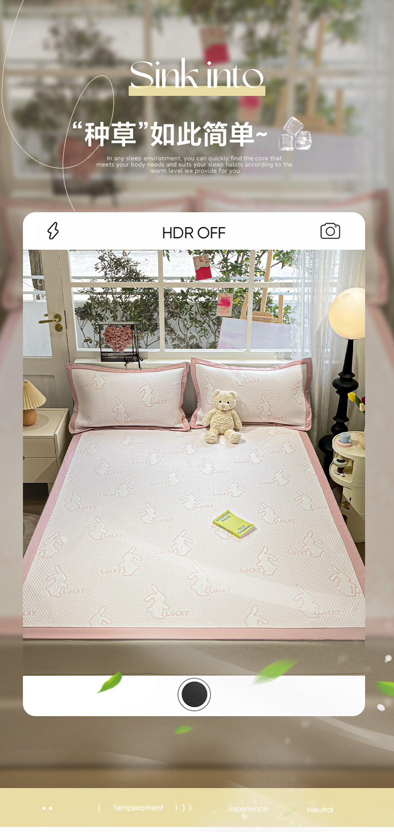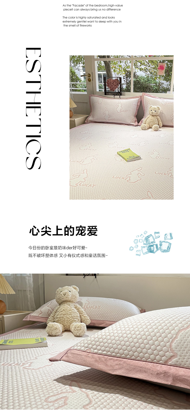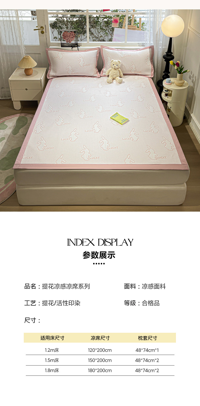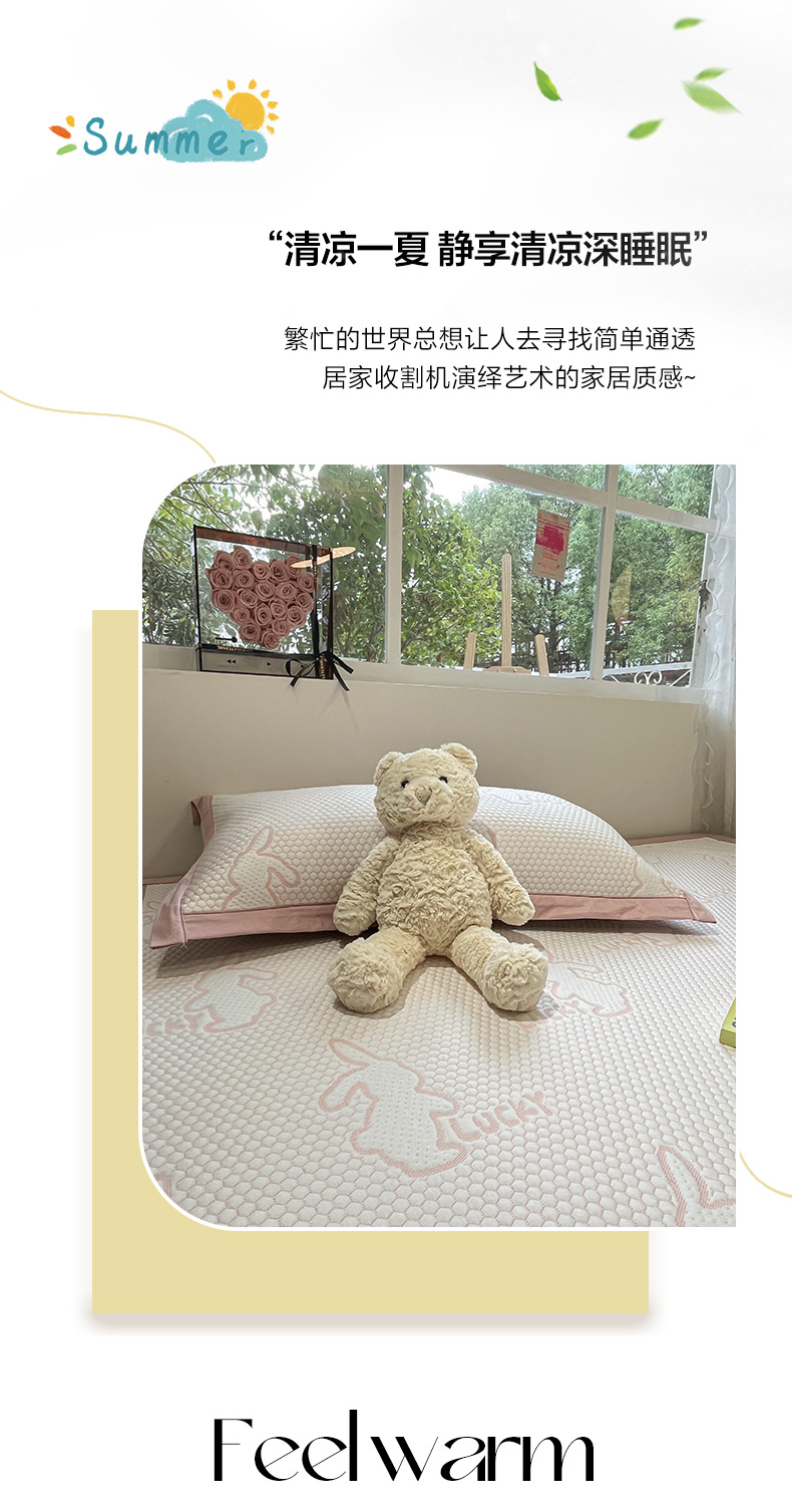 商品名称:雅居纺家纺 2026新款A类加厚三明治底提花小清新凉感席床单款凉席席子 小兔子-粉