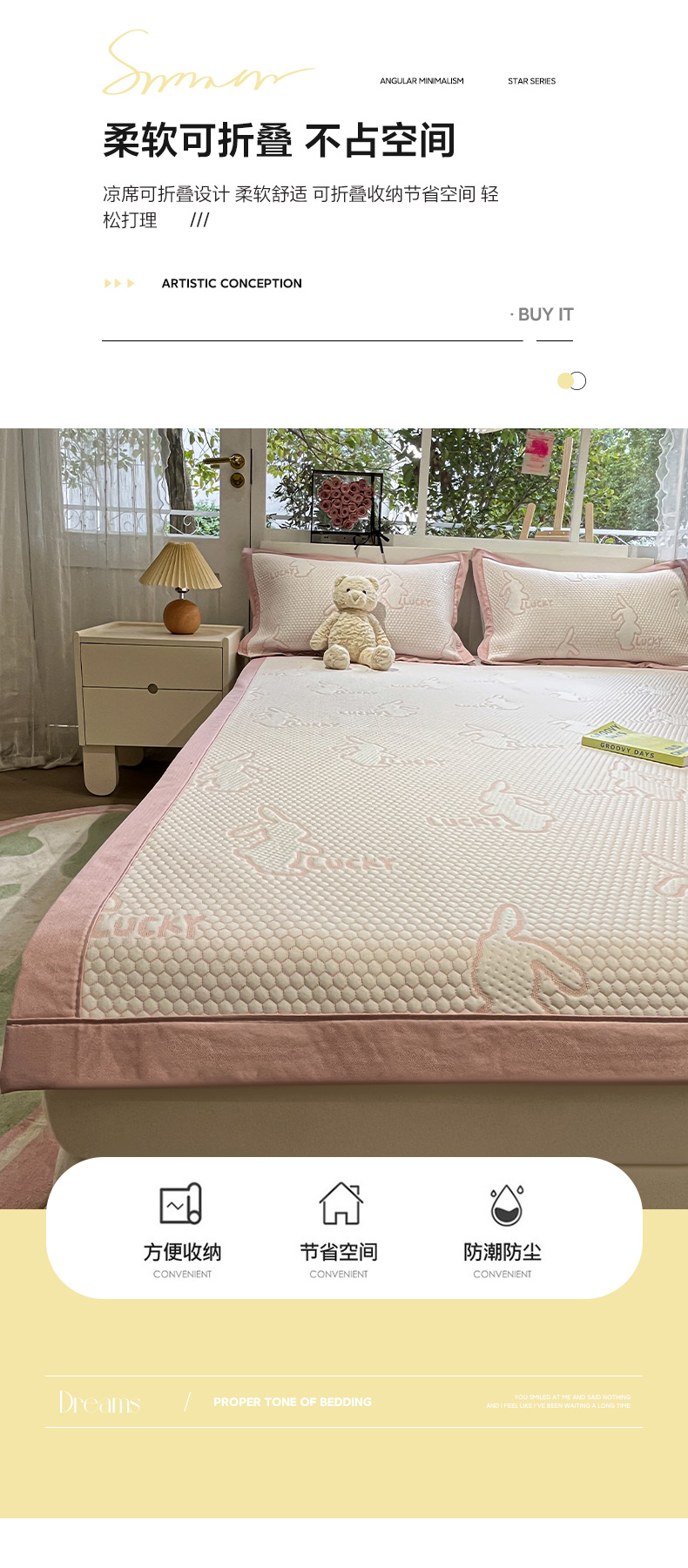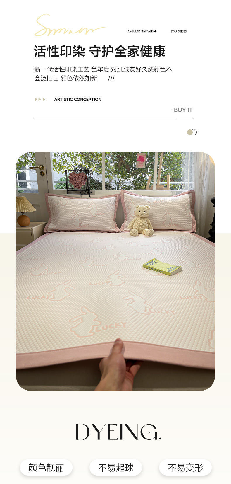 (总)雅居纺家纺 2026新款A类加厚三明治底提花小清新凉感席床笠款凉席席子,粉小兔,蝴蝶结猫咪,领结小猫,平安熊猫,山茶花,太空星球,晚安小狗,小熊熊,星星小熊,悠闲花园