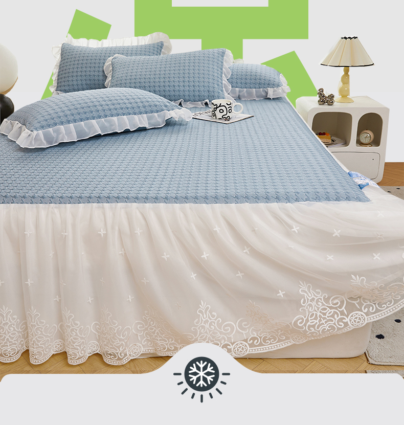 商品名称:怡源梦 2026新款A类PE高分子凉感软席提花冰豆豆床裙席子凉席-千鸟格 千鸟格-兰色