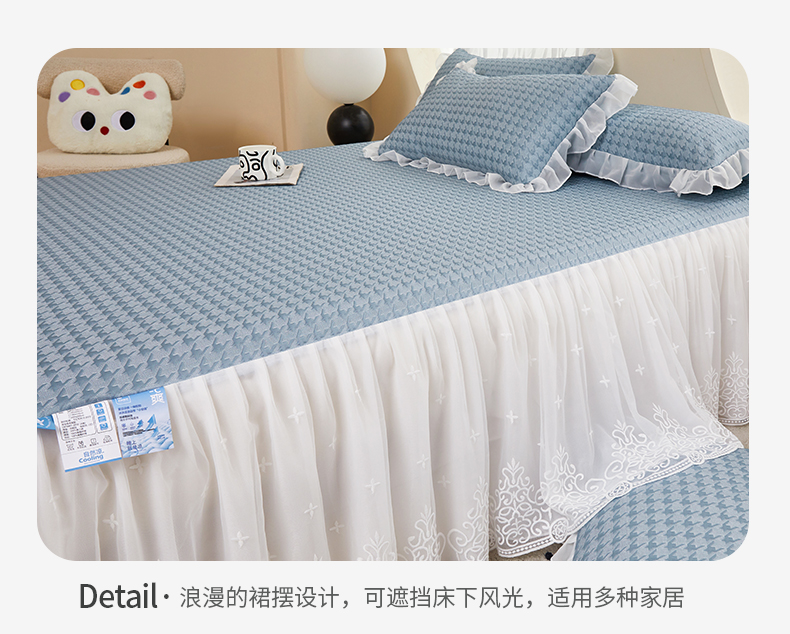 (总)怡源梦 2026新款A类PE聚乙烯冰豆豆提花床裙款席子凉席三件套-梦之约,梦之约-灰色,梦之约-蓝色,梦之约-米色,梦之约-藕粉,梦之约-浅绿