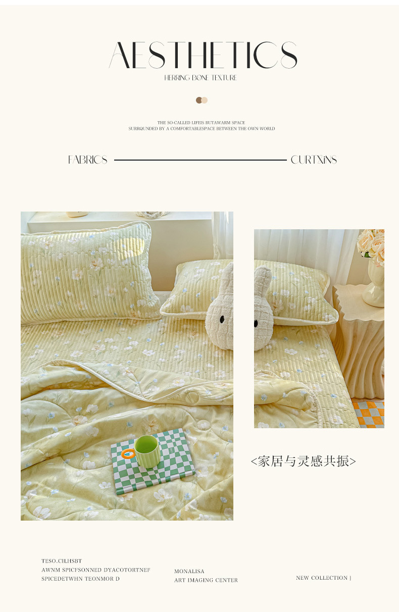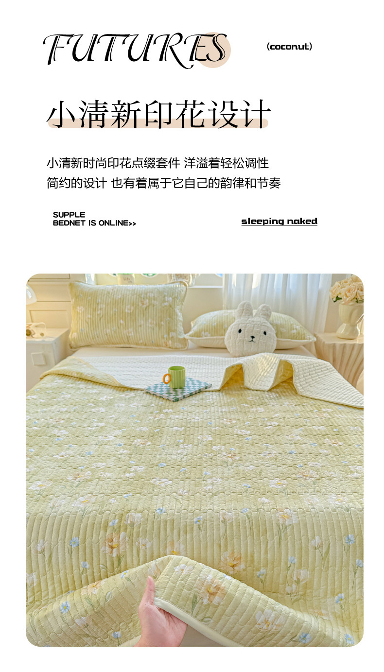 当前位置: 91家纺网 > 商品网购 > 床品套件 > 四件套 > 其它四件套 > 慕澄家纺 2026新款小清新印花水洗棉床盖夏被四件套 绿尧