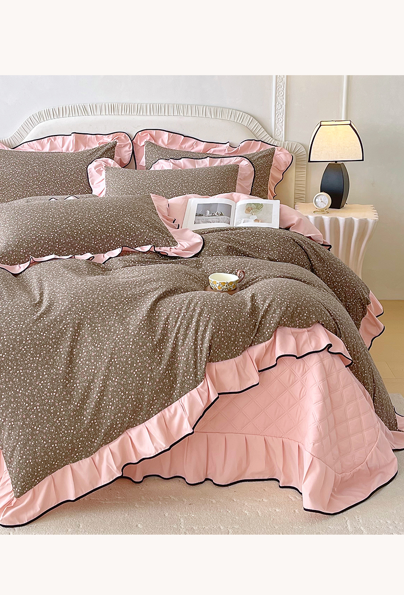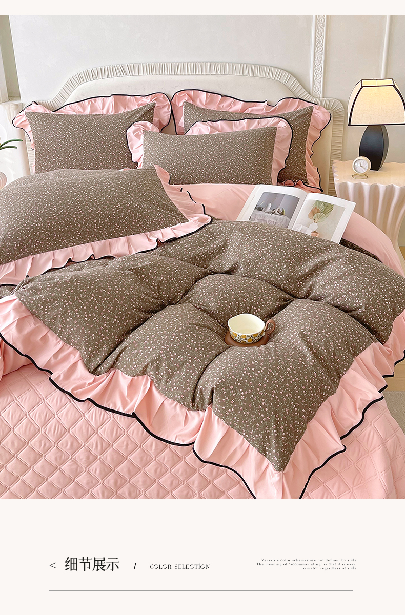 锦彩家居 2026新款花边小碎花床盖四件套 朝花夕拾