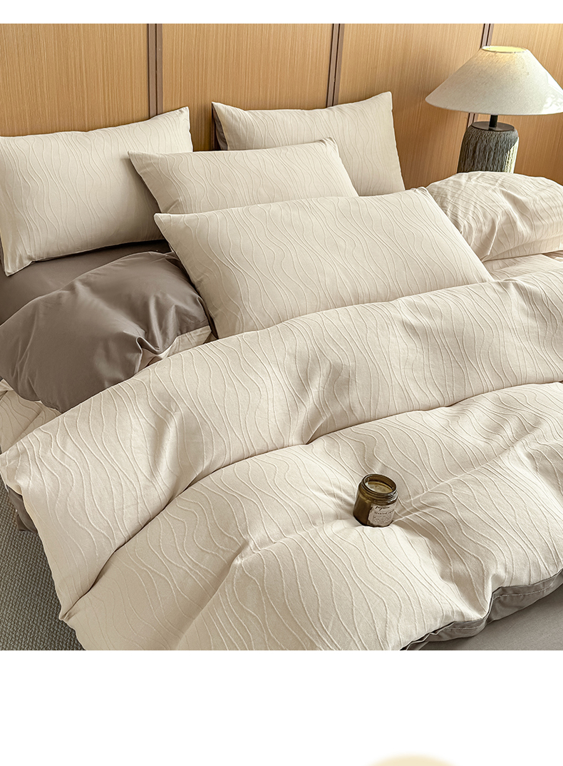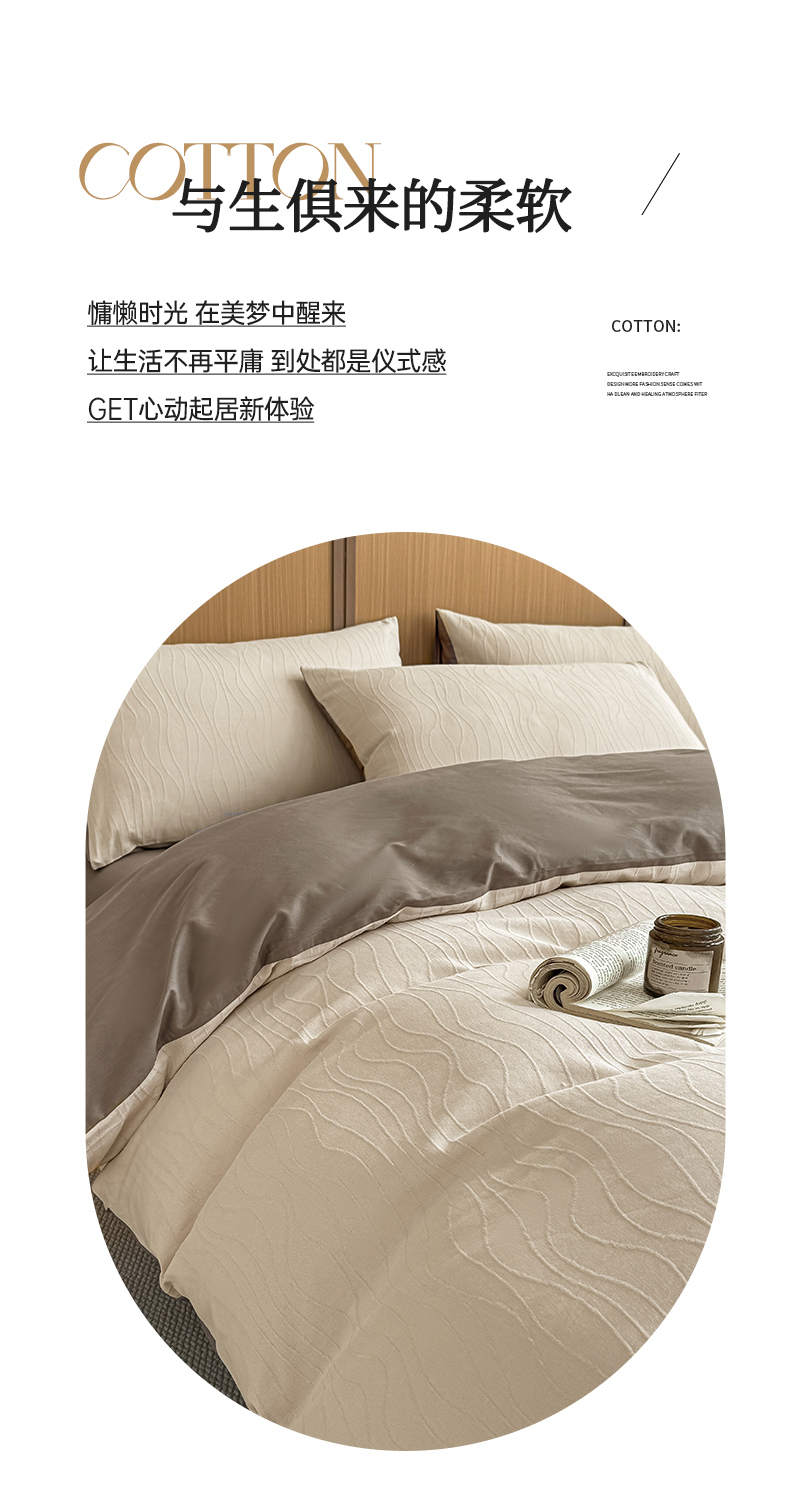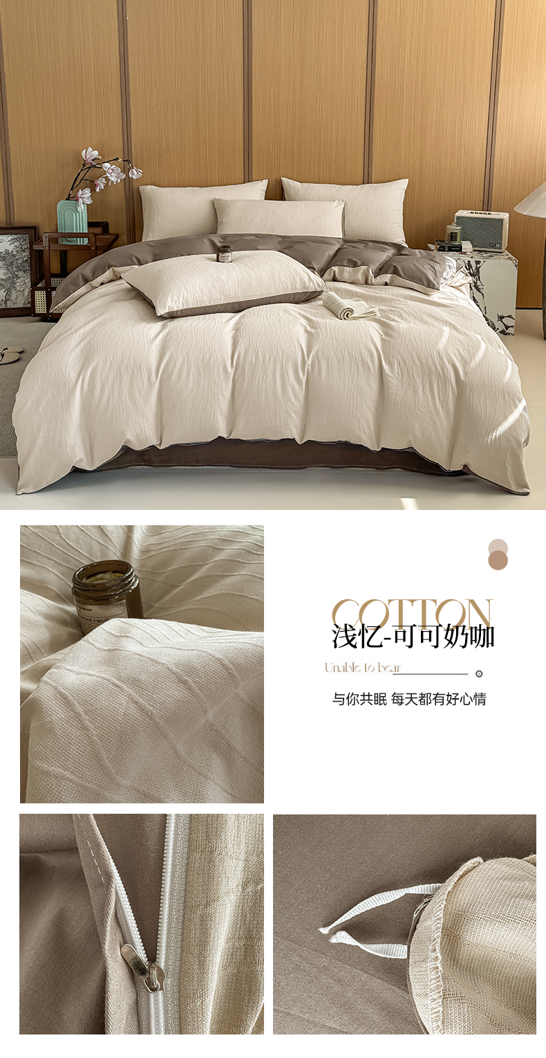 当前位置: 91家纺网 > 商品网购 > 床品套件 > 四件套 > 全棉普通四件套 > 灰鲸 2026新款全棉纯棉三层纱色织提花四件套 浅忆-可可奶咖