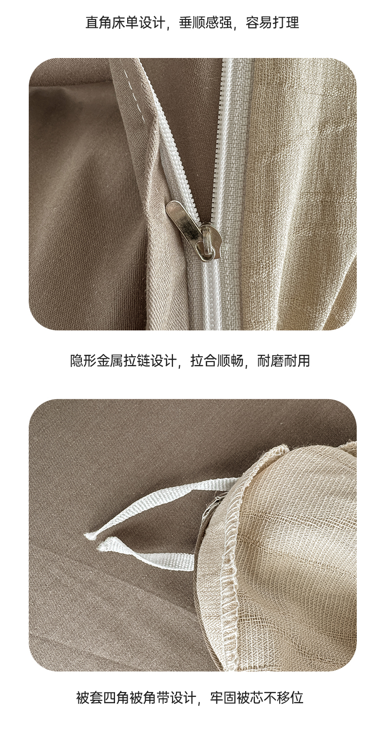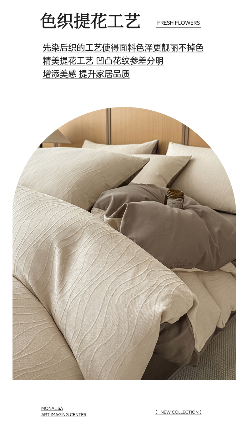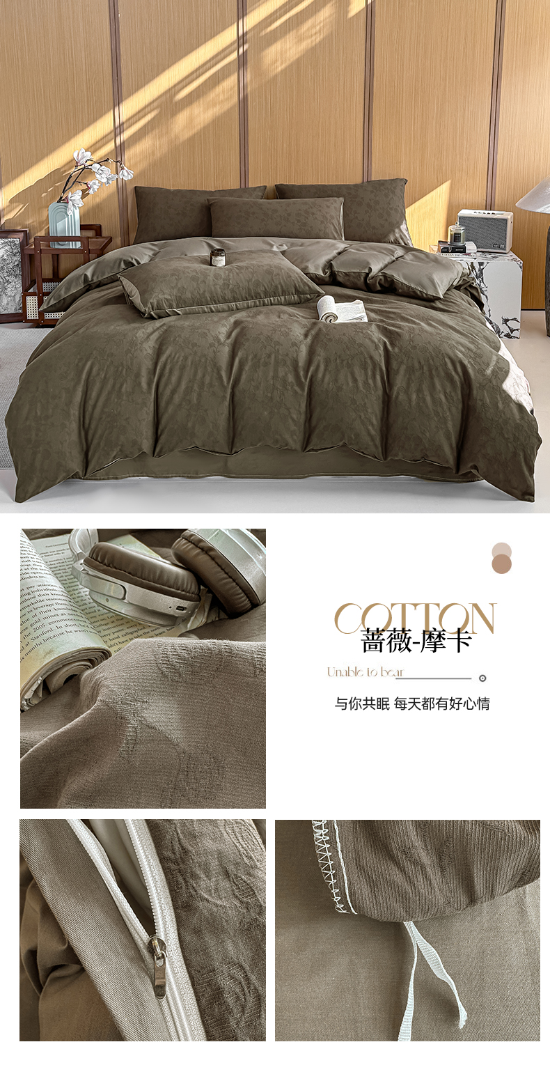 当前位置: 91家纺网 > 商品网购 > 床品套件 > 四件套 > 全棉普通四件套 > 灰鲸 2026新款全棉纯棉三层纱色织提花四件套 浅忆-可可奶咖