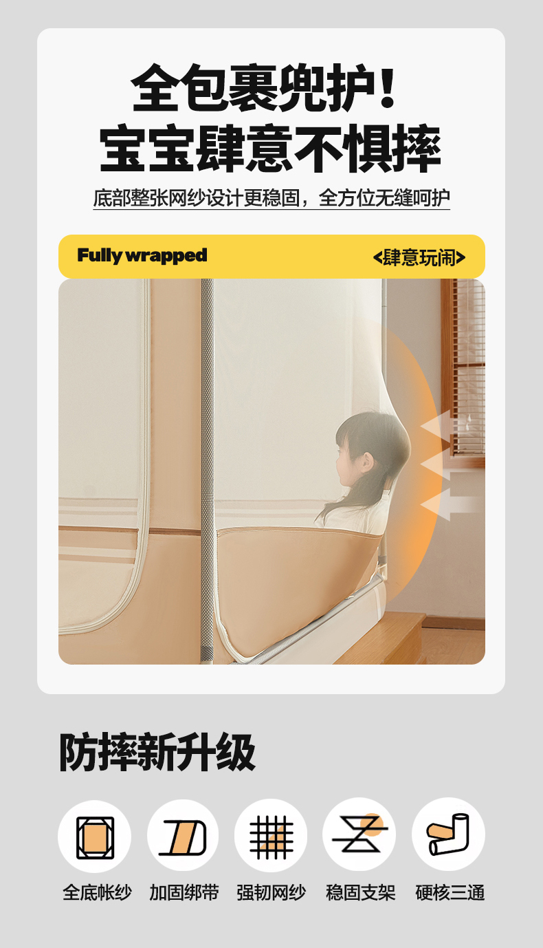 当前位置: 91家纺网 > 商品网购 > 床上用品 > 蚊帐 > 坐床式蚊帐 > 青竹苑 2026新款圆弧款坐床防摔蚊帐 米杏