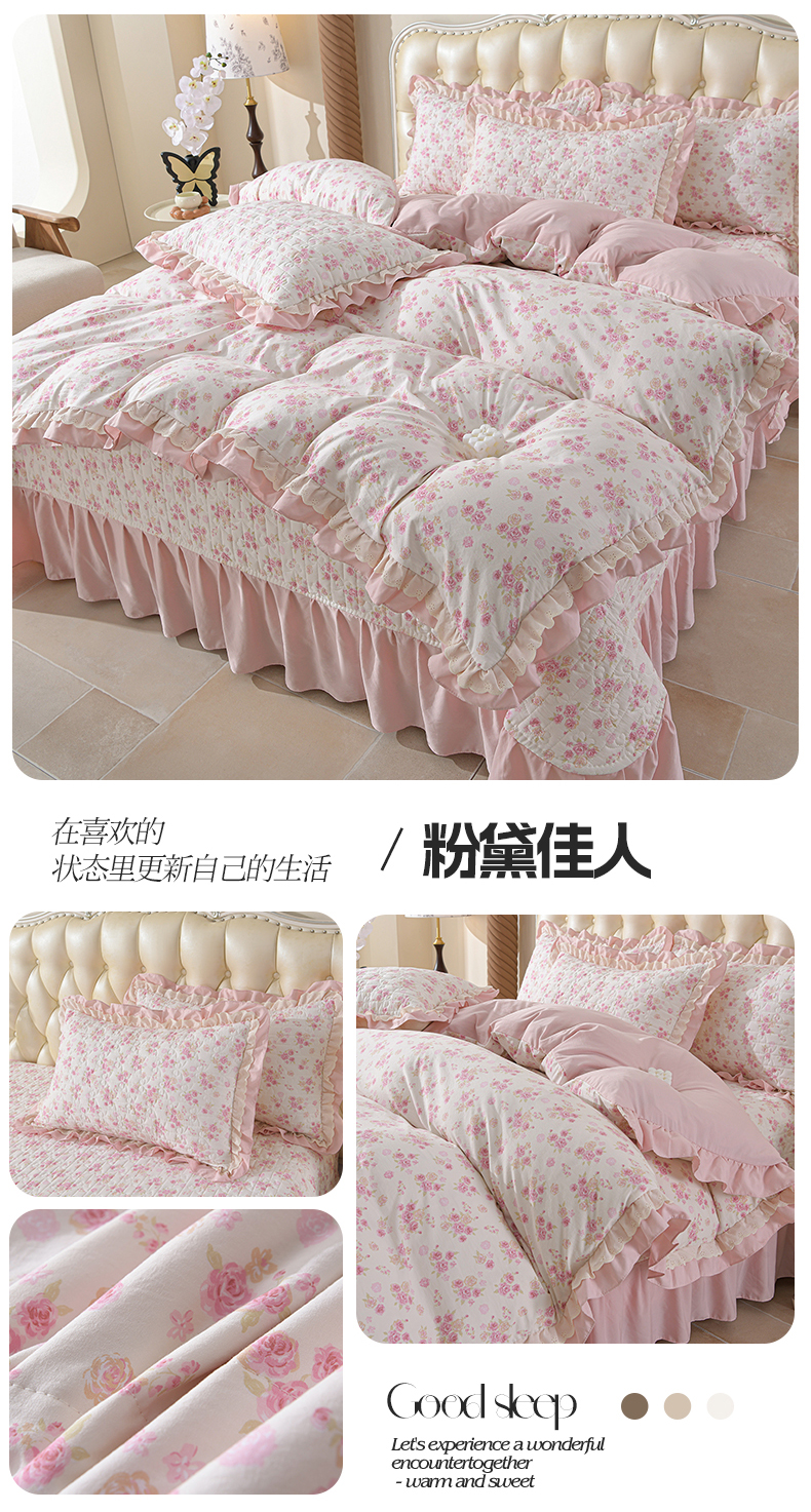 当前位置: 91家纺网 > 商品网购 > 床品套件 > 四件套 > 夏被四件套 > 金梦家居 2026新款水洗棉床盖夏被款四件套 紫韵花开