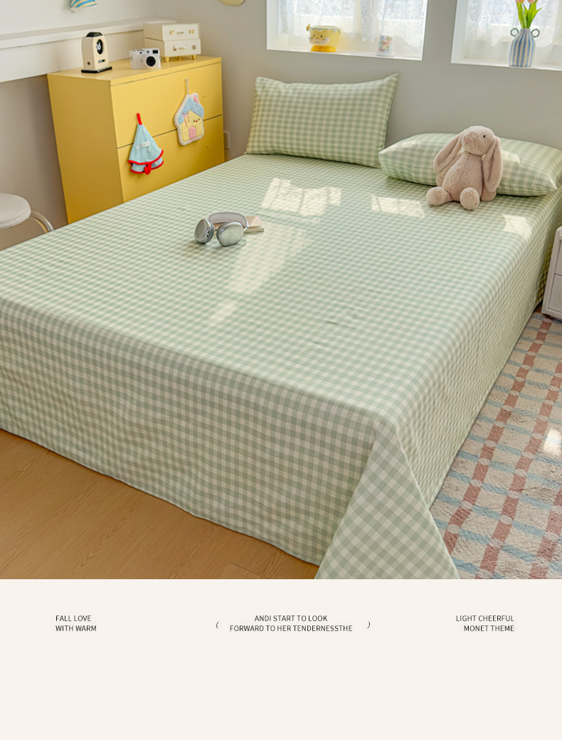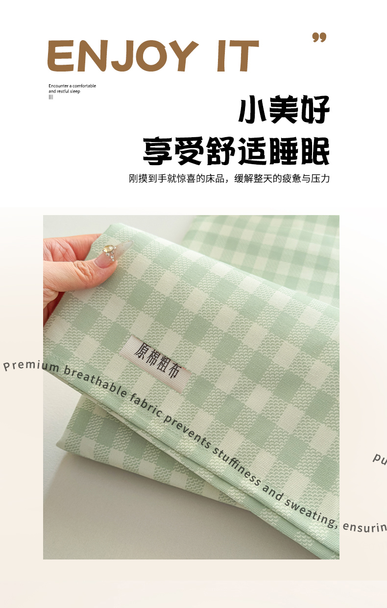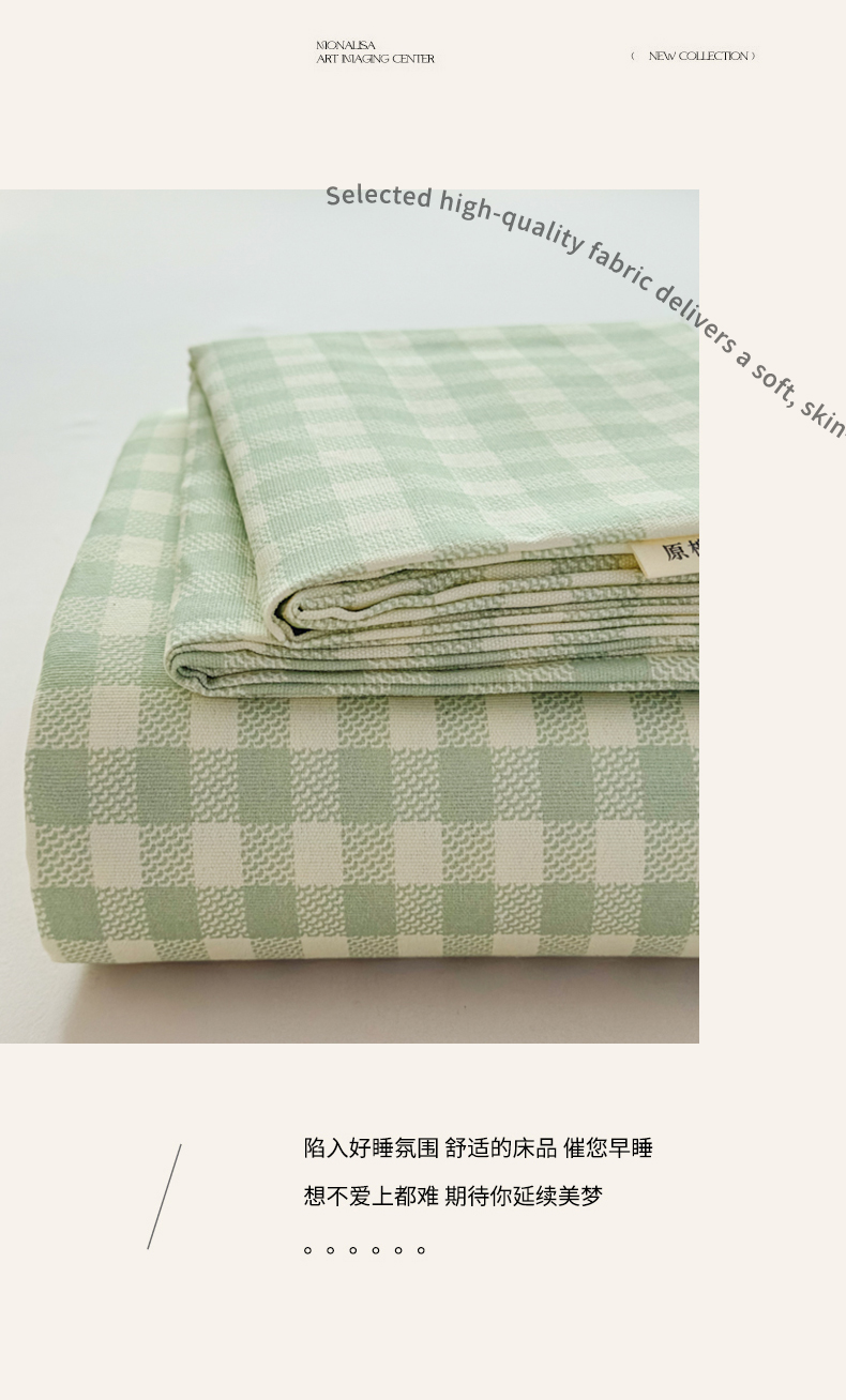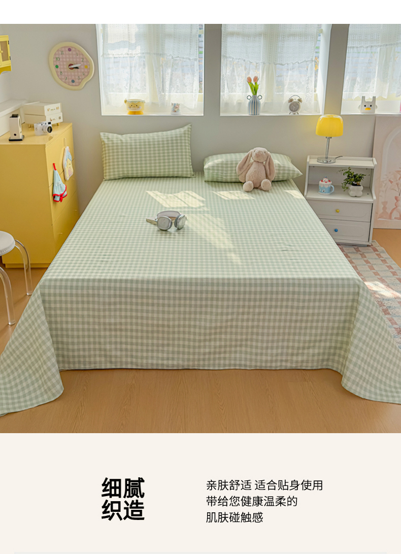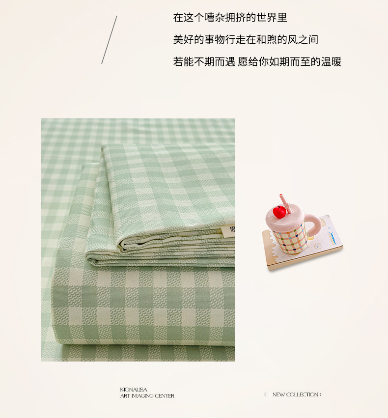 商品名称:(总)爱彼家纺 2026新款无印格子分老粗布床单软凉席床单枕套三件套新升级细沙-格子系列一