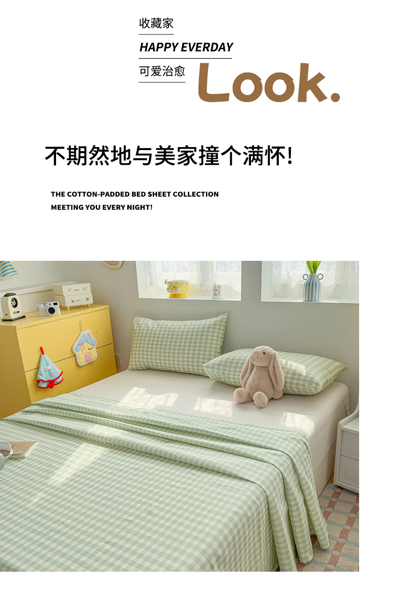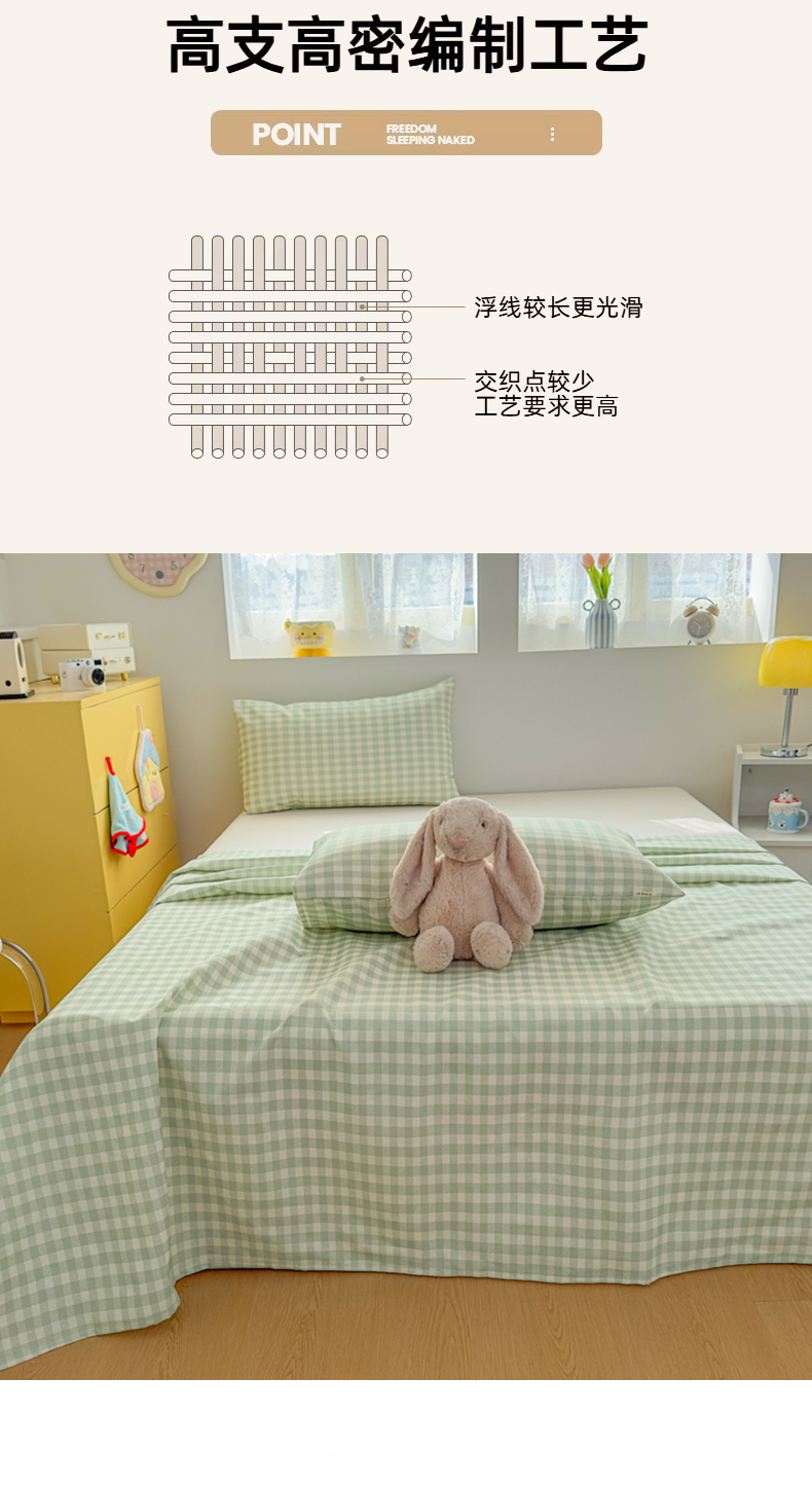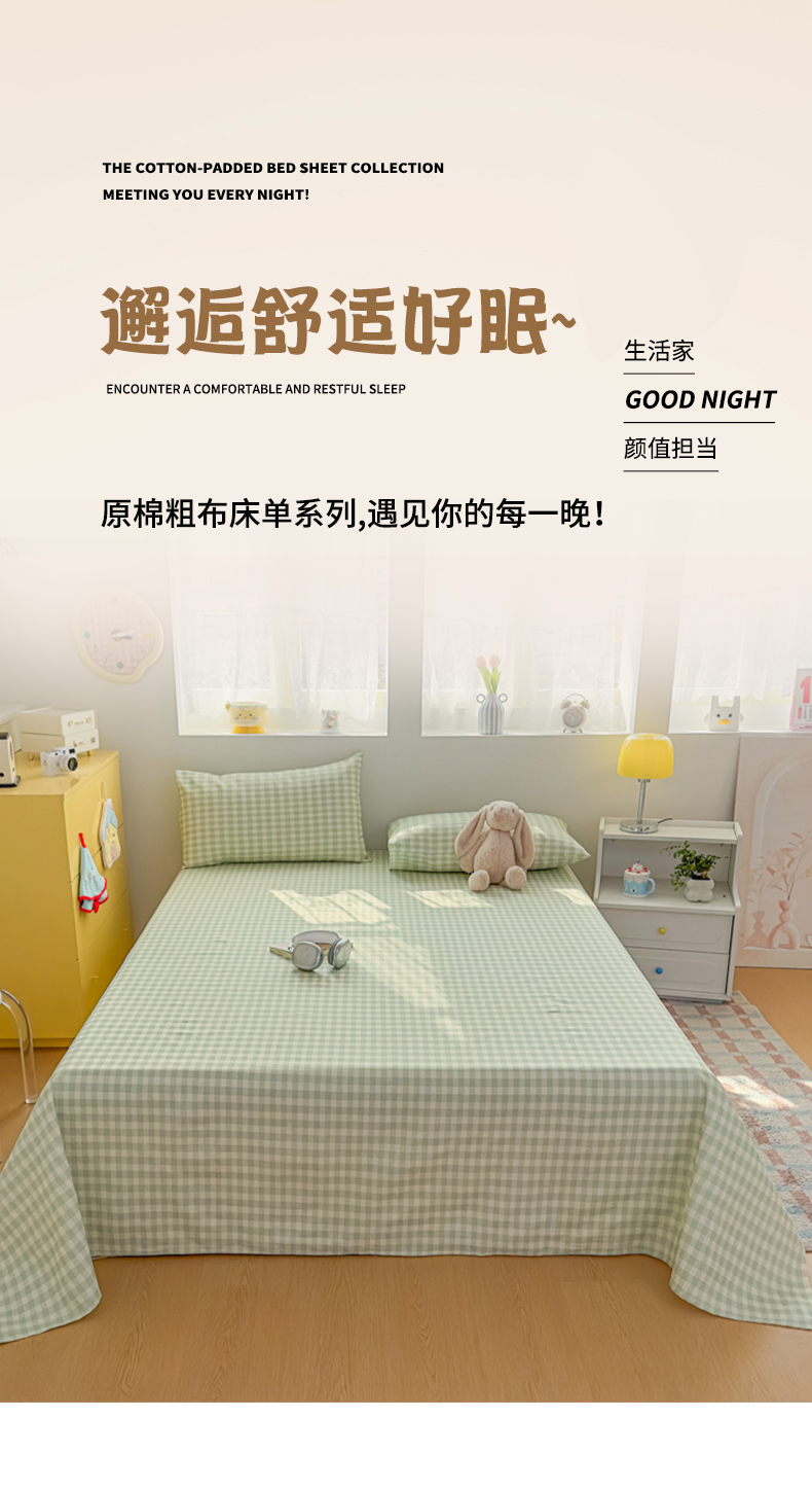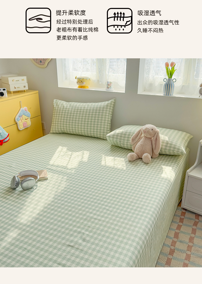 (总)爱彼家纺 2026新款无印格子分老粗布床单软凉席床单枕套三件套新升级细沙-格子系列一