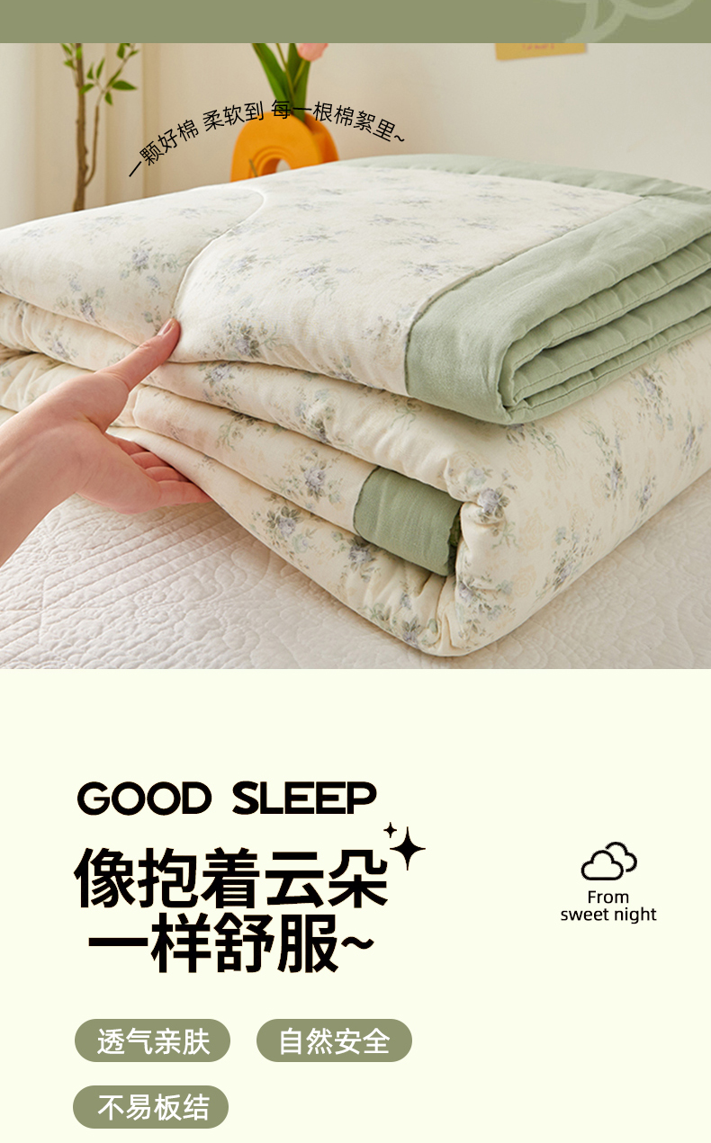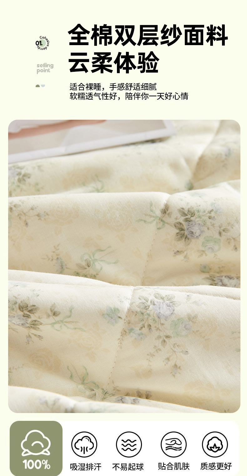 商品名称:铺尚美家纺 2026新款全棉双层纱夏被被子被芯 柒月绿