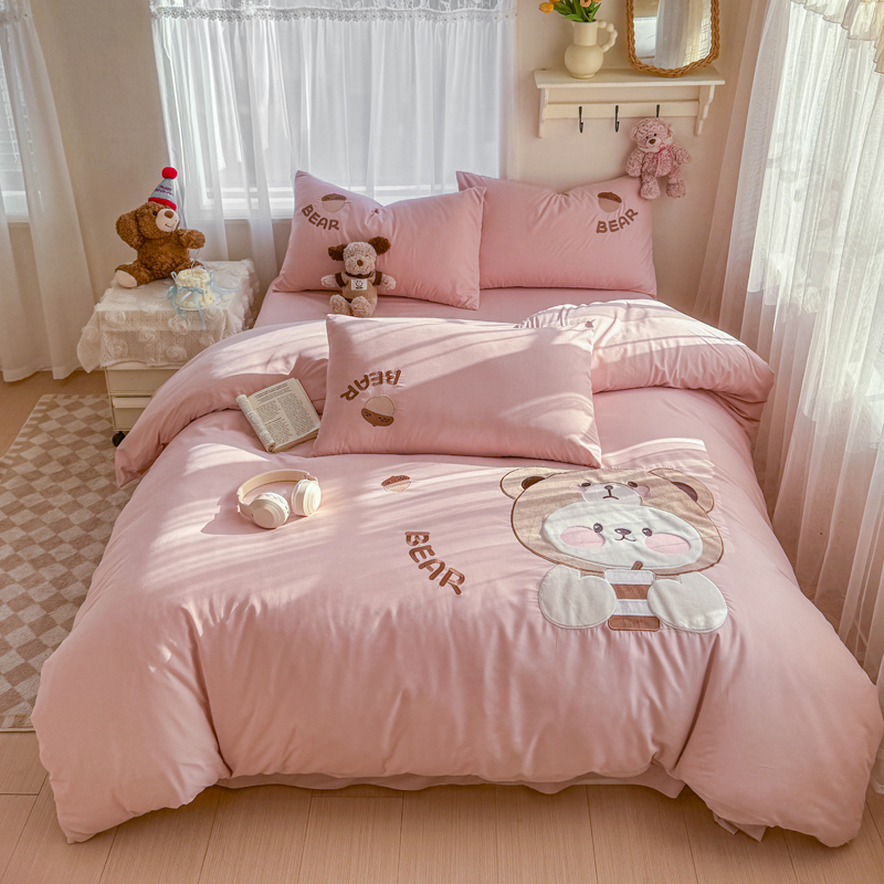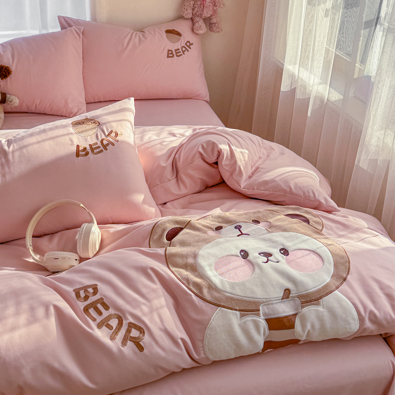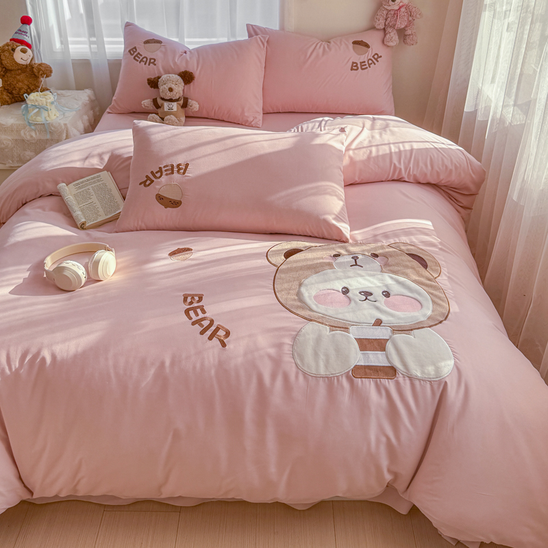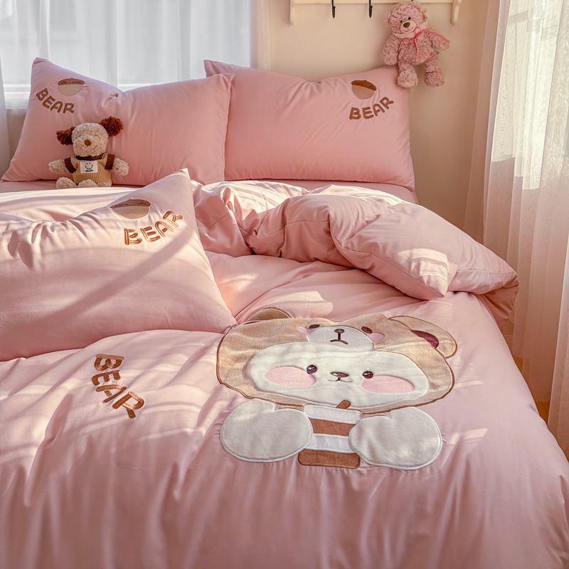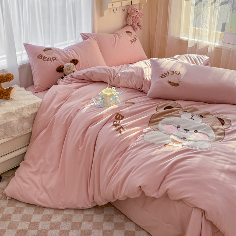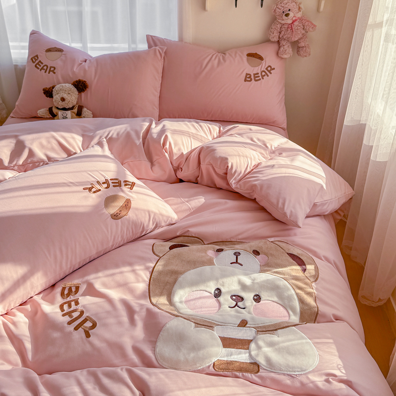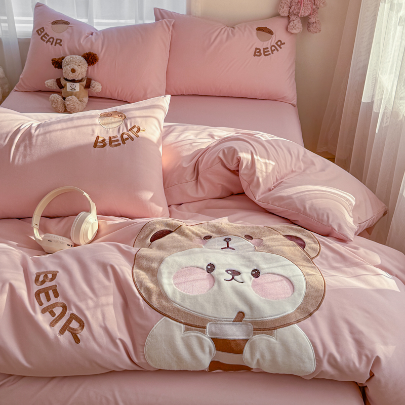 橘子家 2026新款卡通绣花四件套 熊仔