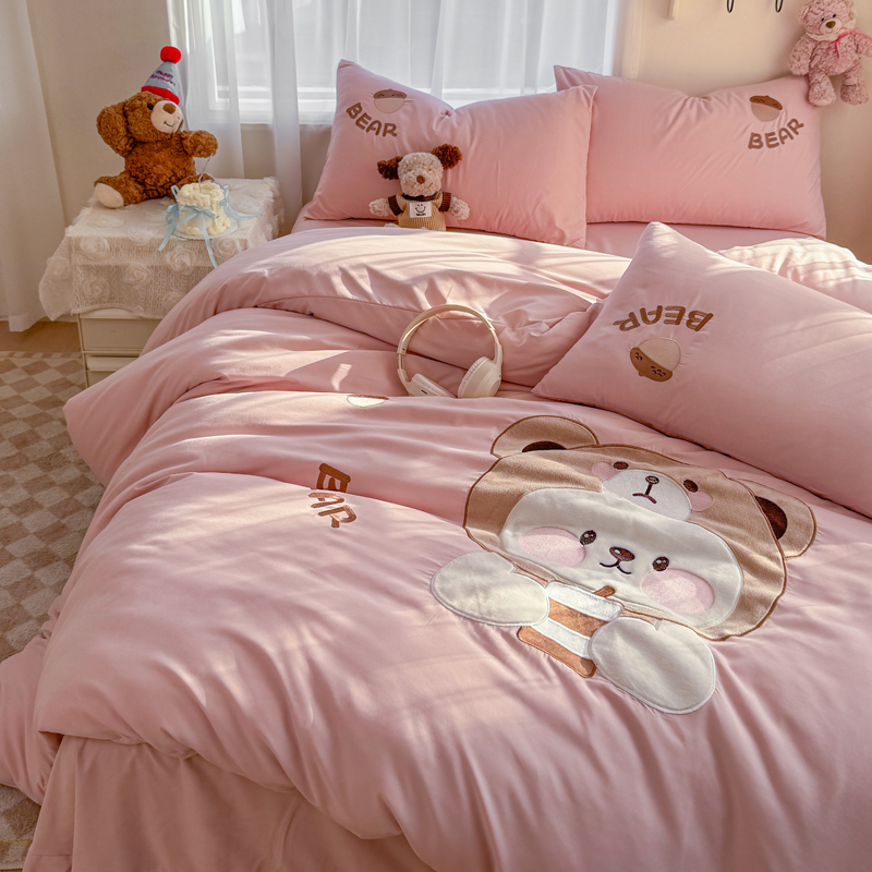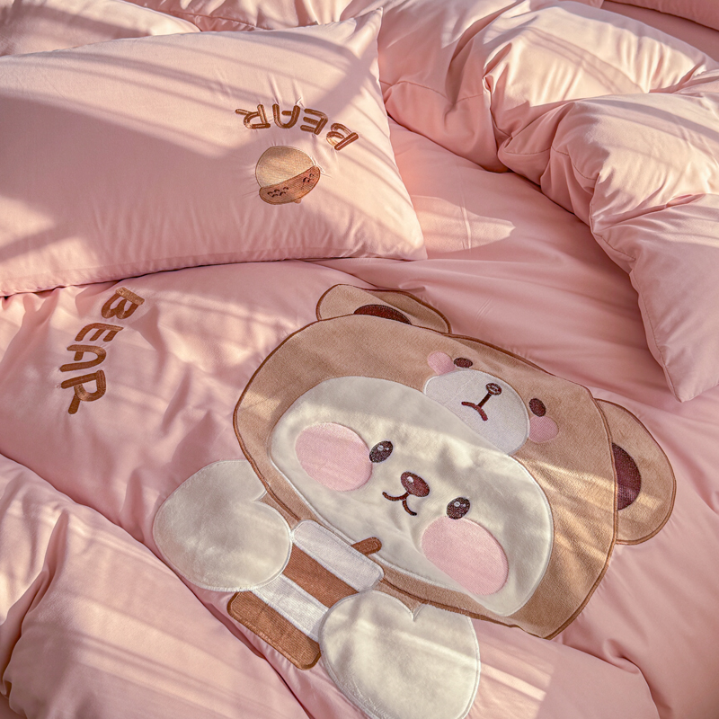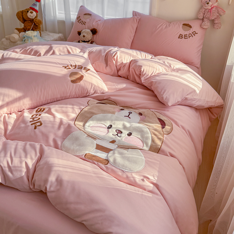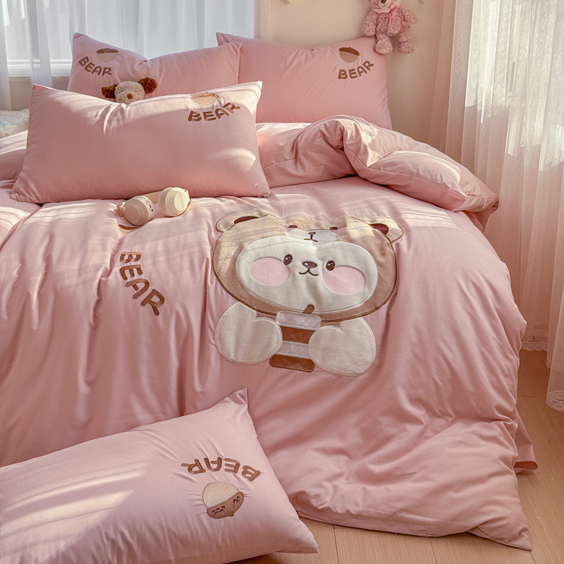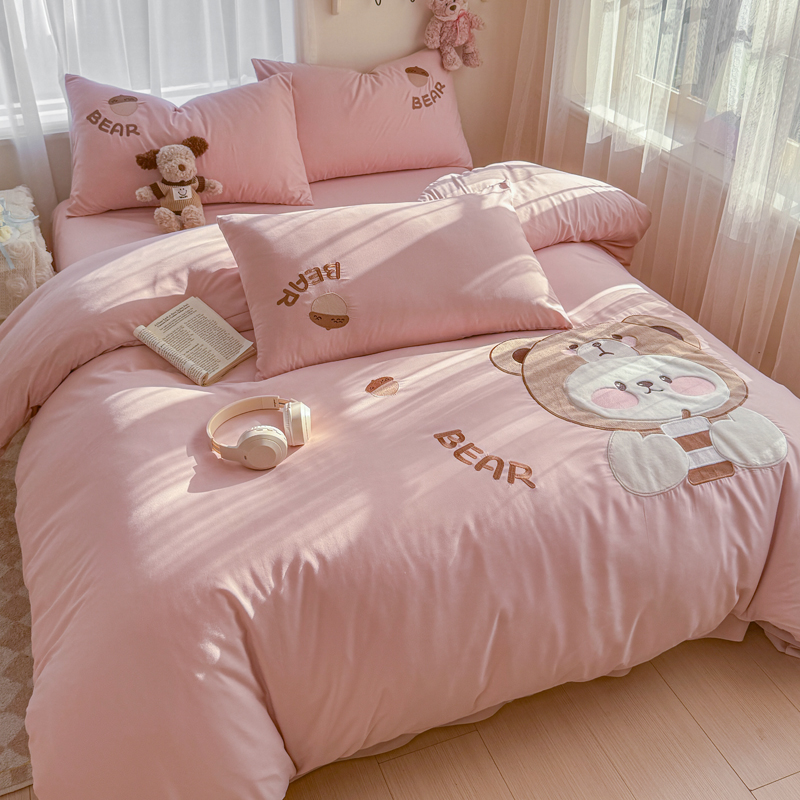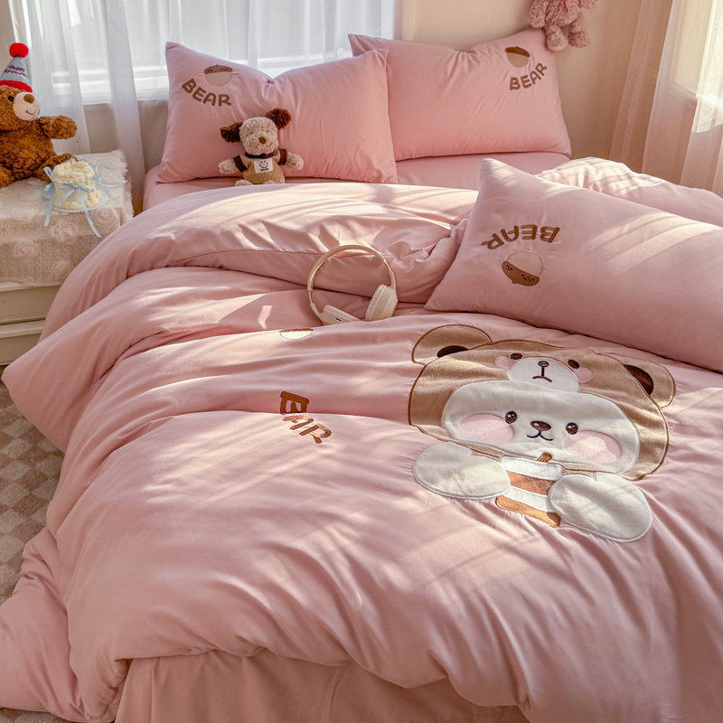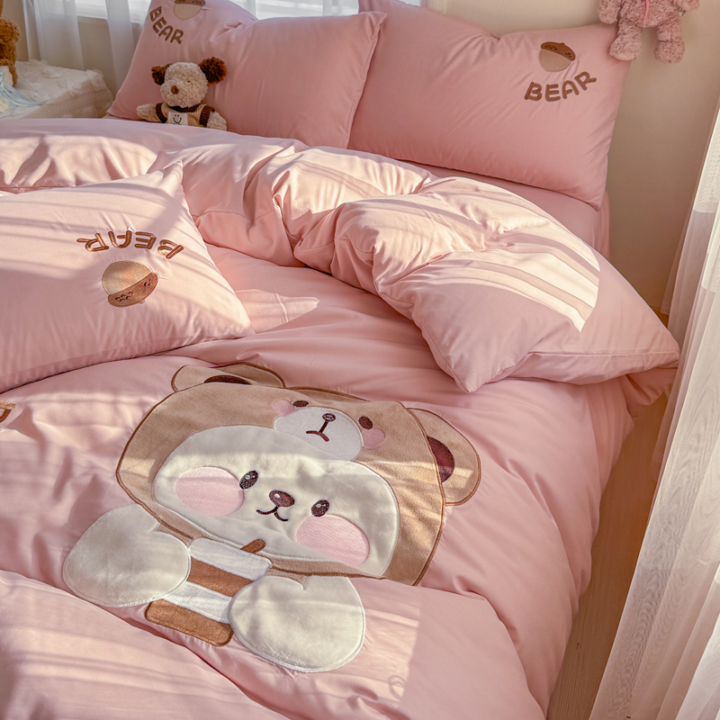 橘子家 2026新款卡通绣花四件套 熊仔