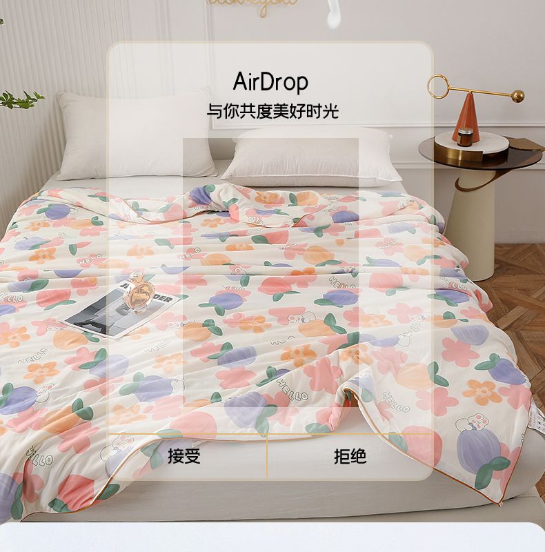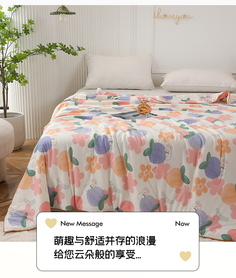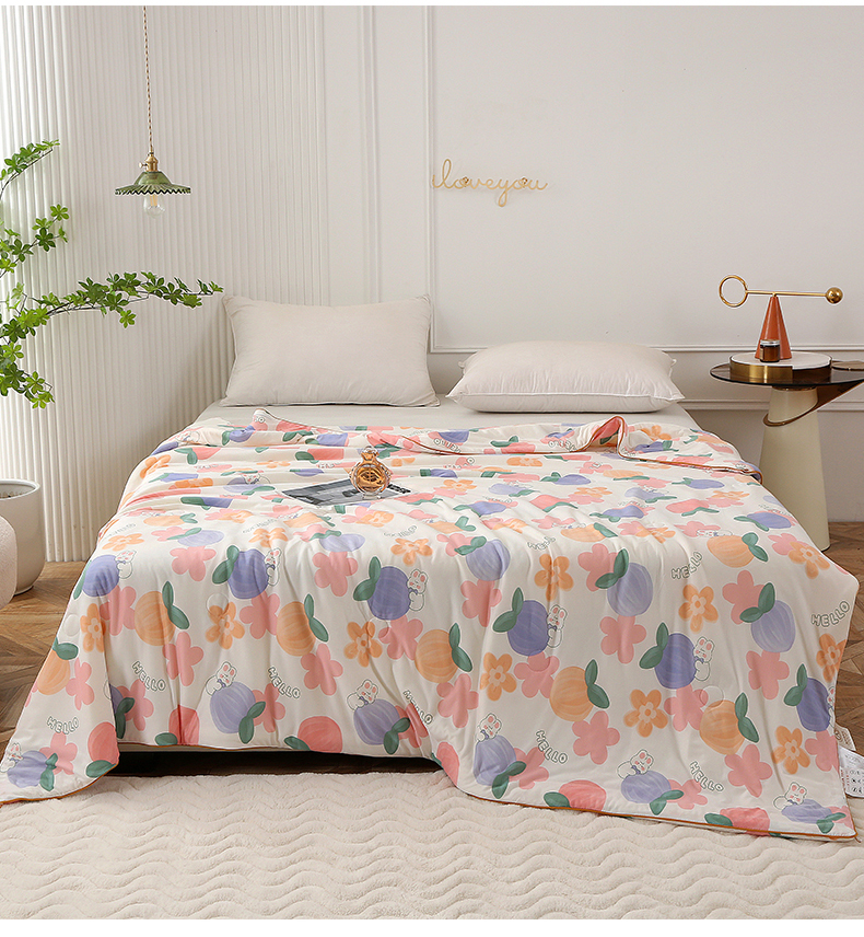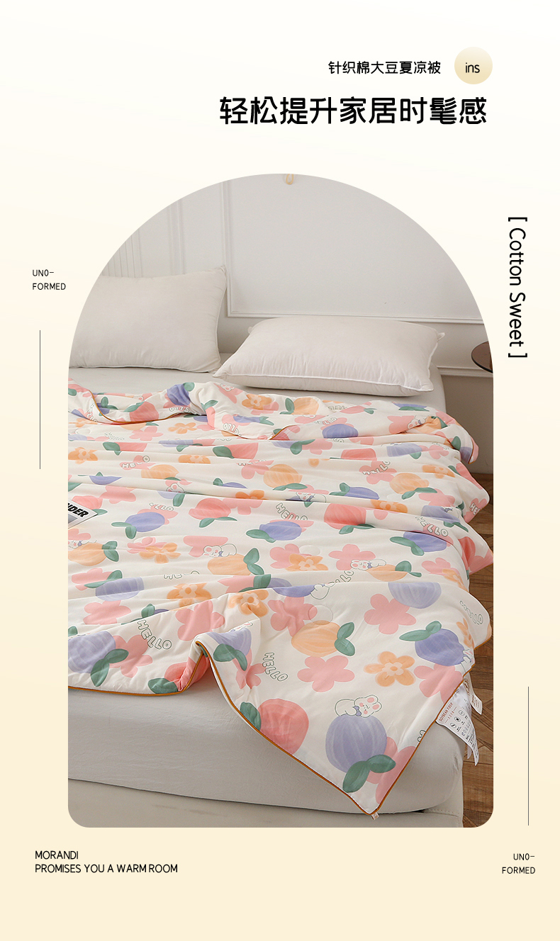 薇玛仕 2026新款A类牛奶丝针织棉印花大豆夏凉被空调被儿童被 兔桃桃