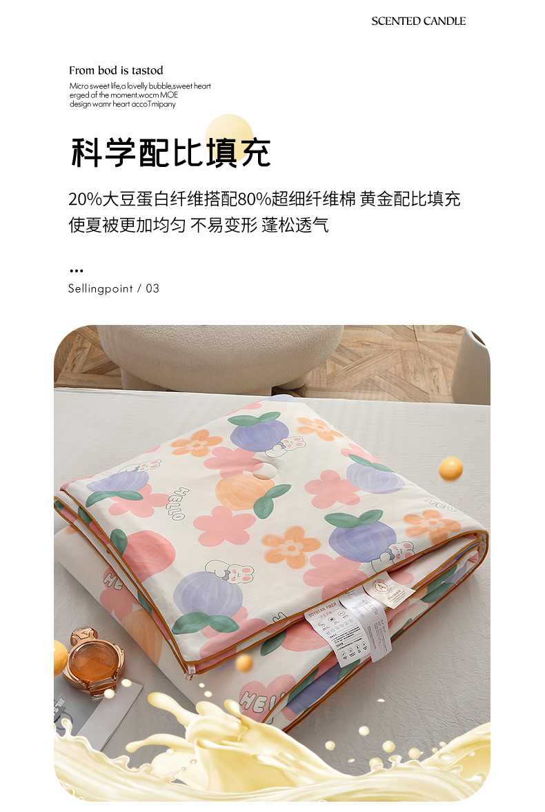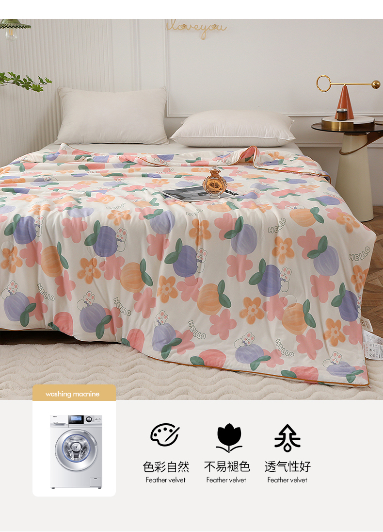 商品名称:薇玛仕 2026新款A类牛奶丝针织棉印花大豆夏凉被空调被儿童被 兔桃桃