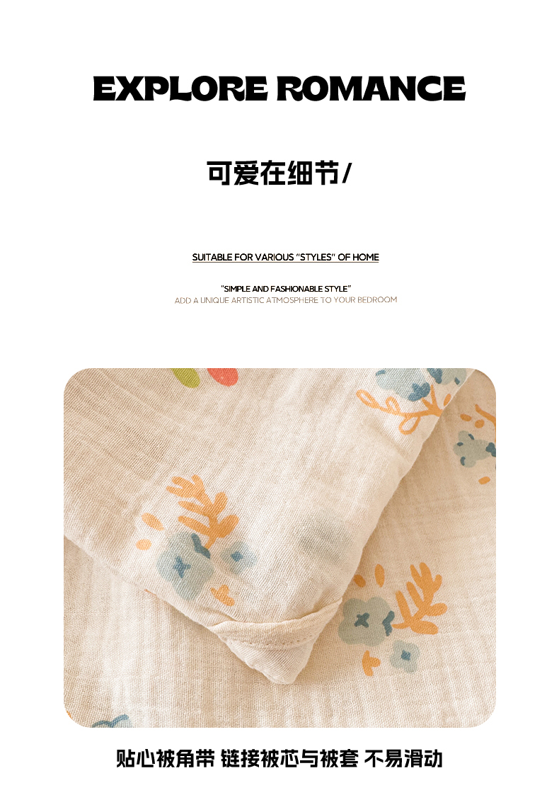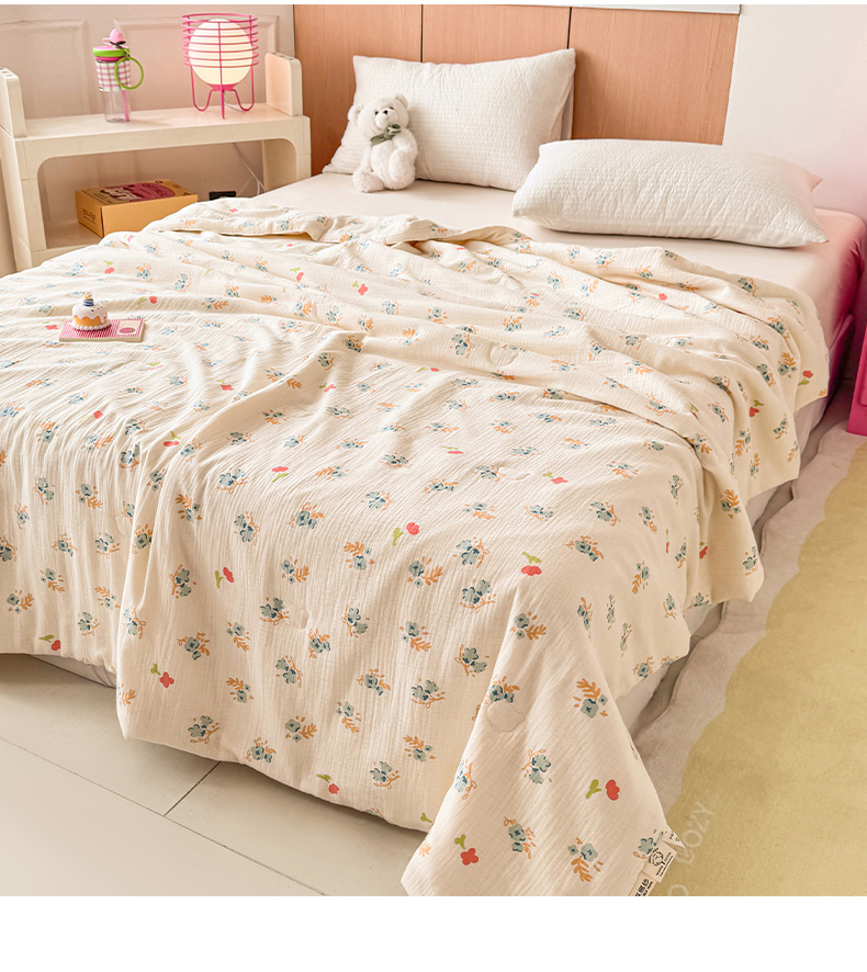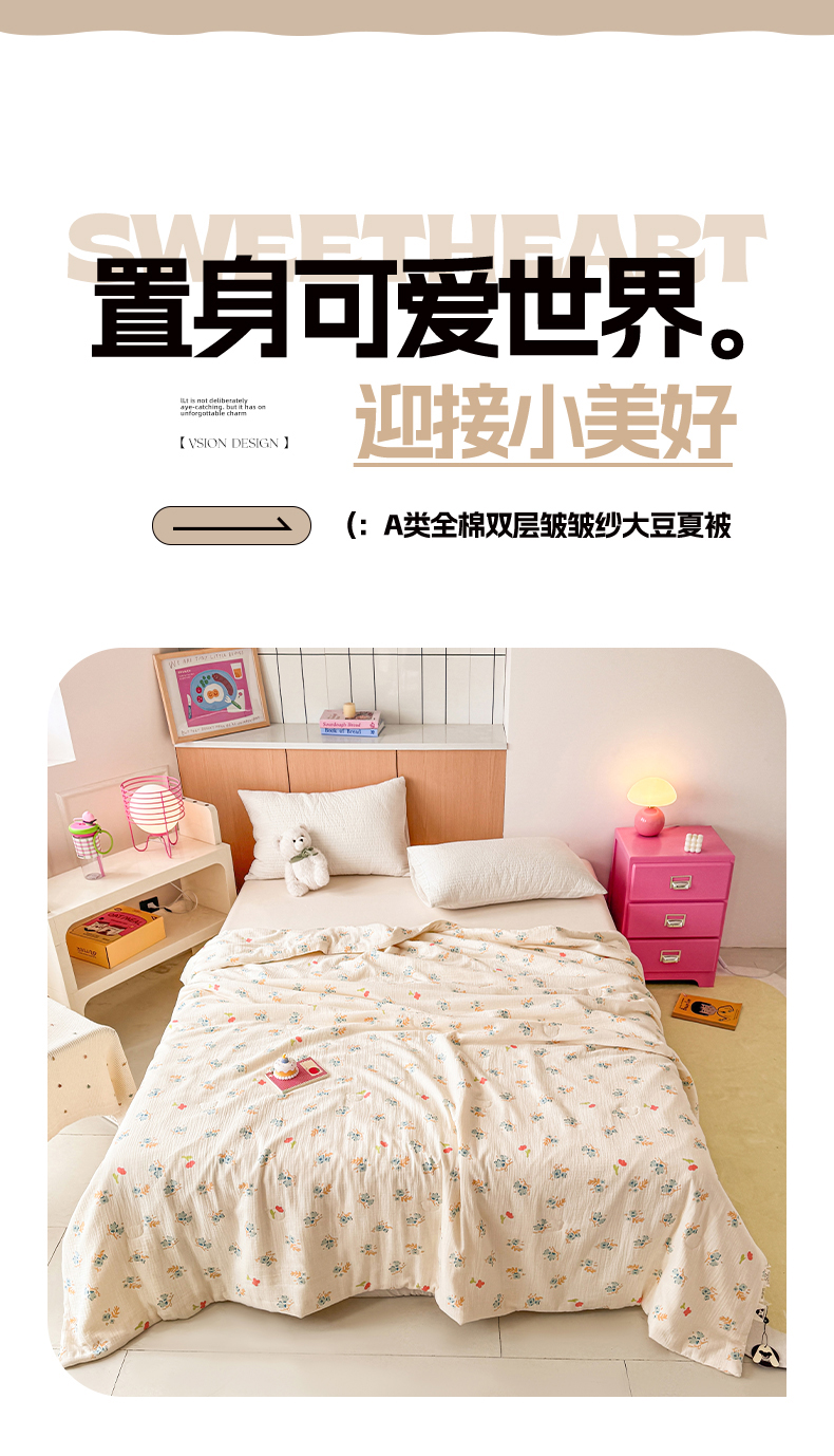 • 91家纺网 家纺一手货源 找家纺 薇玛仕 2026新款A类全棉双层皱皱纱印花款大豆夏凉被空调被亲子被卡通儿童被 兰花朵朵
