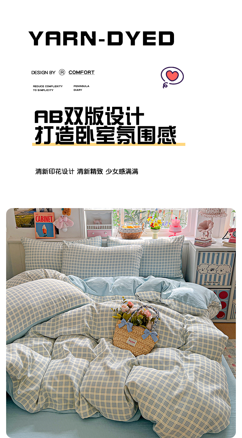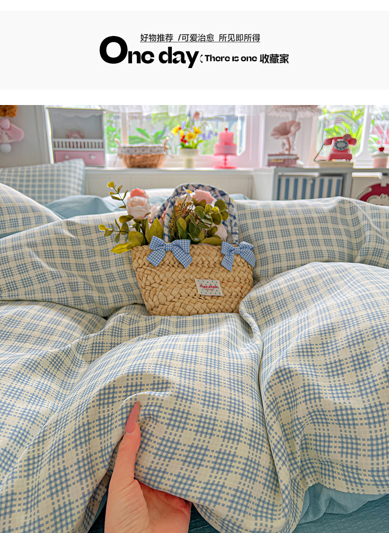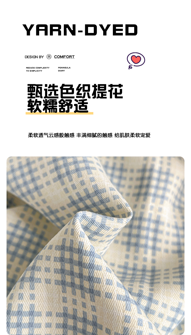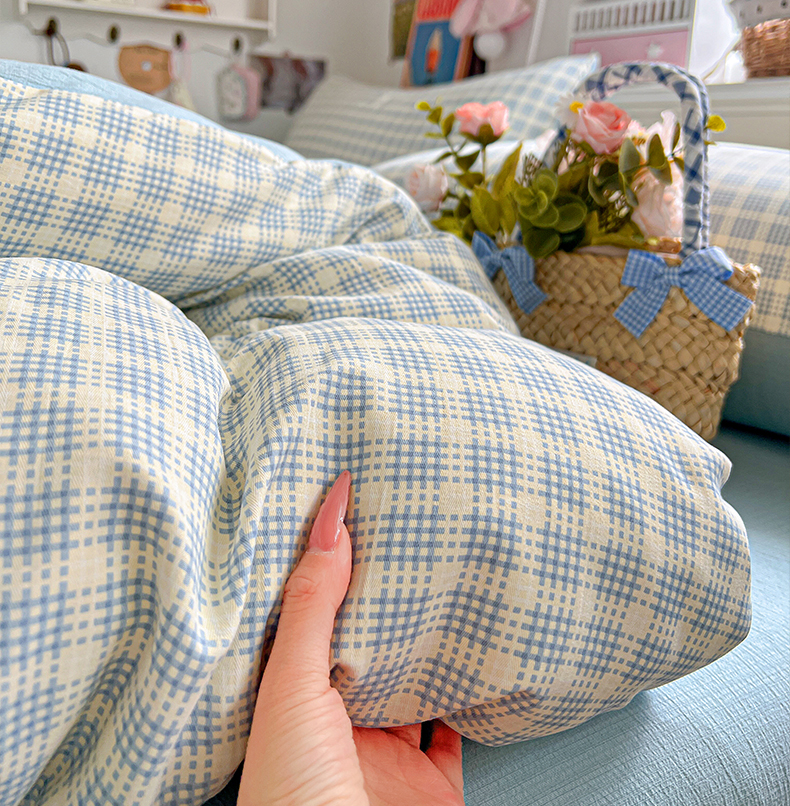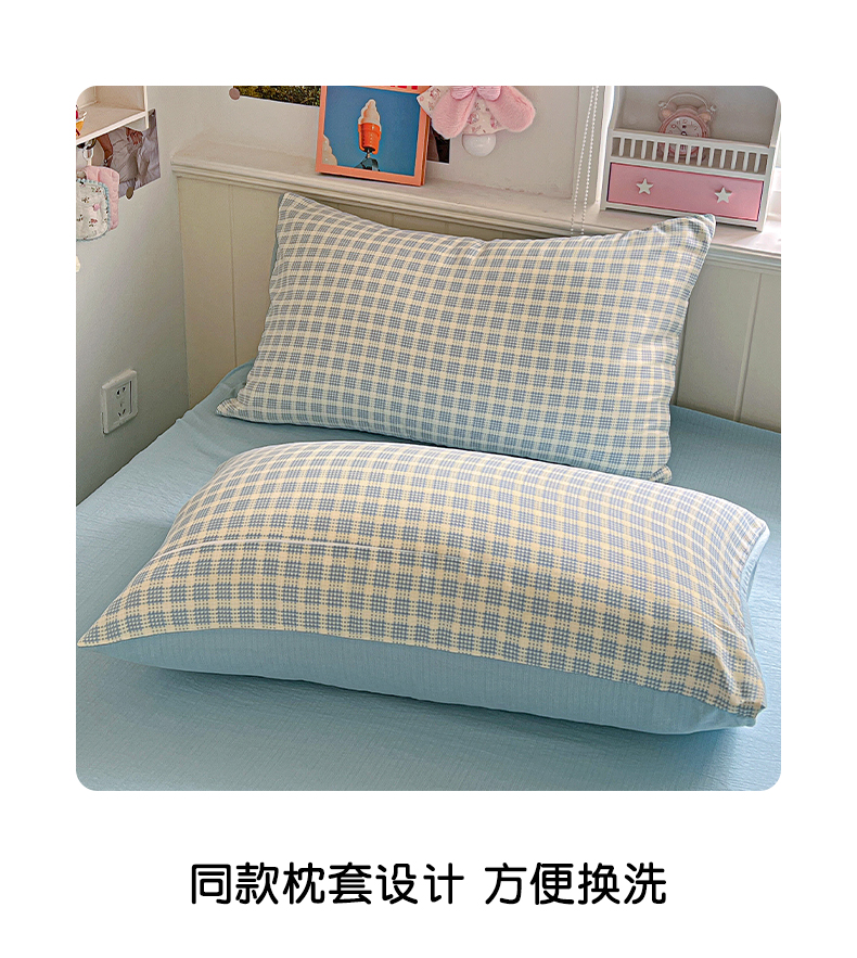 当前位置: 91家纺网 > 商品网购 > 床品套件 > 四件套 > 提花四件套 > 金梦拉家纺 2026春夏新款高克重提花色织印花小布袋四件套 海盐蓝格