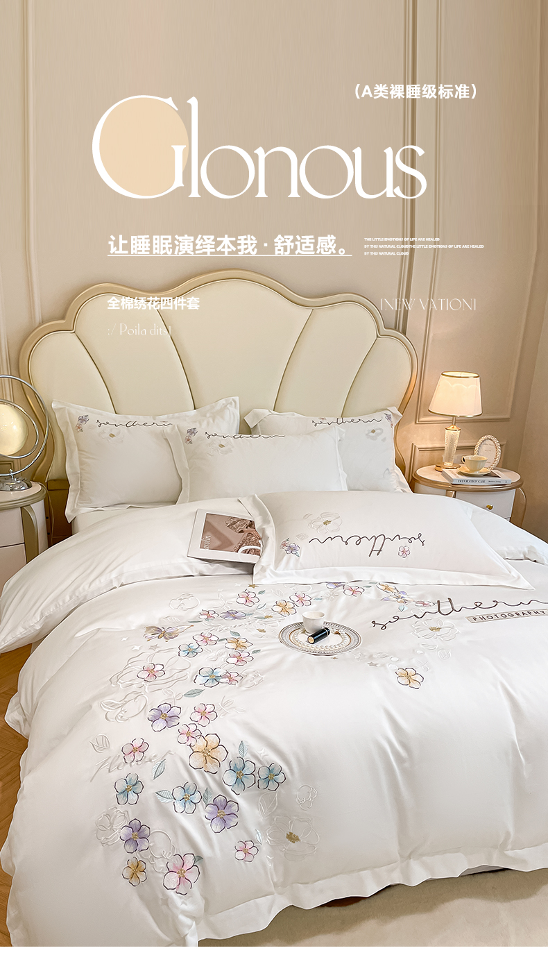 当前位置: 91家纺网 > 商品网购 > 床品套件 > 四件套 > 全棉普通四件套 > 博纳家纺 2026春夏新款13372全棉纯棉绣花四件套-奈雪 奈雪-象牙白