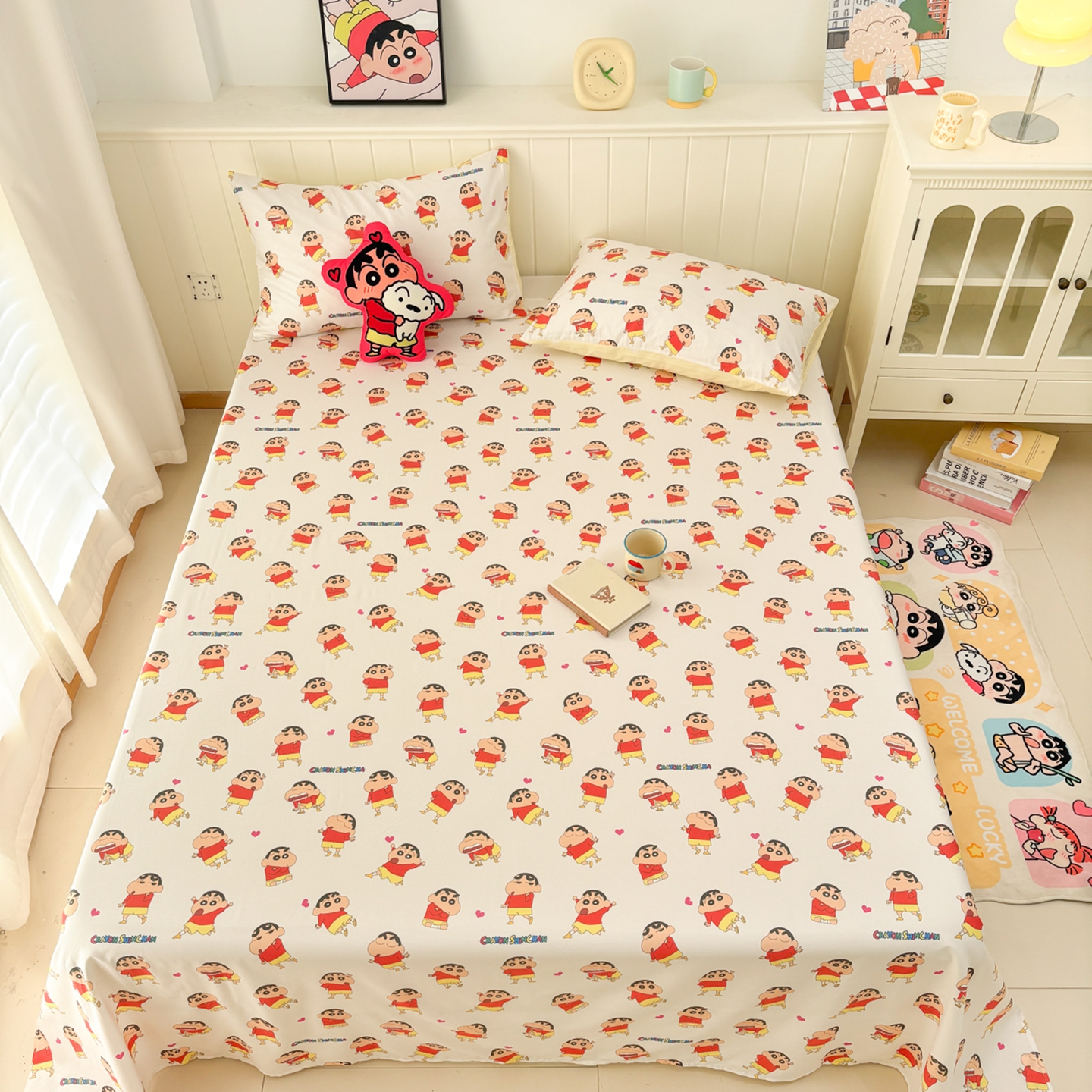 当前位置: 91家纺网 > 商品网购 > 床上用品 > 床单 > 孩子王家纺 2026新款卡通全棉纯棉正版授权小版蜡笔小新系列单床单床单单件单品床单-含防伪码 乐天派小新