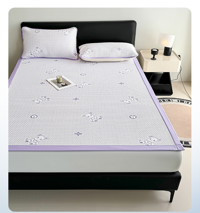 • 91家纺网 家纺一手货源 找家纺 家品罗兰 2026新款夏季A类冰豆豆凉席冰丝凉席家用双人冰丝席床单可机洗水洗单人学生宿舍夏天空调软席三件套大床 抱抱熊-紫