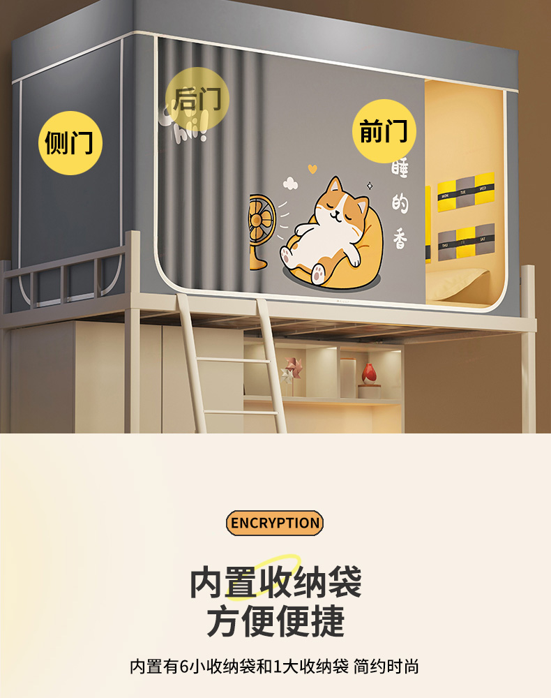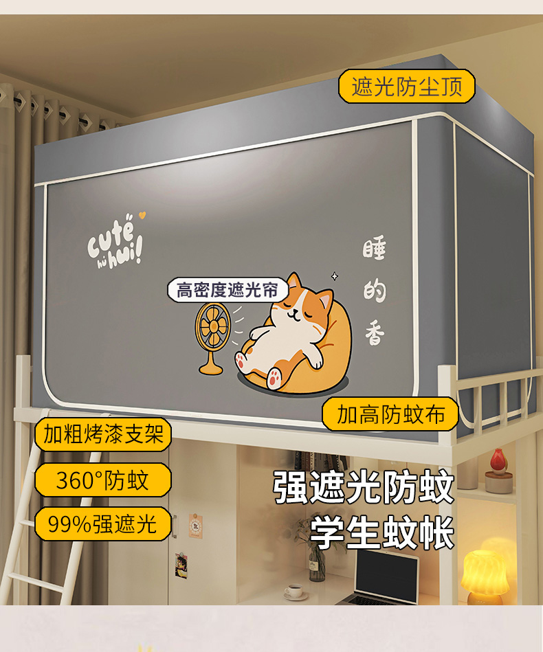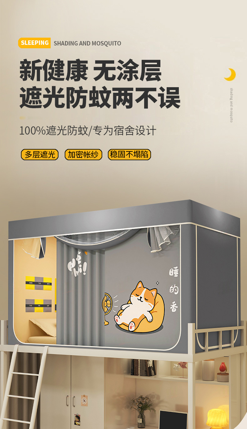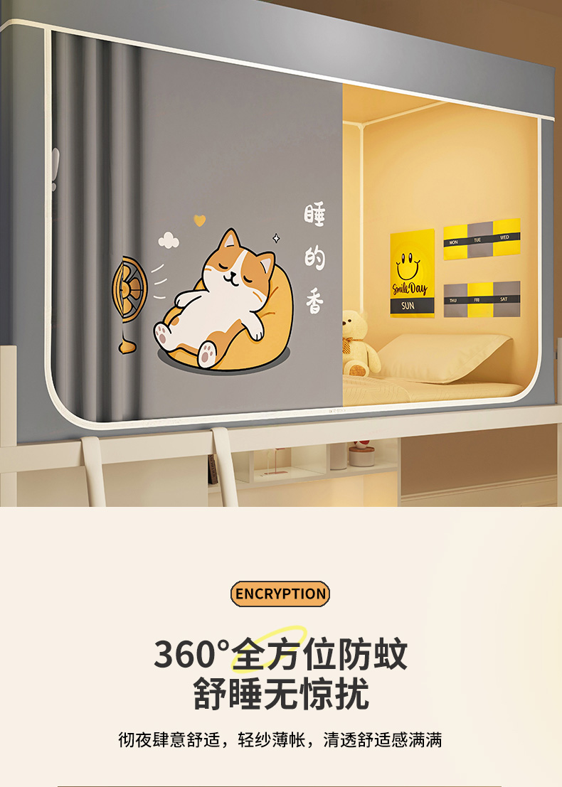 当前位置: 91家纺网 > 商品网购 > 床上用品 > 蚊帐 > 学生蚊帐 > 宅部落 2026新款宅部落学生床帘宿舍上下铺印花无涂层强遮光学生蚊帐 酣睡喵
