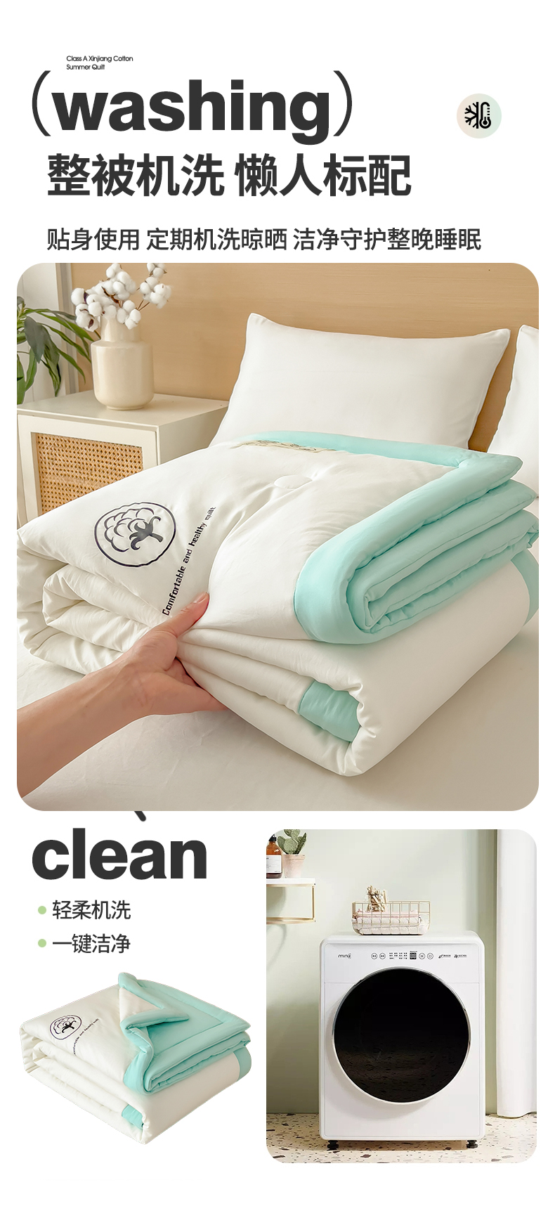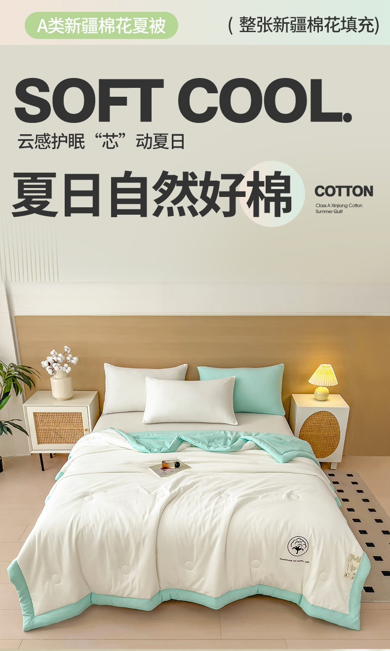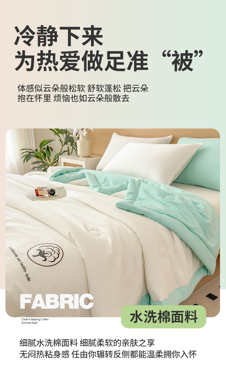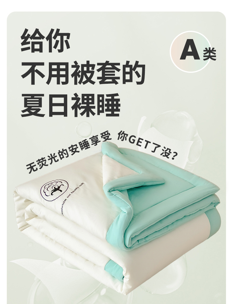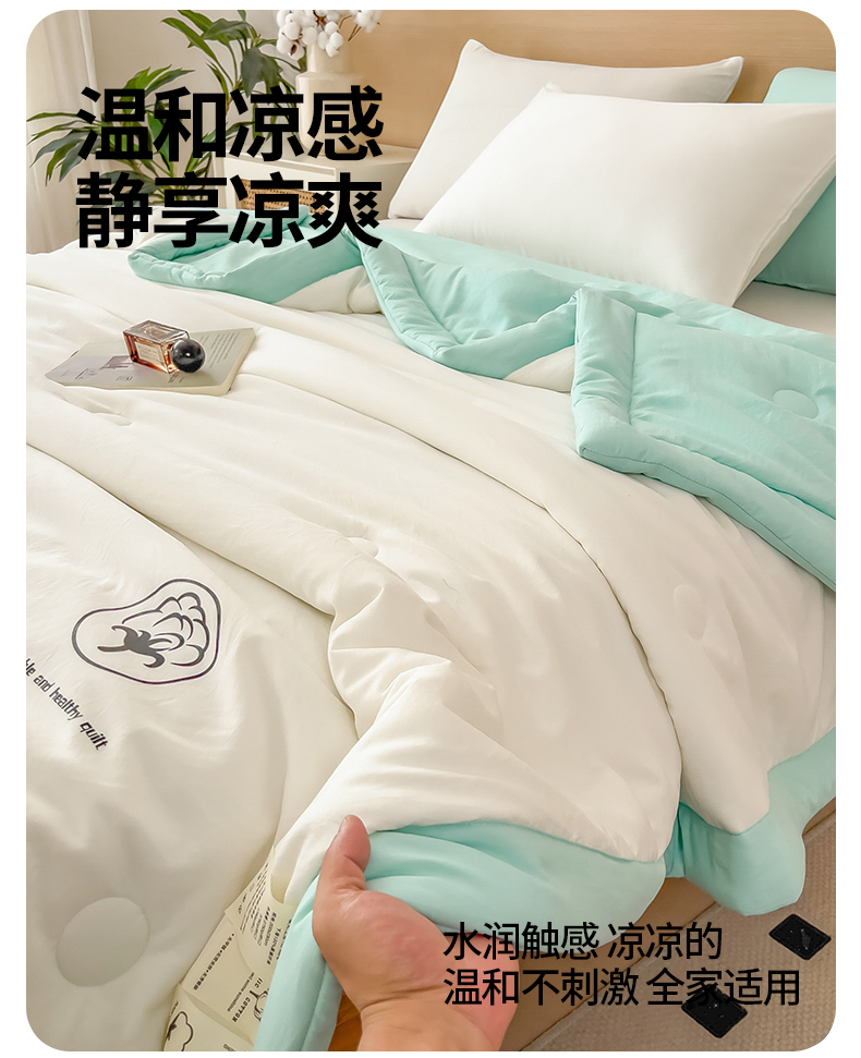 商品名称:好尚居 2026新款纯色烫画夏被夏凉被空调被-棉记 棉记-薄荷白