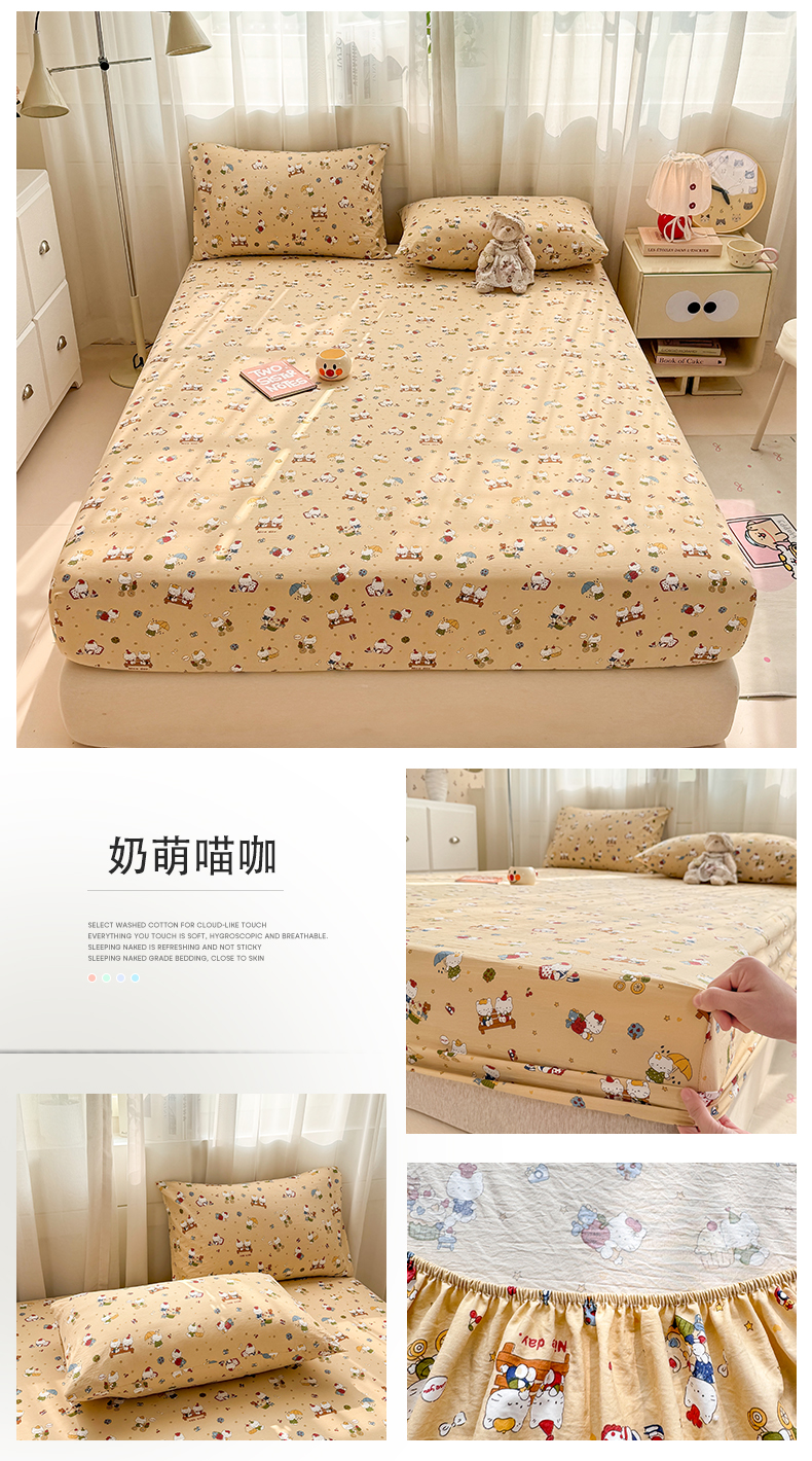 仟网汇 2026新款A类古法水洗棉云感纱单床笠床笠单件 快乐时光