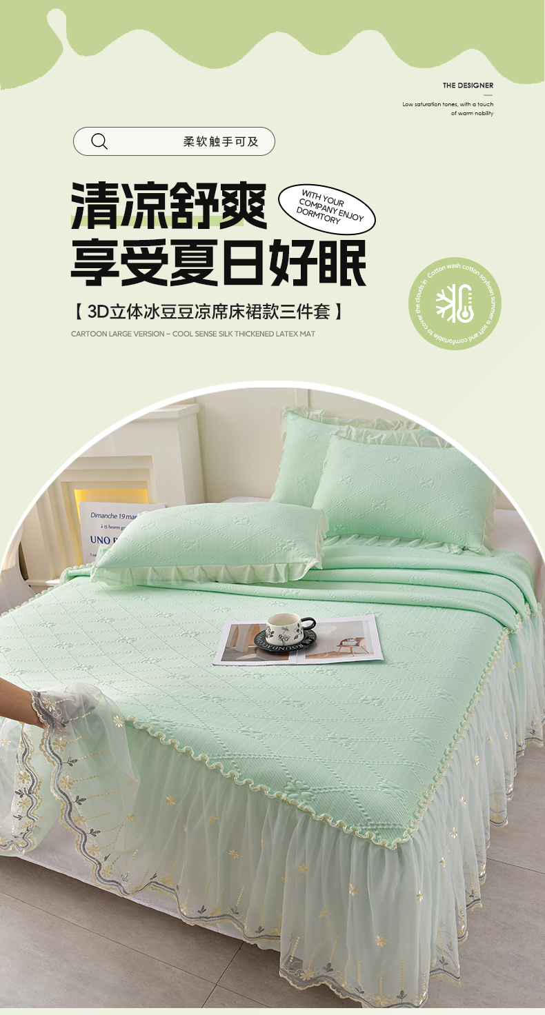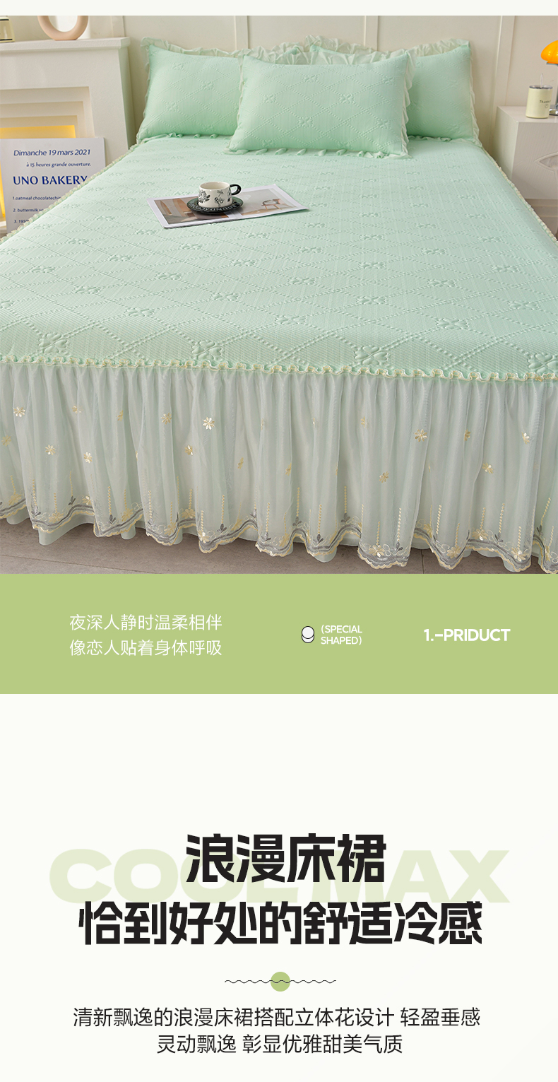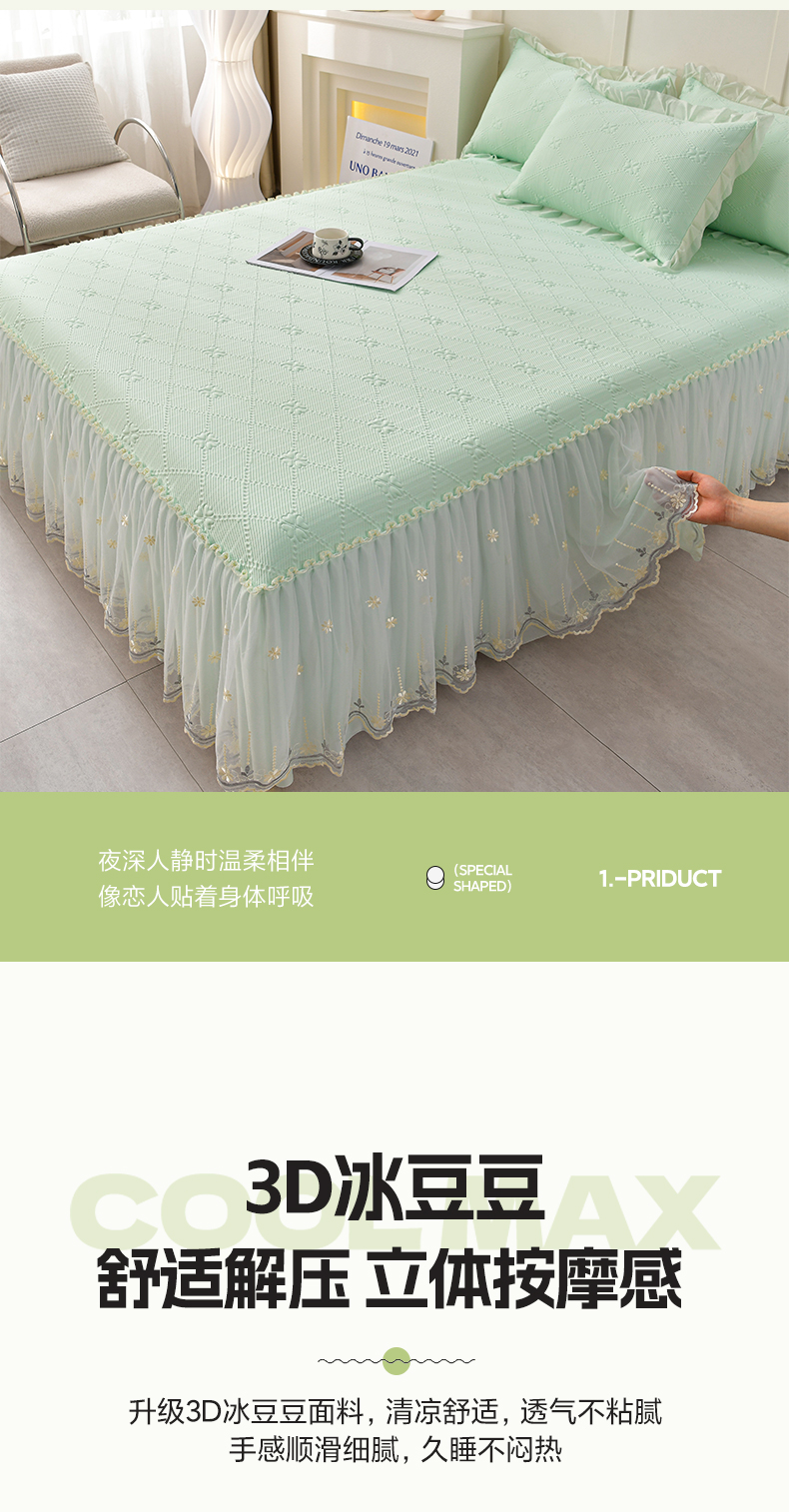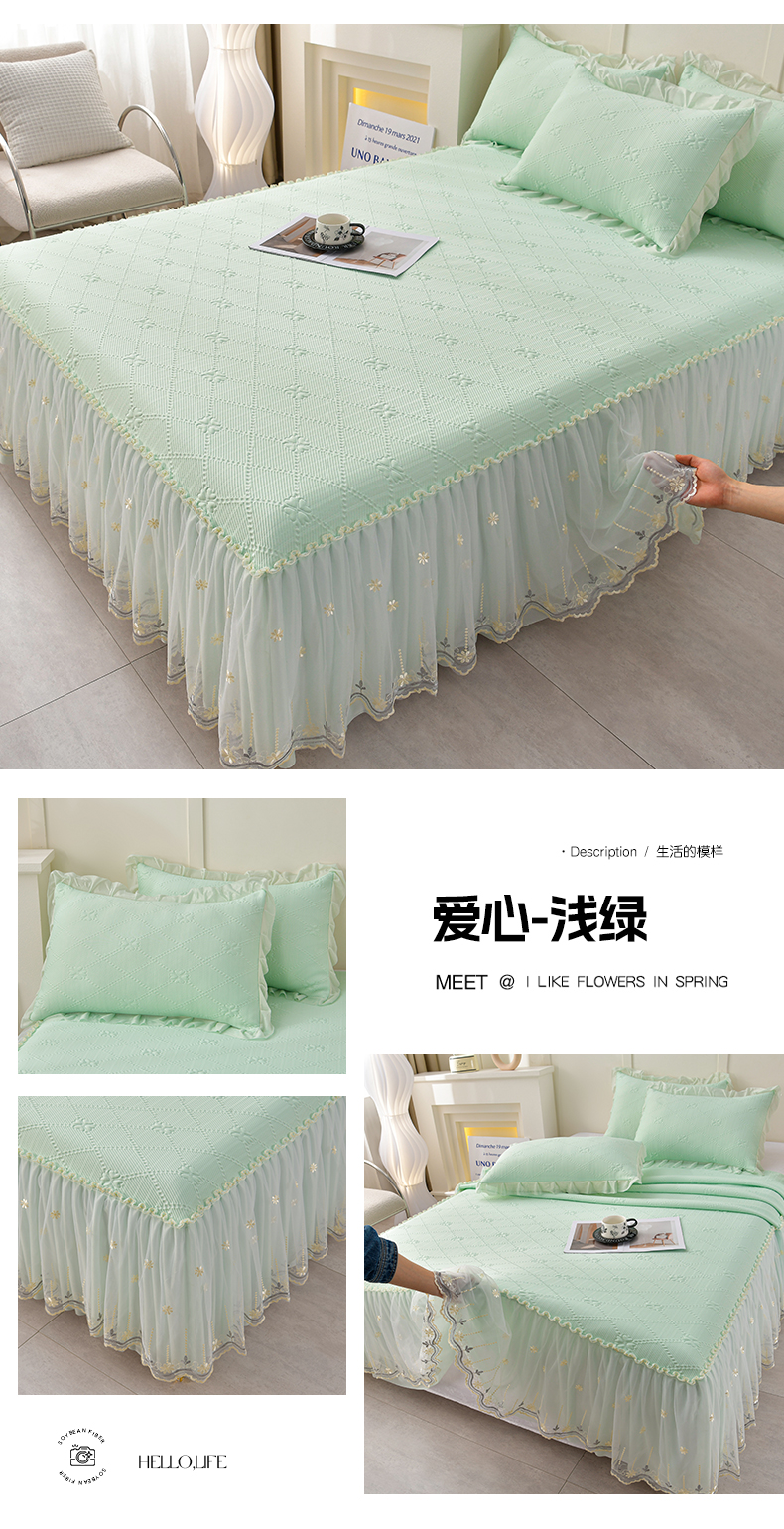 商品名称:畅畅家纺 2026新款网红爆款夏季立体爱心冰豆豆凉席床裙款三件套 爱心-浅绿