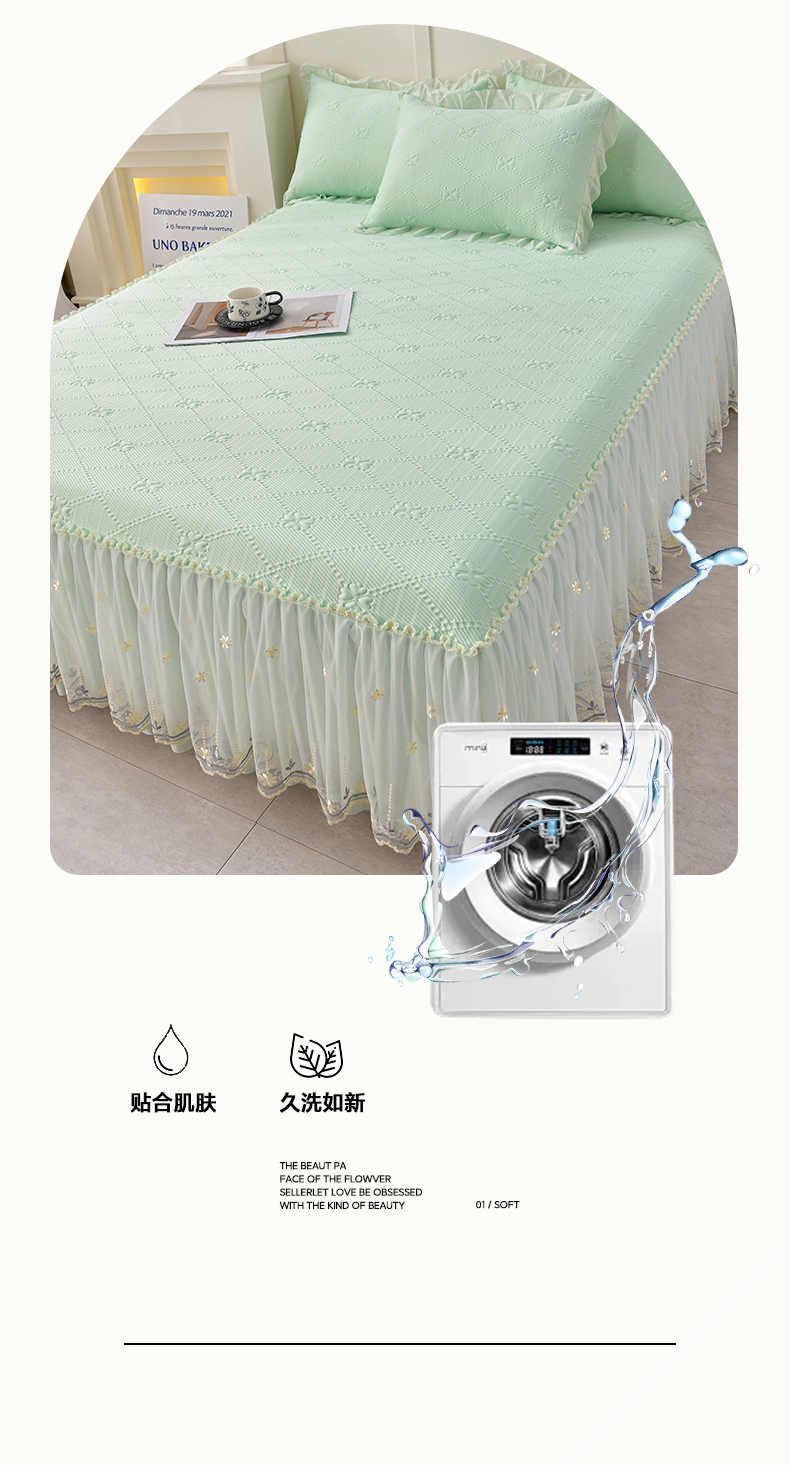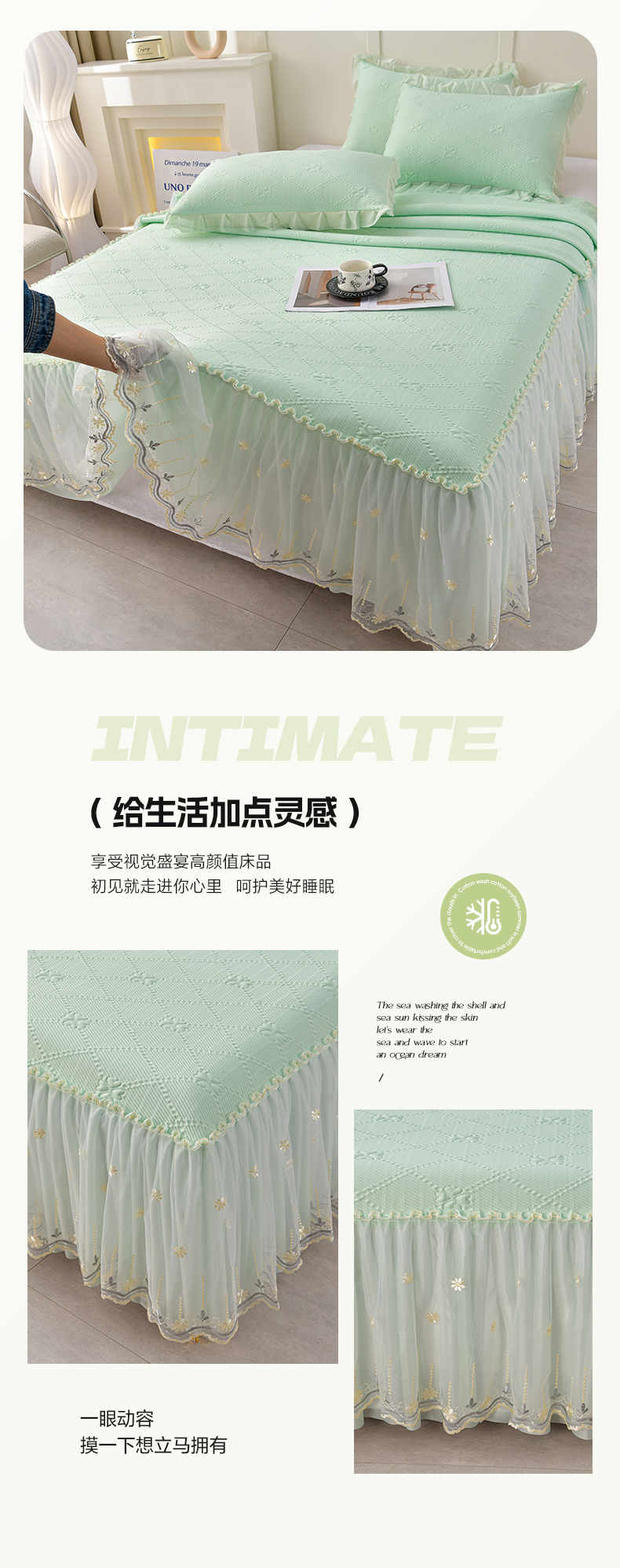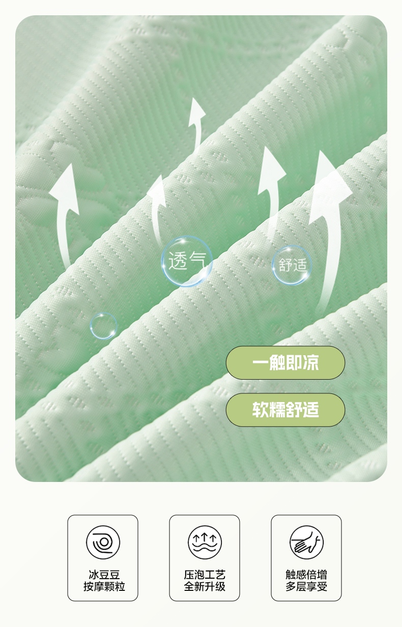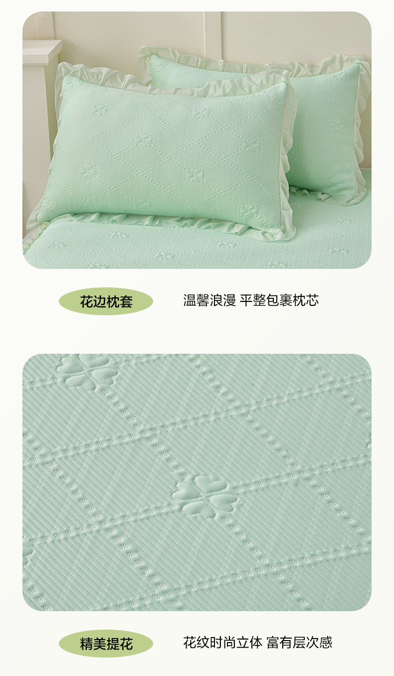 商品名称:畅畅家纺 2026新款网红爆款夏季立体爱心冰豆豆凉席床裙款三件套 爱心-浅绿