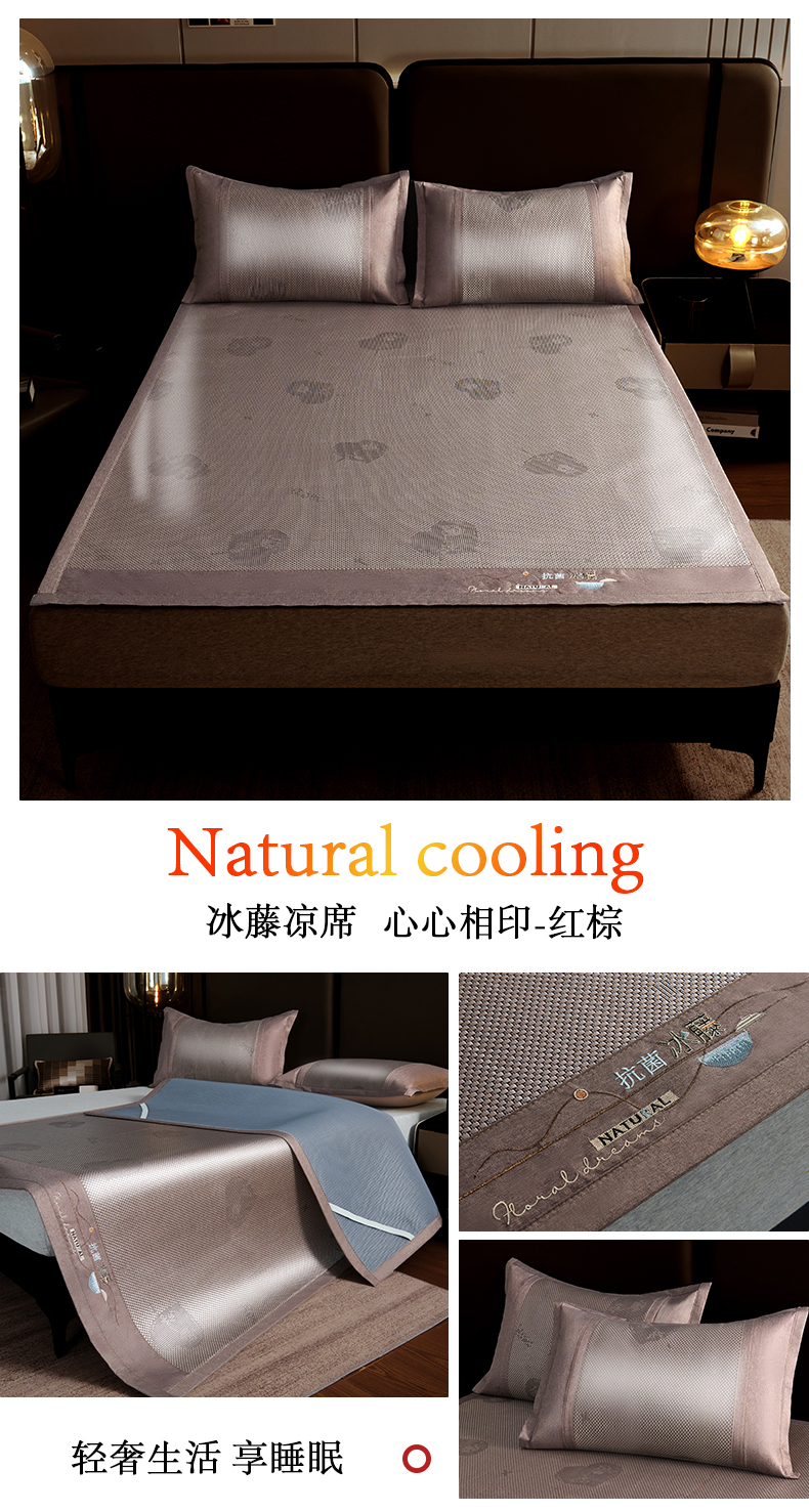 青雅席业 2026新款防滑3D复合冰藤凉席三件套 冰藤-心心相印-咖