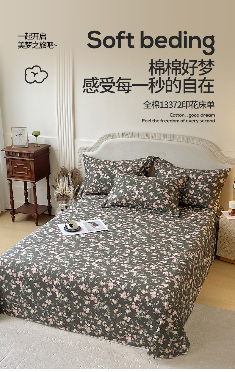 • 91家纺网 家纺一手货源 找家纺 宝齐莱家纺 2026新款全棉纯棉13372印花单床单床单单件 美如画