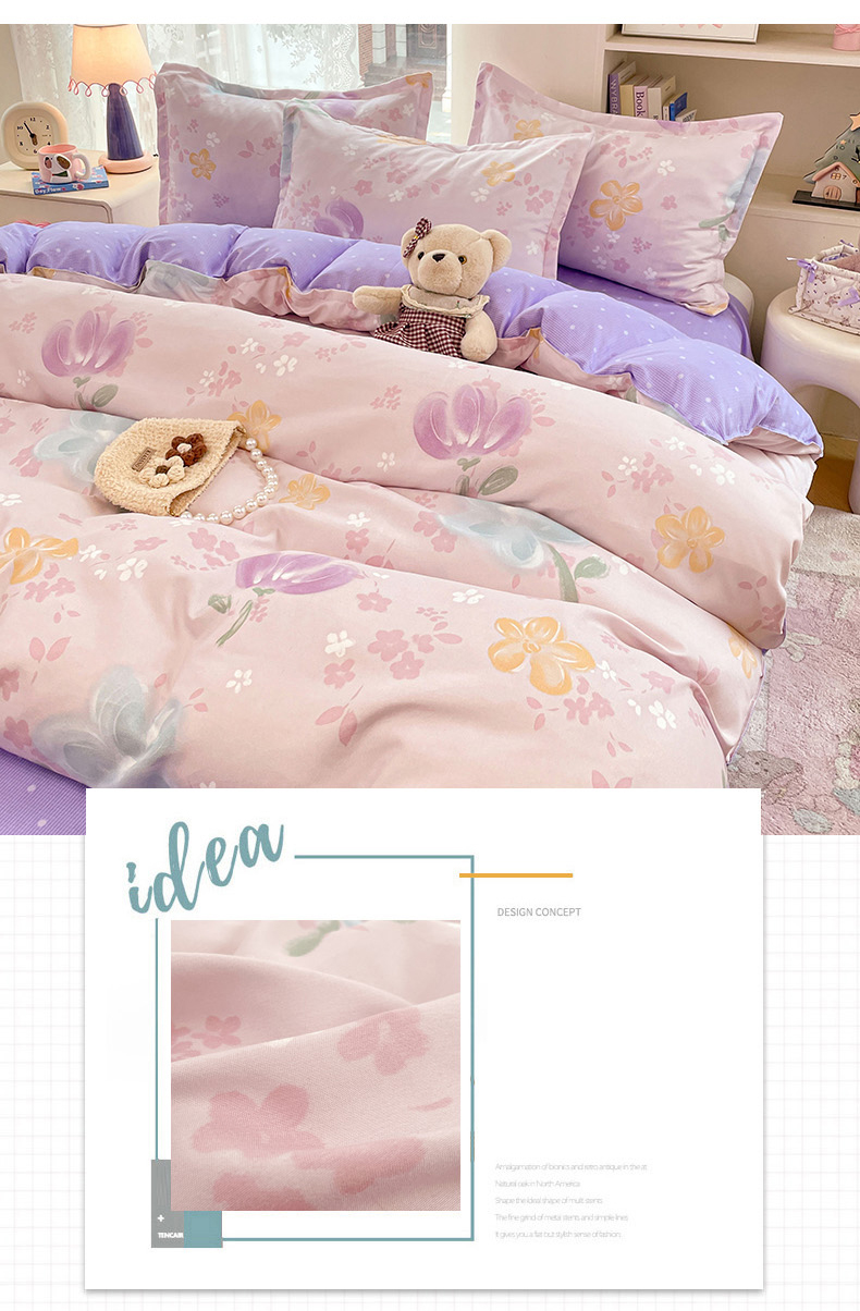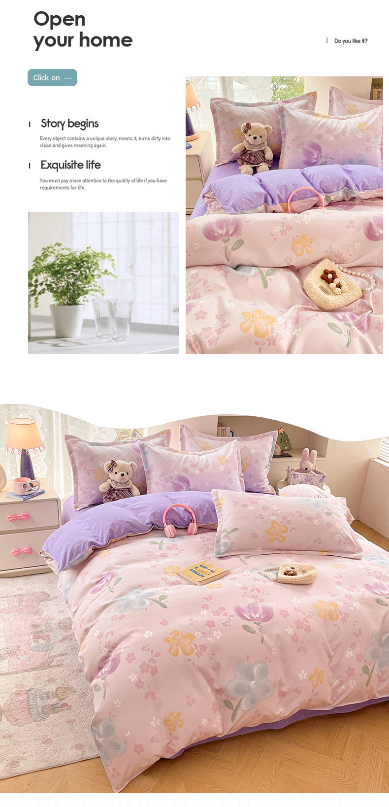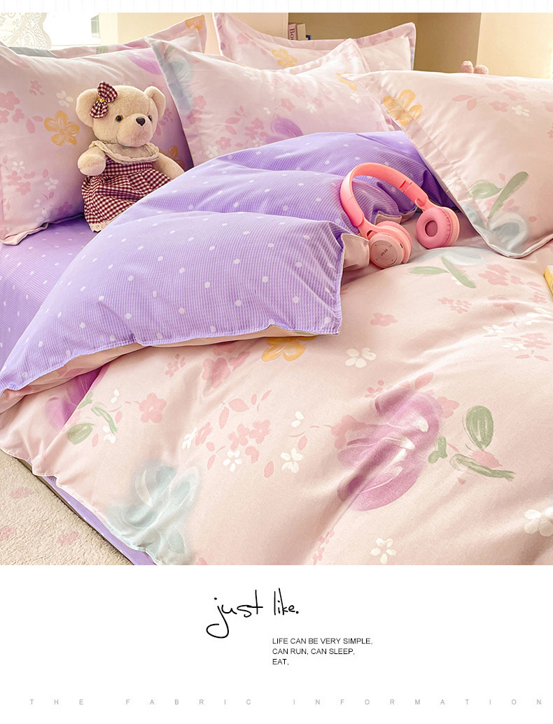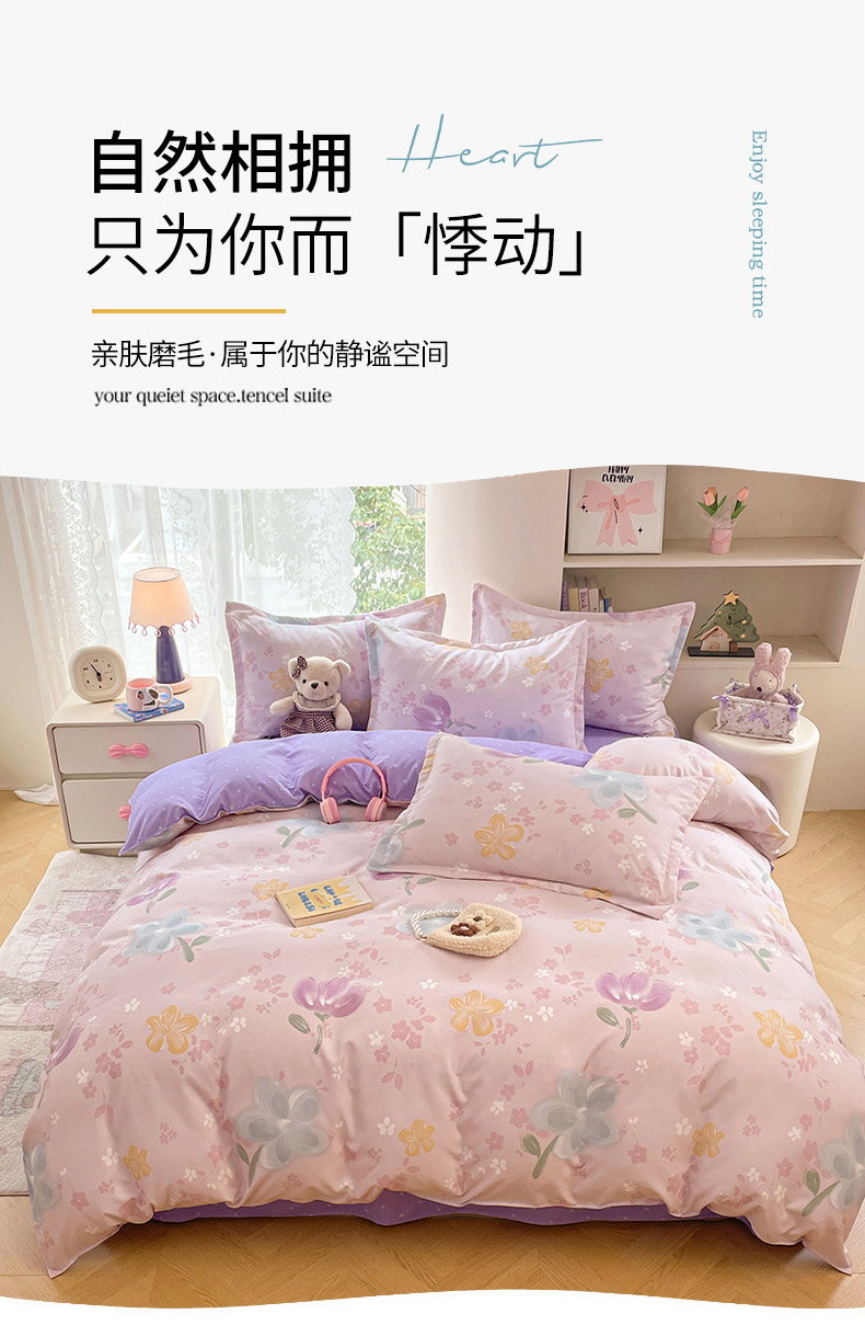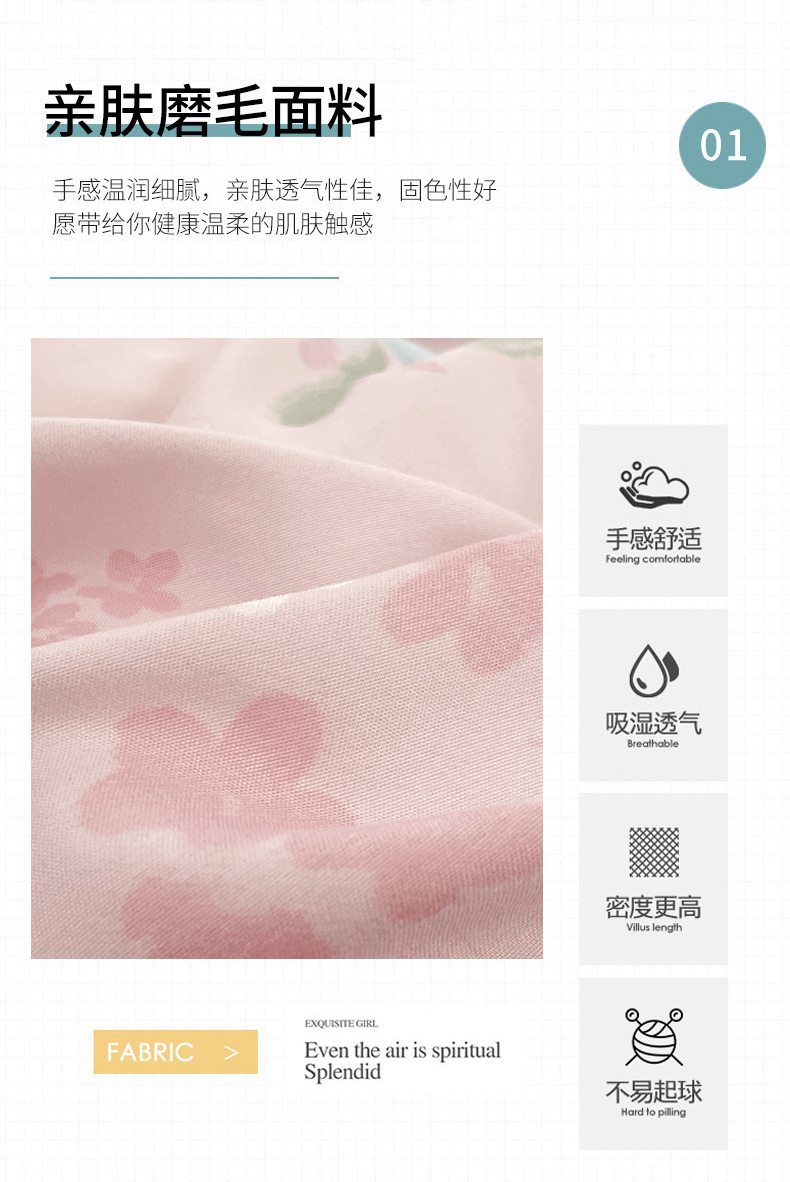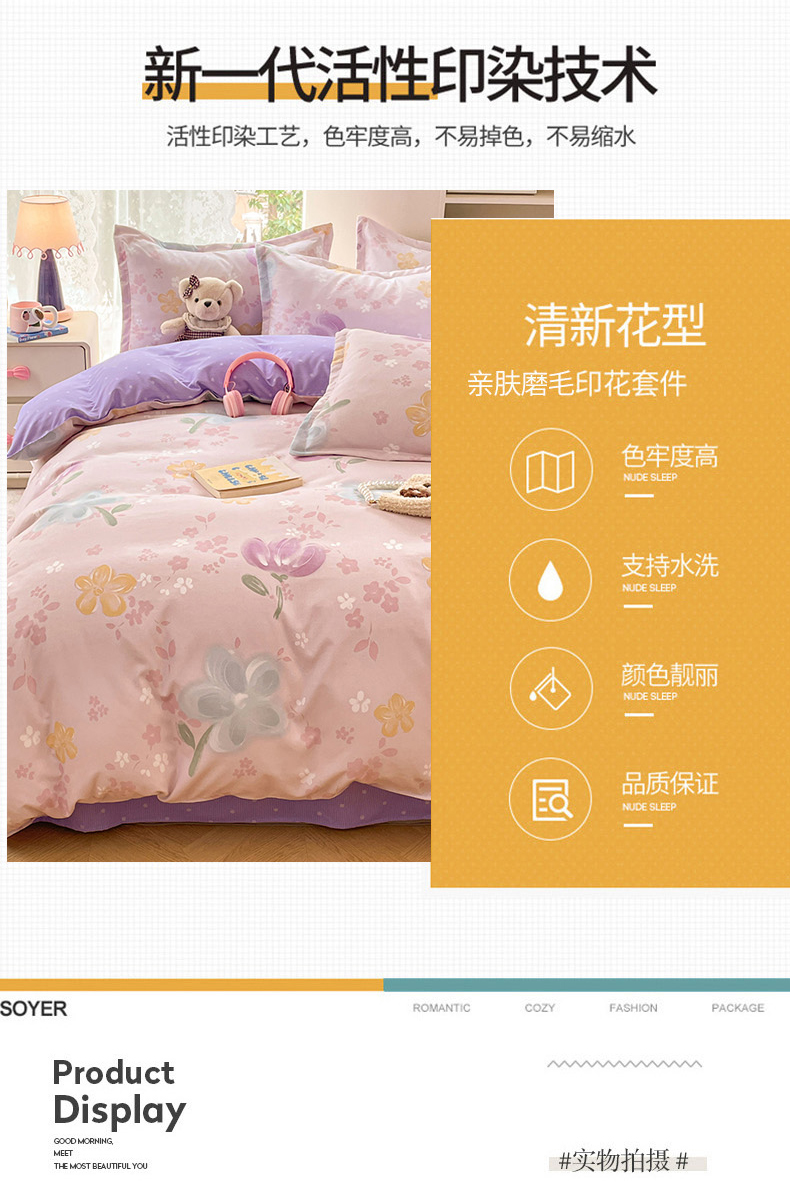 商品名称:世爵 2026春夏新款亲肤磨毛印花四件套 晴光花叙粉