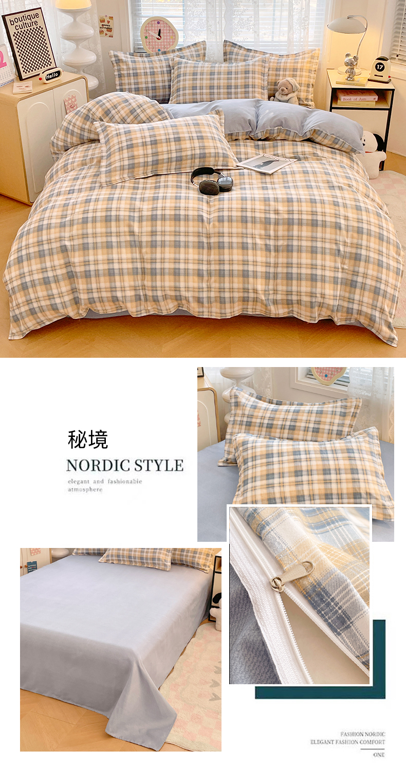(总)世爵 2026新款10A抗菌亲肤水洗棉双拼四件套,卡其蓝,绿浅灰,墨松灰,暖驼,浅灰,深灰,深灰绿,深蓝灰,天空蓝浅灰,远山绿,远天蓝