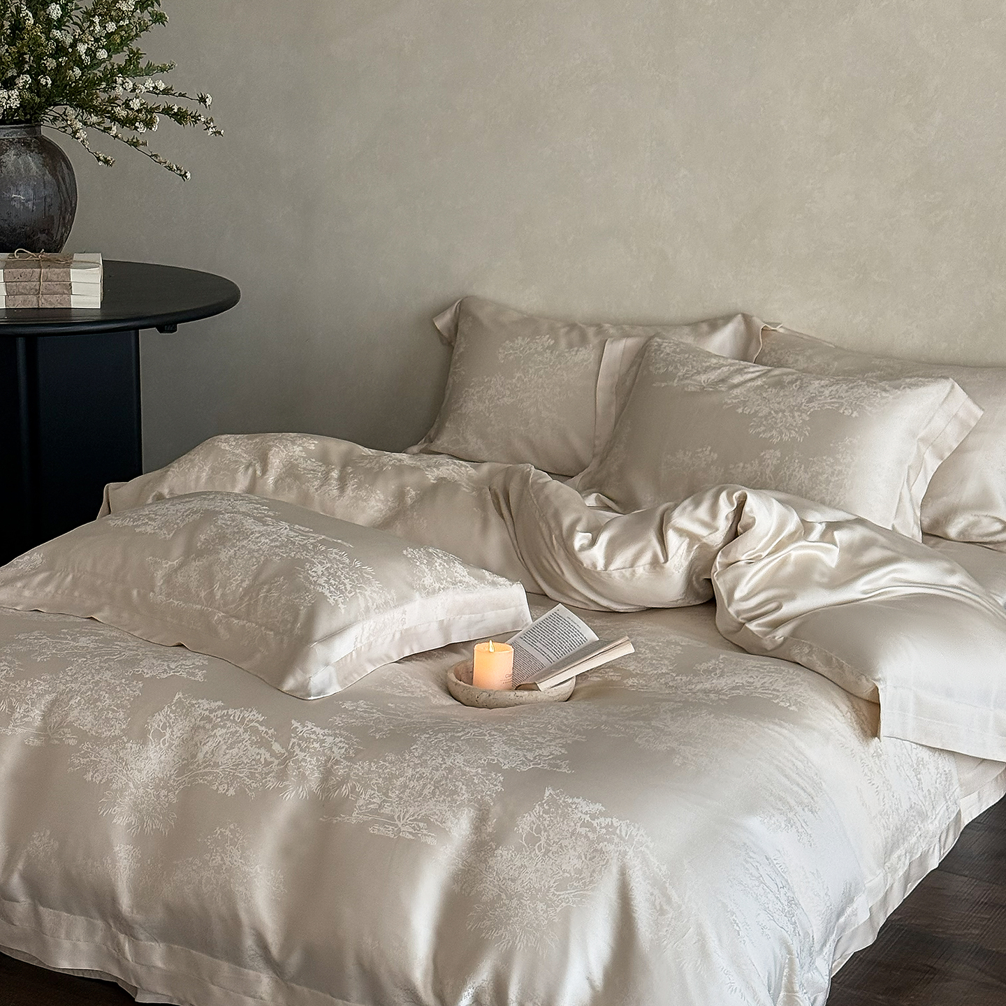 商品名称:花时间 2026新款60s兰精天丝四件套-赫本天丝款会员减10 参与日常超级立减9折后不低于368/388 天丝款-赫本香槟
