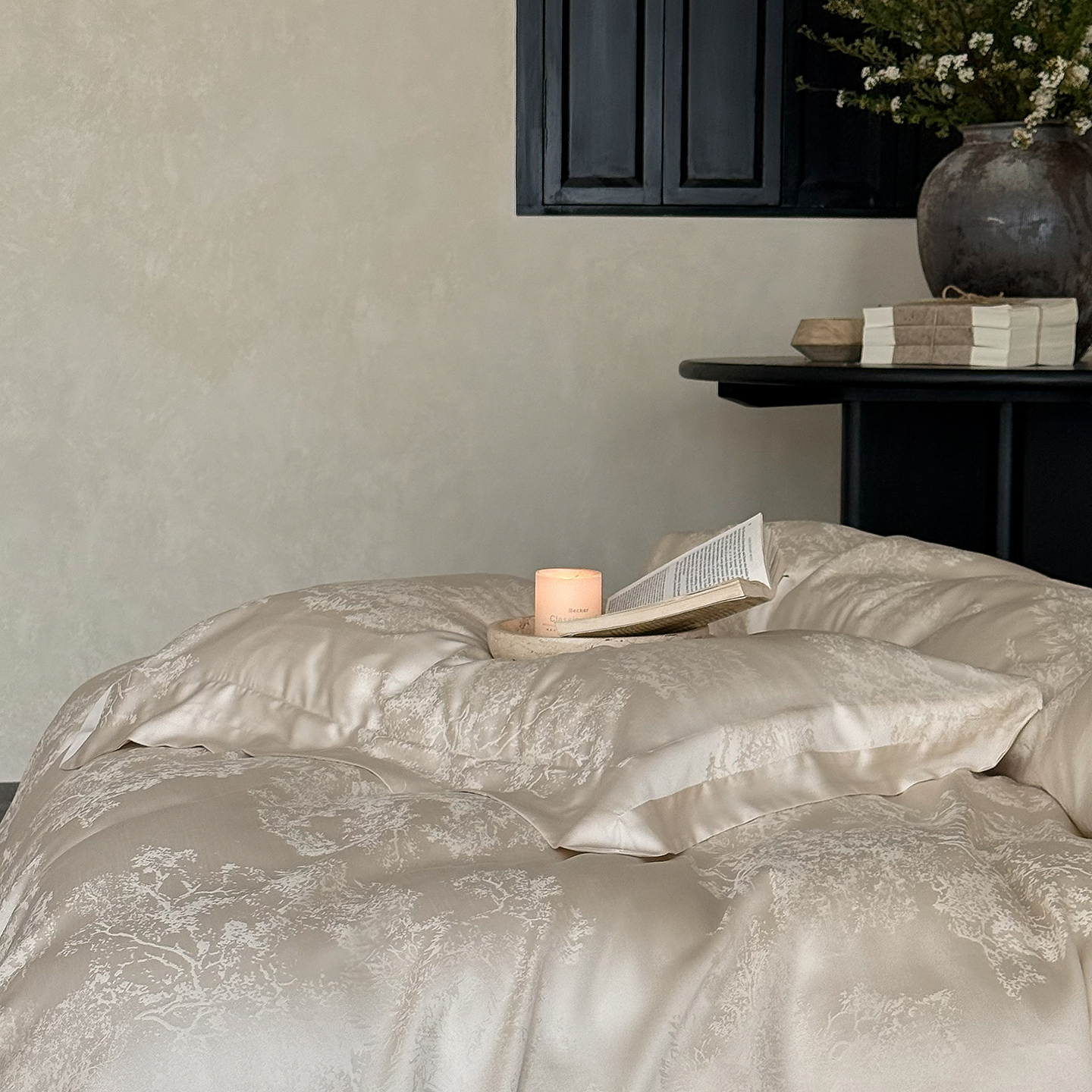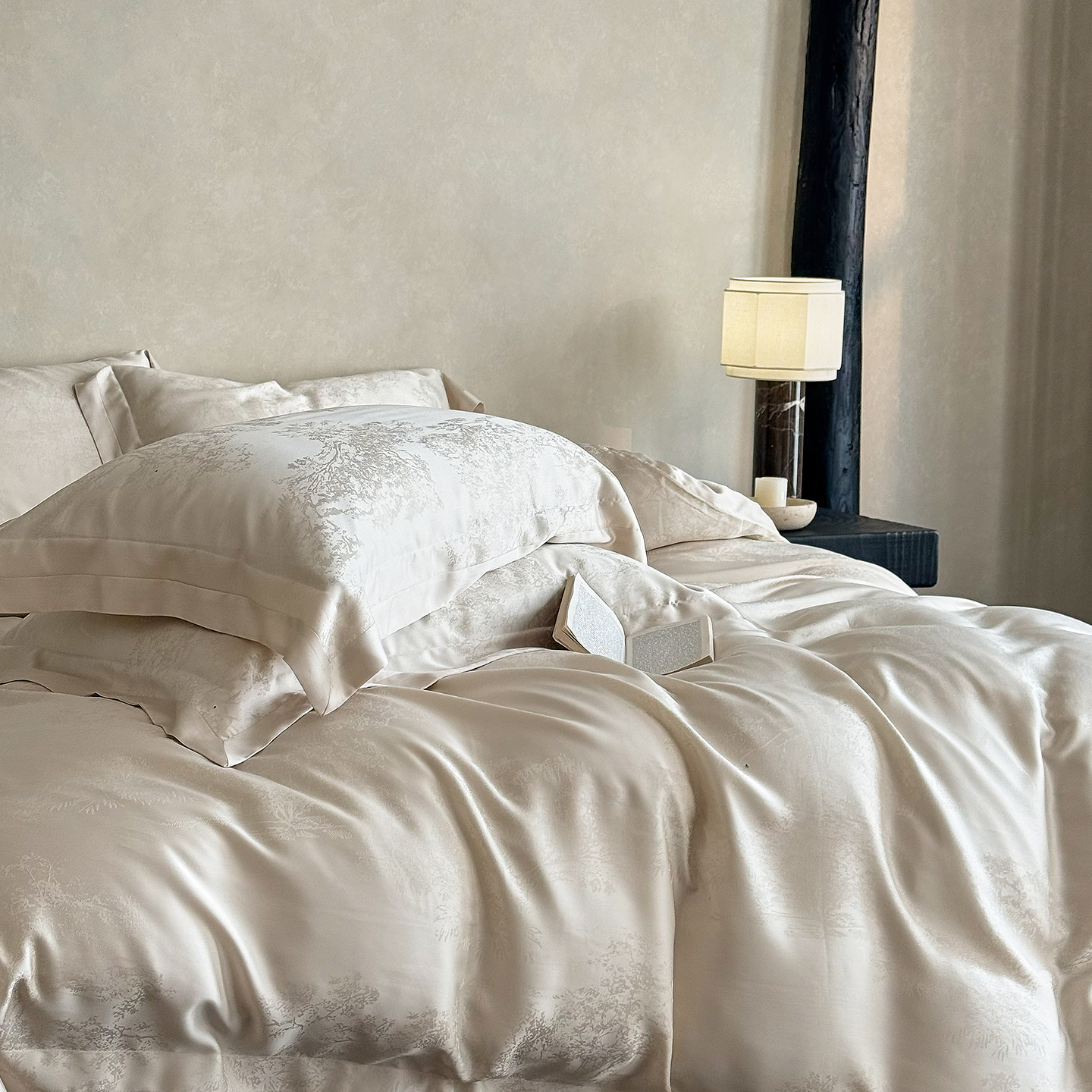 (总)花时间 2024新款轻奢设计师款原创系列类长绒棉宽边提花四件套-静谧花蜜,花蜜,静谧