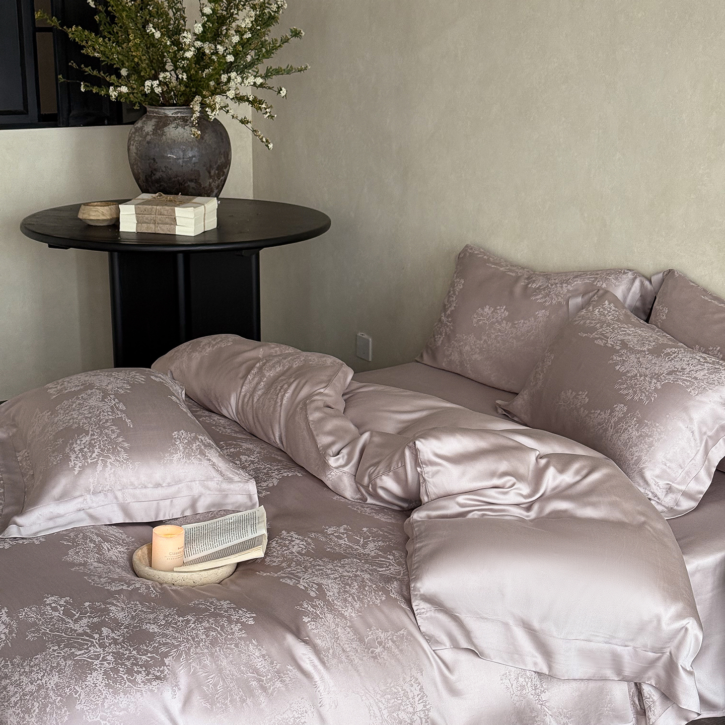 (总)2024秋冬新品100S全棉简约提花四件套,粉黛夕岚,罗蜜,曼妙,墨染疏影,慕白笙花,素影沙华
