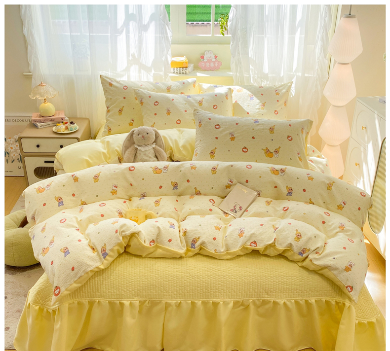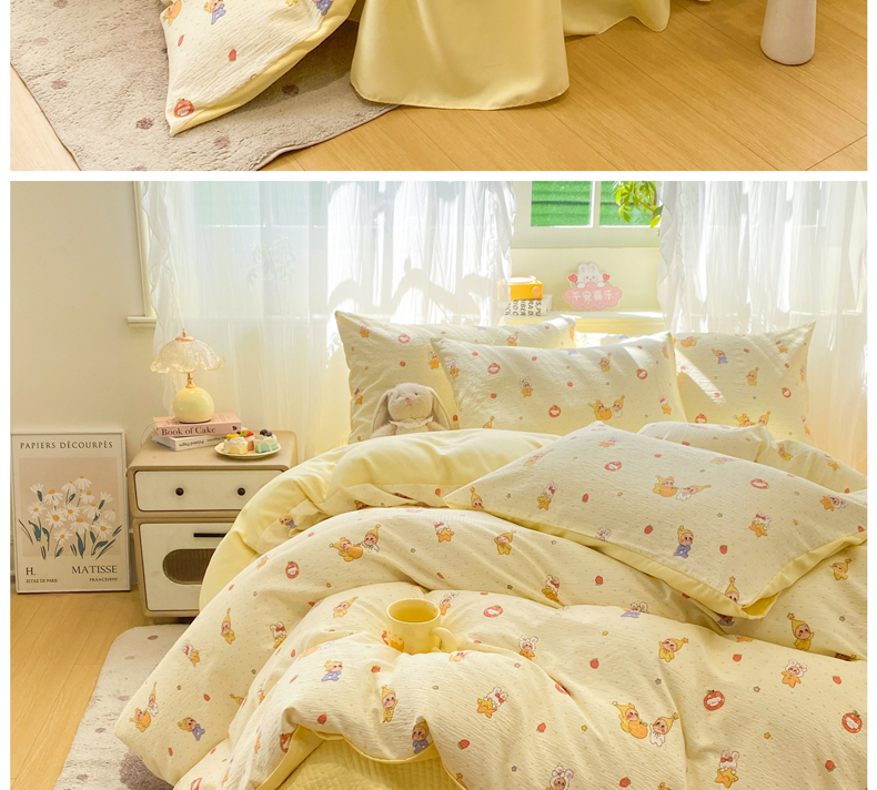 (总)优贝家纺 2026春夏新款韩系小清新水洗棉古法棉夹棉床盖四件套-风格二,杏芙萌犬,奶咖萌兔,时尚萌犬,桃粉花漾,甜心小熊,雾灰粉芙,星星萌宠,芋泥奶兔,芋雾花眠