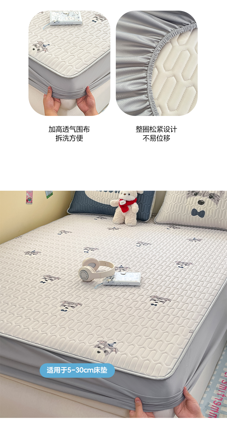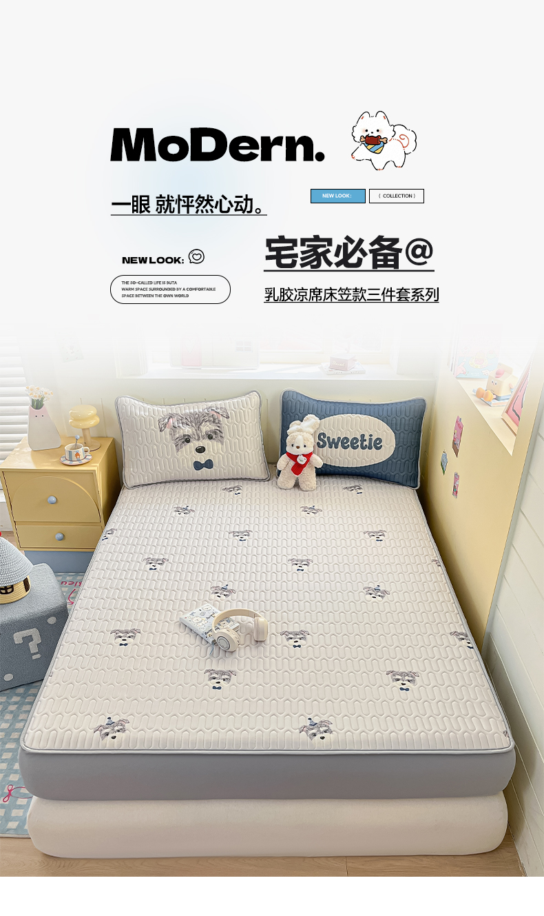 摩妮卡 2026春夏新款凉感丝印花小清新乳胶凉席席子床笠款三件套 绅士狗狗
