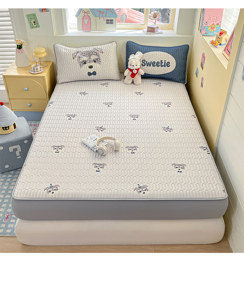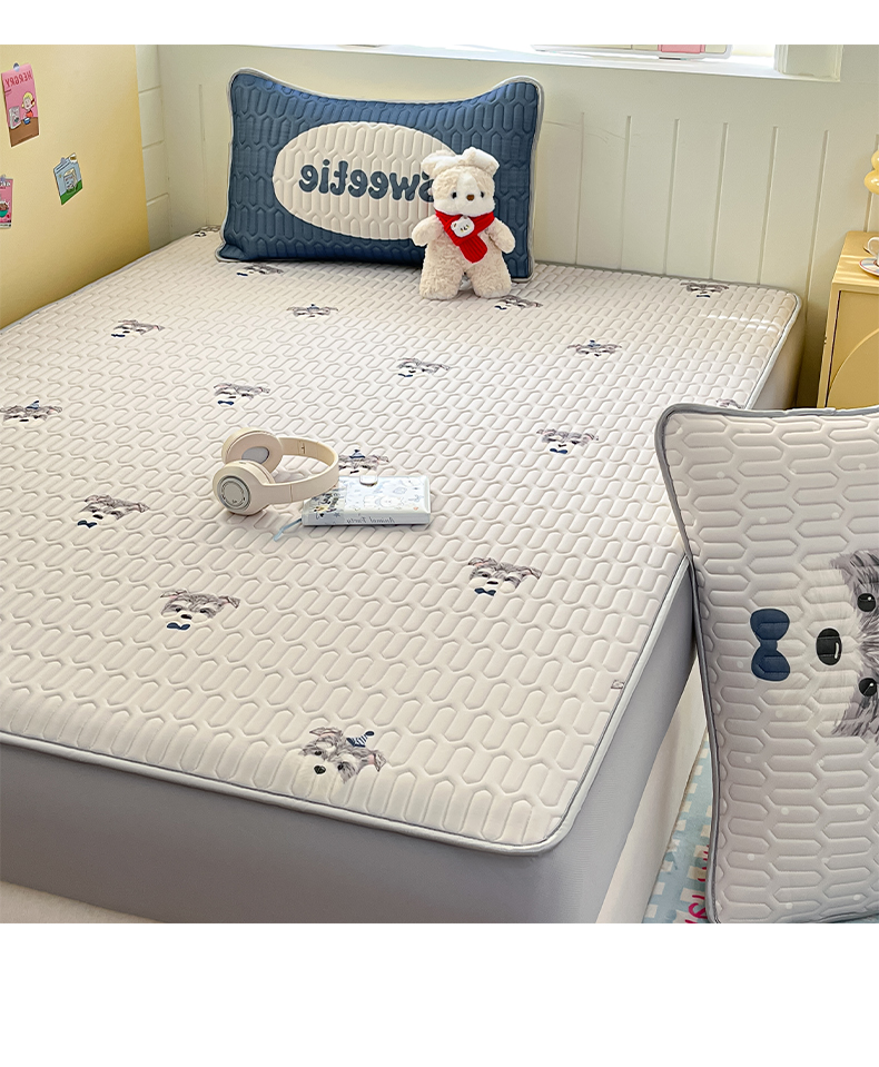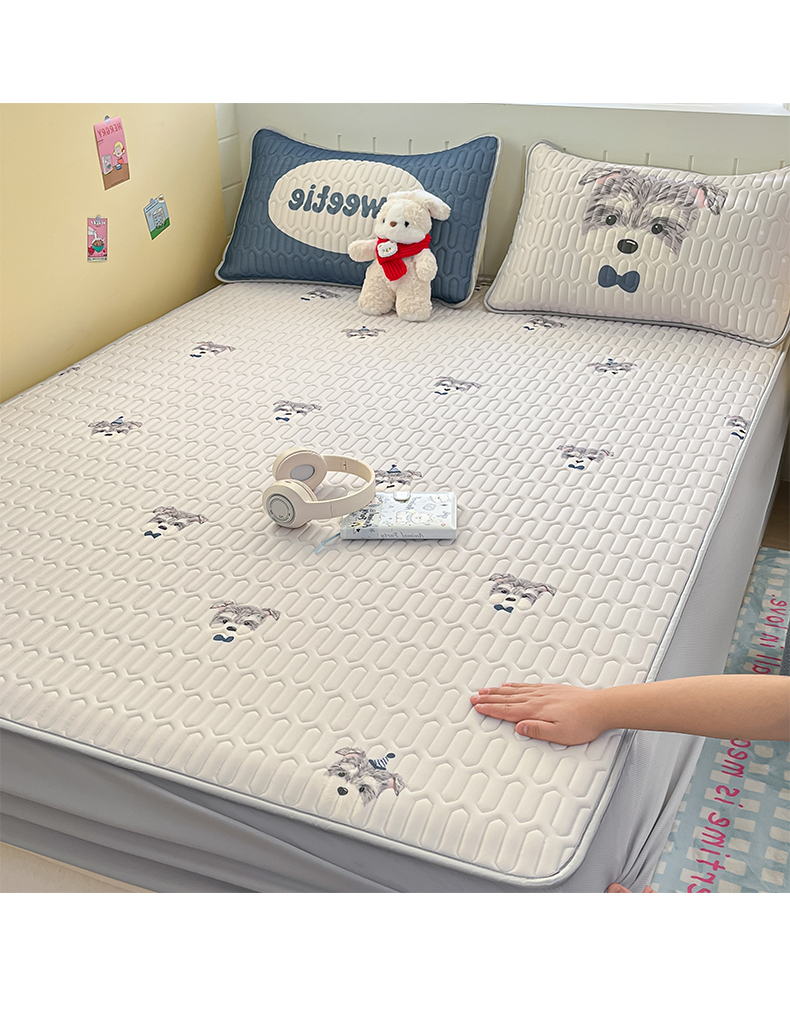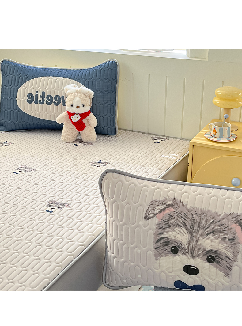 商品名称:摩妮卡 2026春夏新款凉感丝印花小清新乳胶凉席席子床笠款三件套 绅士狗狗