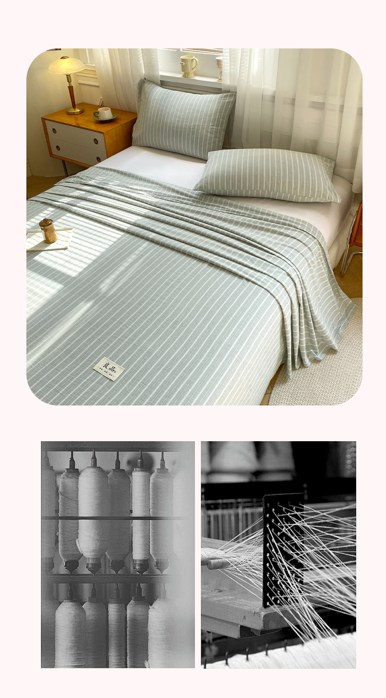 • 91家纺网 家纺一手货源 找家纺 恋人优选 2026新款全棉纯棉色织床单单床单床单单件 简希绿条