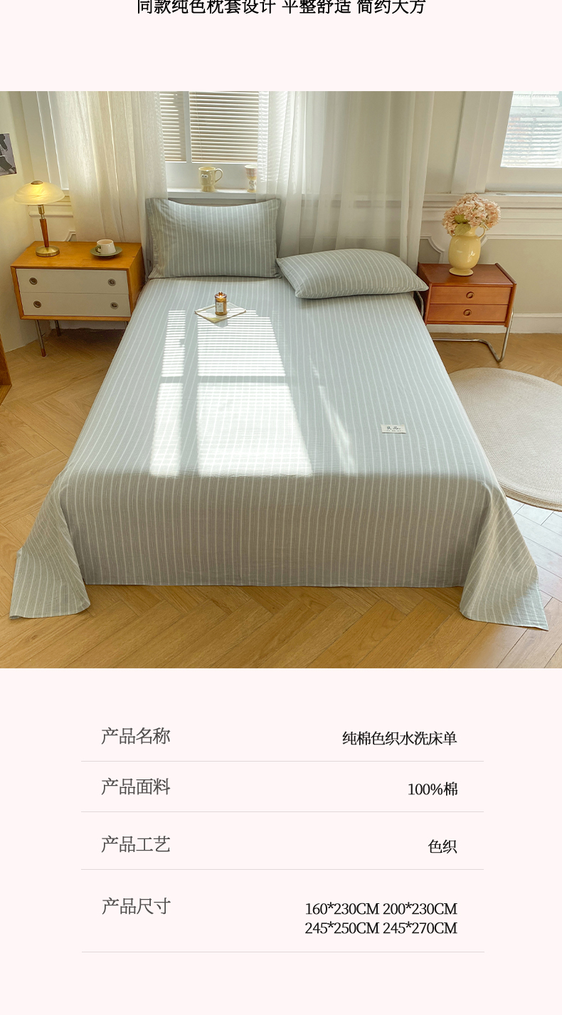 (总)恋人优选 2026新款全棉纯棉色织床单单床单床单单件,格韵灰,简希蓝条,简希绿条,简希米条,简希紫条,娇韵粉,素格-咖,素格-绿