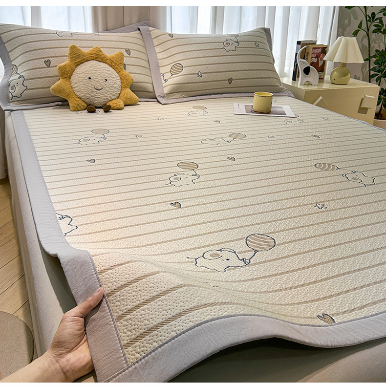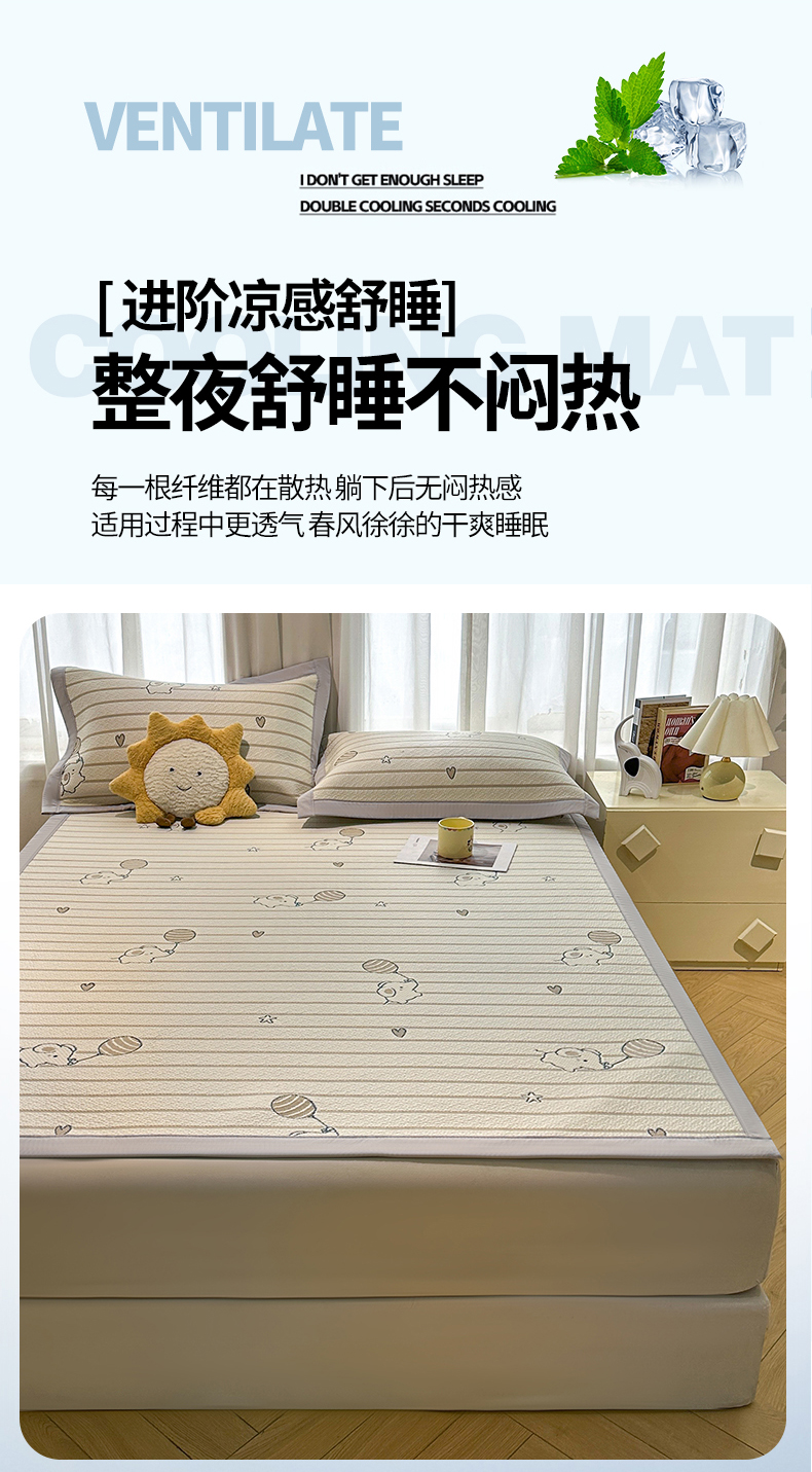 商品名称:织雅漫 2026新款卡通实拍小红书爆款凉豆豆凉席100%PE 乙纶凉感可水洗床席席子 条纹小象