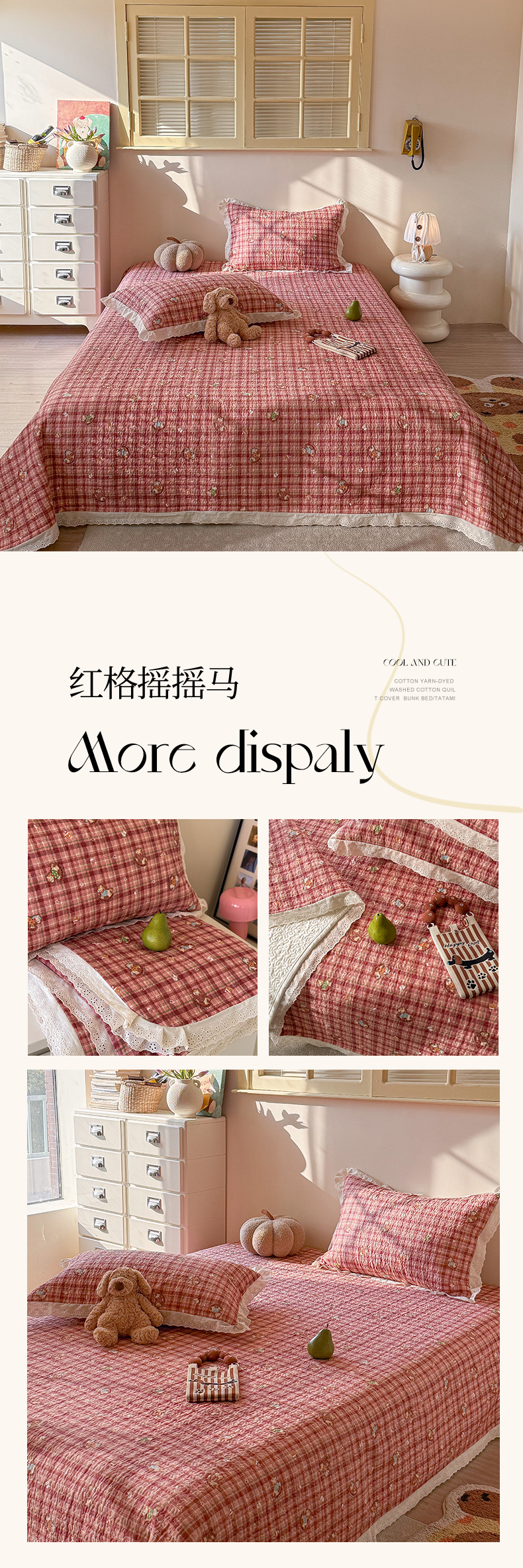 • 91家纺网 家纺一手货源 找家纺 (总)乐野家居 2026新款支持定制法式花边纯棉榻榻米三件套全棉有氧双层纱床盖三件套四季通用,白桃乌龙,波点童话,伯爵茶歇,红格摇摇马,焦糖樱桃,可爱星人,快乐动物城,塞纳暮烟,紫萝织梦